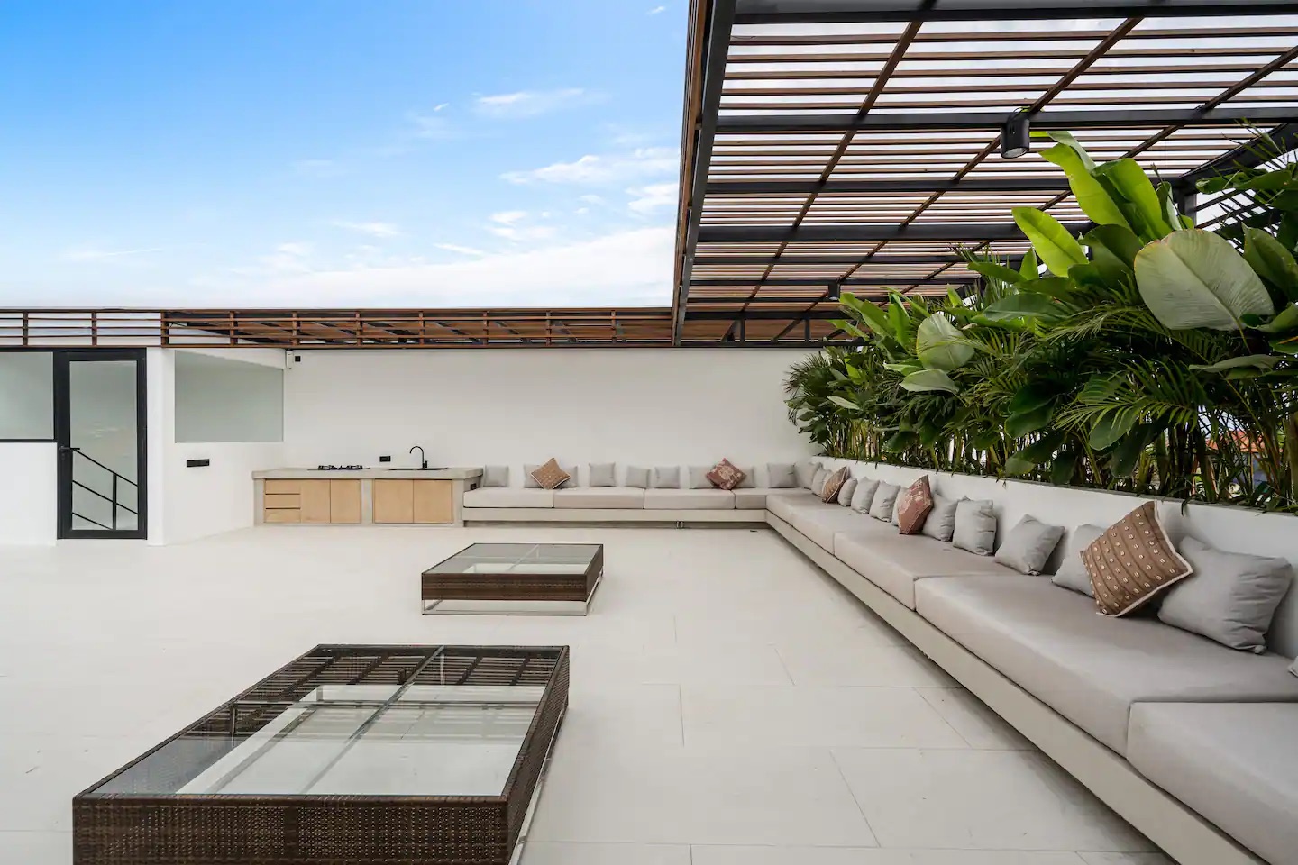 The rooftop is a true highlight, featuring a second kitchen, a jacuzzi, and a spacious lounge area, perfect for entertaining or unwinding while enjoying the surrounding views. Whether you’re hosting a sunset dinner or enjoying a quiet evening, the rooftop space elevates the villa to a new level of comfort and sophistication.