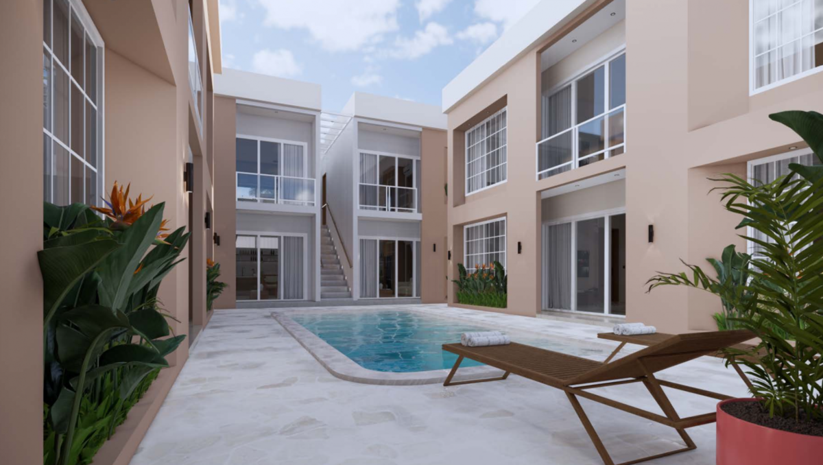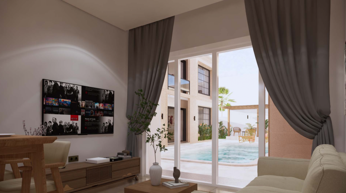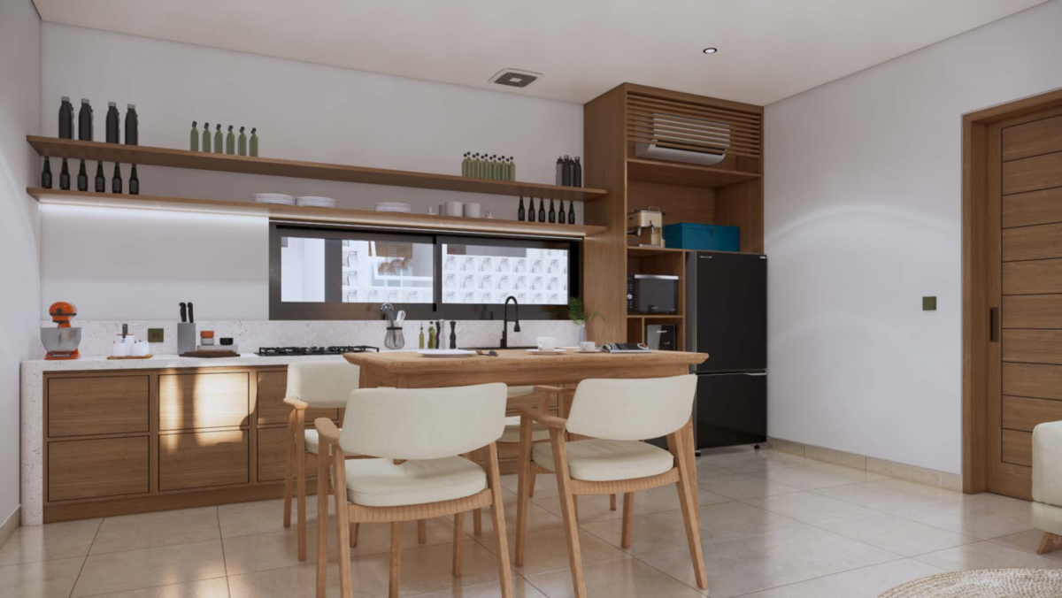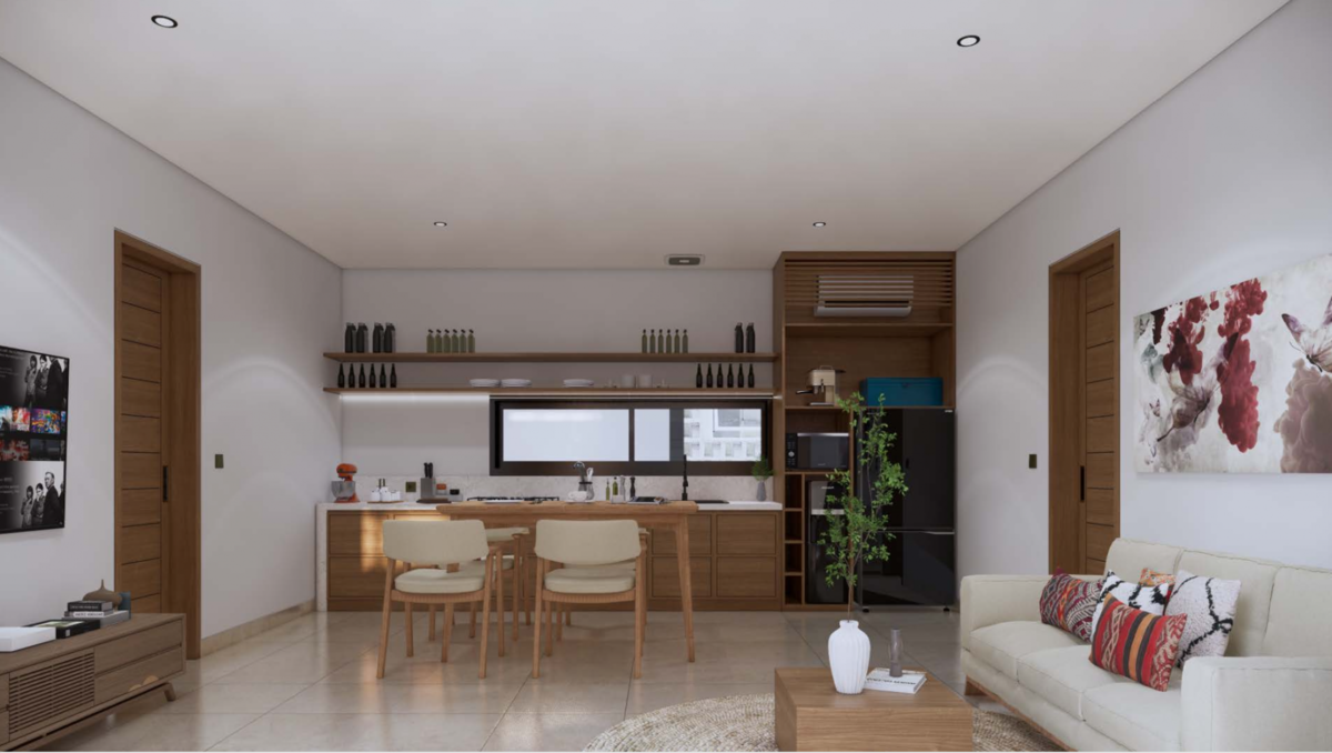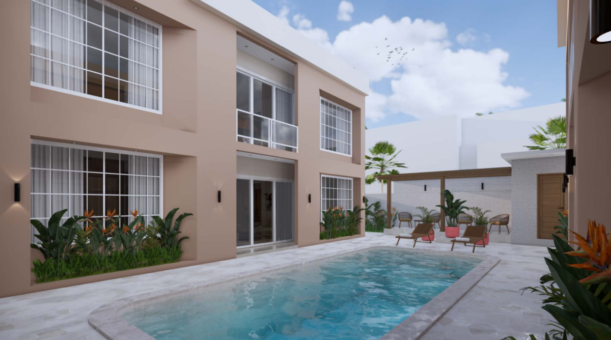Le complexe se compose de quatre unités d’une chambre (45 m² chacune) et de quatre unités de 2 chambres (75 m² chacune), situées sur un terrain de 511 m². Conçu avec Confort moderne et élégance tropicale, chaque appartement dispose d’un salon fermé avec climatisation, d’une cuisine entièrement équipée et de chambres spacieuses avec placards intégrés.