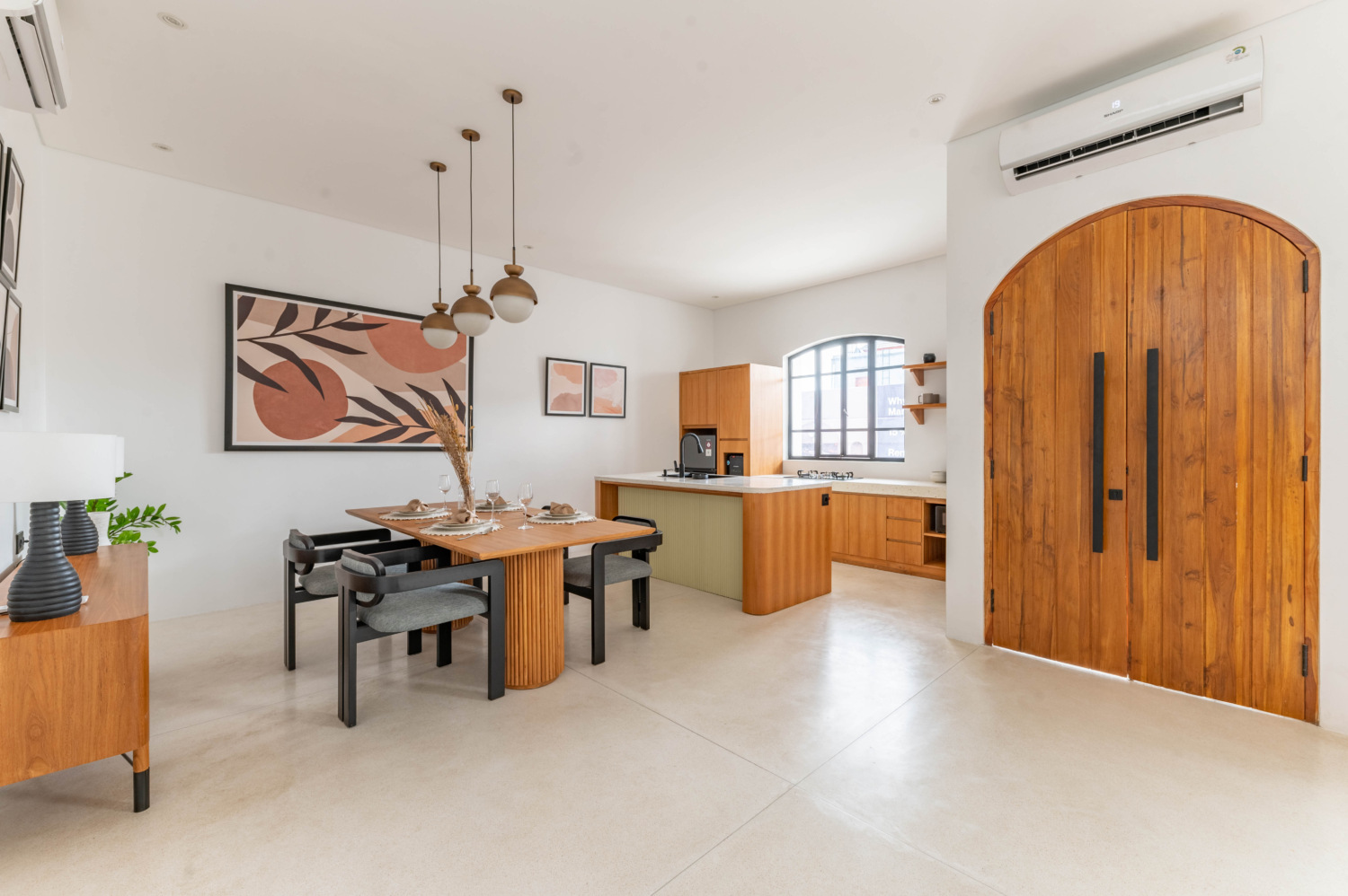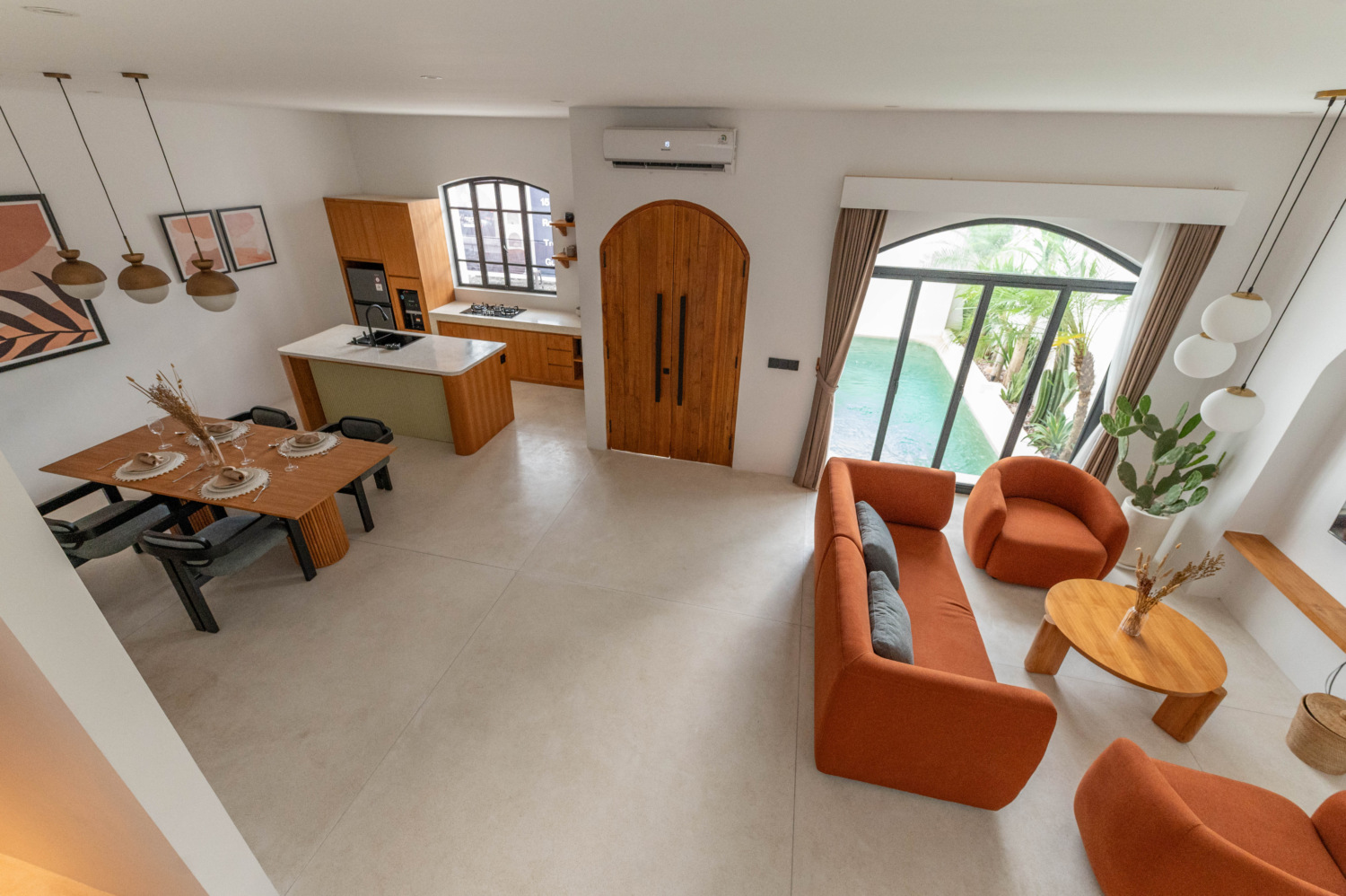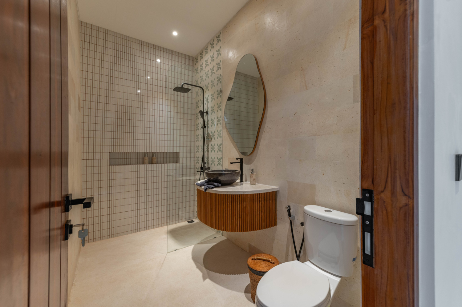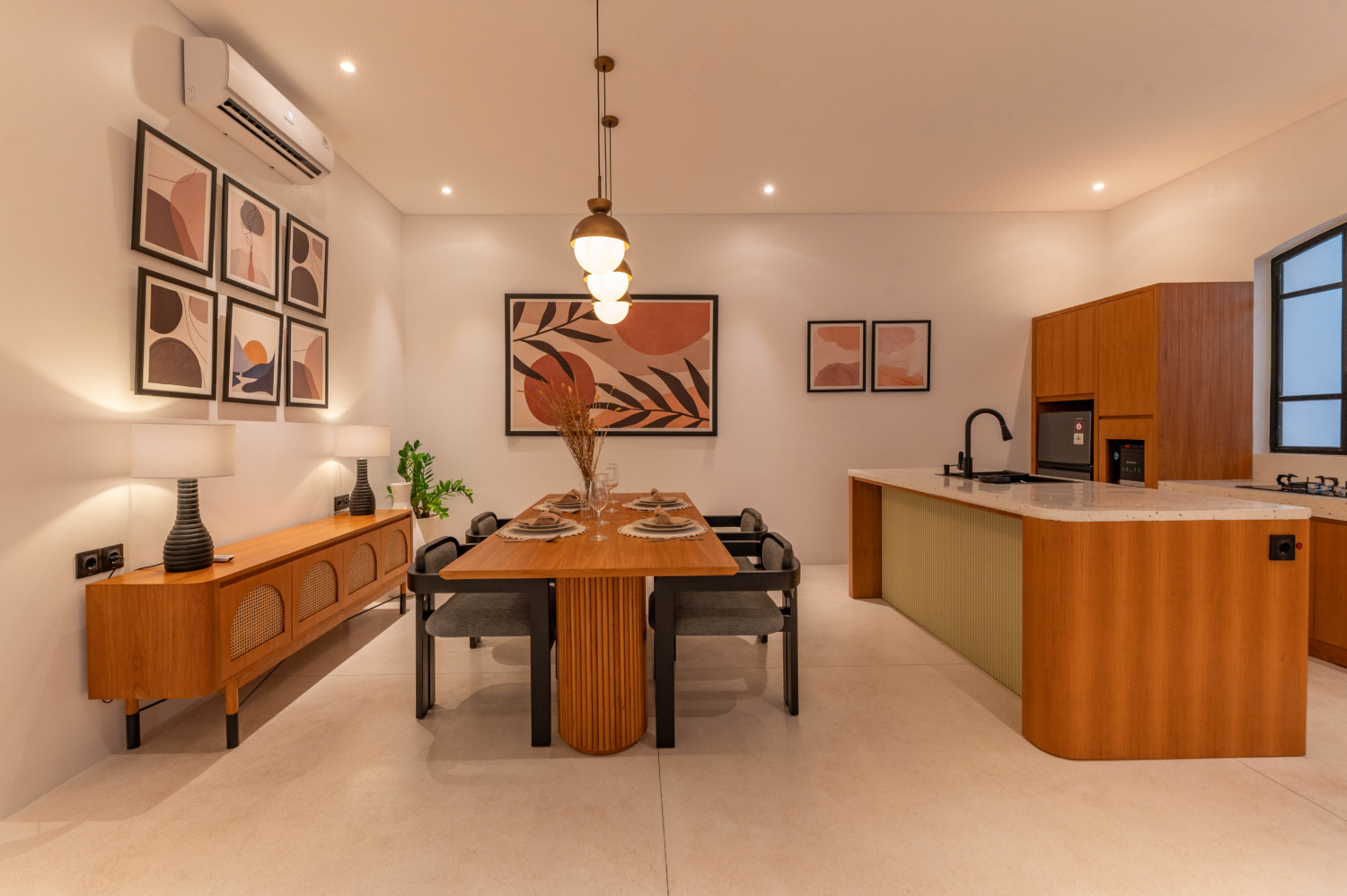 La villa dispose d’espaces lumineux et aérés avec de grandes fenêtres qui capturent la verdure environnante et laissent entrer une abondance de lumière naturelle. Situé dans un quartier calme, il offre toujours un accès facile au centre animé de Canggu, à seulement 10 minutes en voiture.