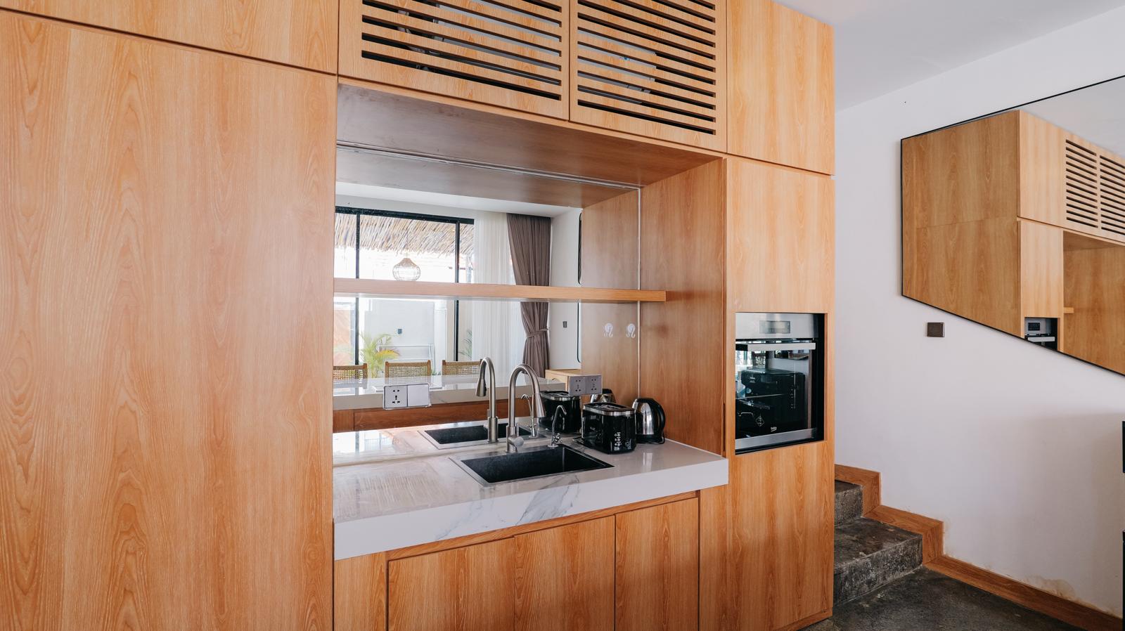 - Cuisine entièrement équipée avec réfrigérateur LG, micro-ondes et four BEKO