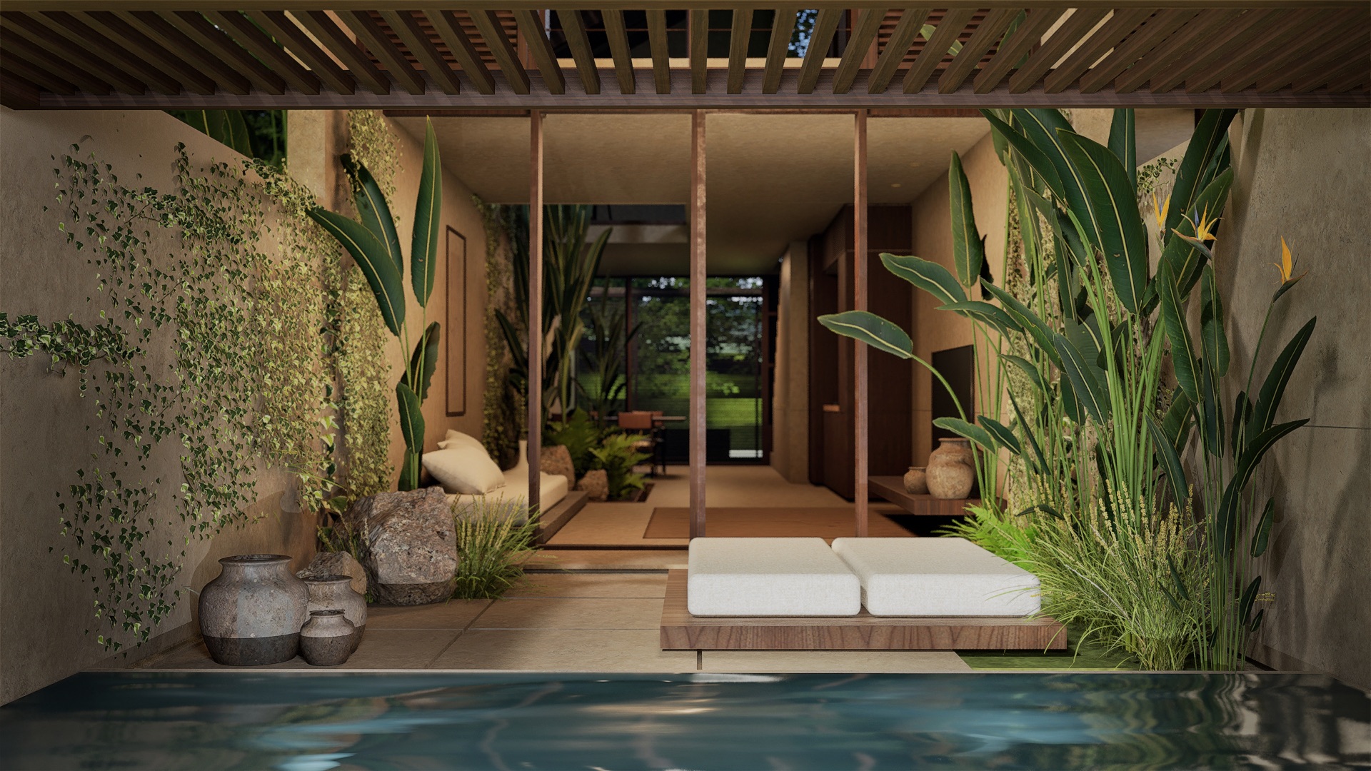 Chaque villa comprend 1 chambre, 1,5 salle de bains, une cuisine entièrement équipée, un salon spacieux et un espace bureau dédié, idéal pour un usage résidentiel et locatif. Le parking privé pour scooters est inclus. La construction a débuté en octobre 2023 et la livraison est prévue pour juillet 2024. Le bail à long terme, l’extension garantie et l’emplacement de choix à Pererenan en font un investissement solide dans l’un des marchés locatifs à la croissance la plus rapide de Bali.