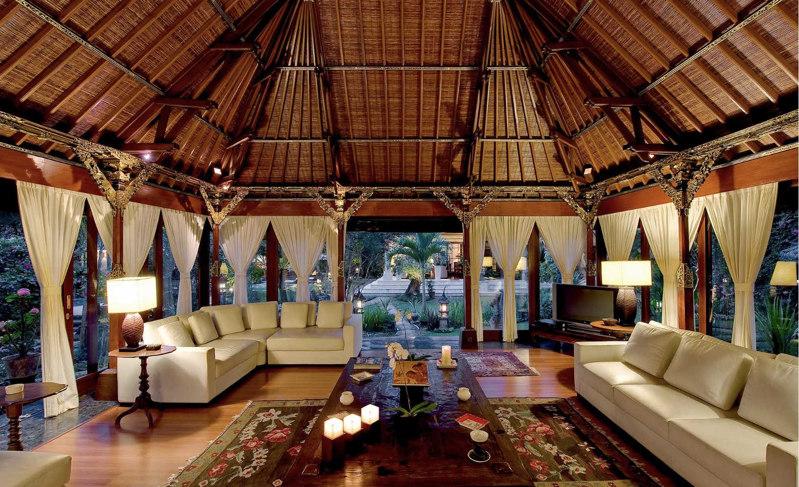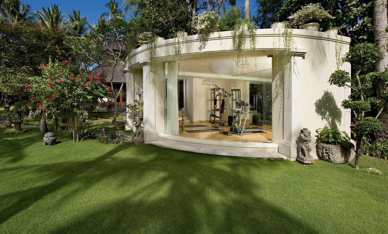 Termasuk paviliun Wantilan tradisional Bali, dapur gourmet lengkap, ruang makan dalam / luar ruangan, studio TV & musik besar, gym dengan shower, dan rumah biliar.