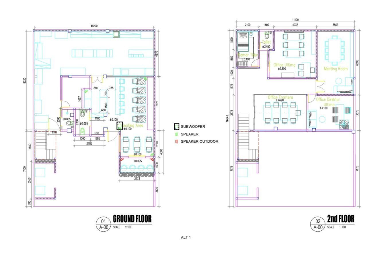 - Lantai dua memiliki 4 ruang kantor, termasuk ruang pertemuan