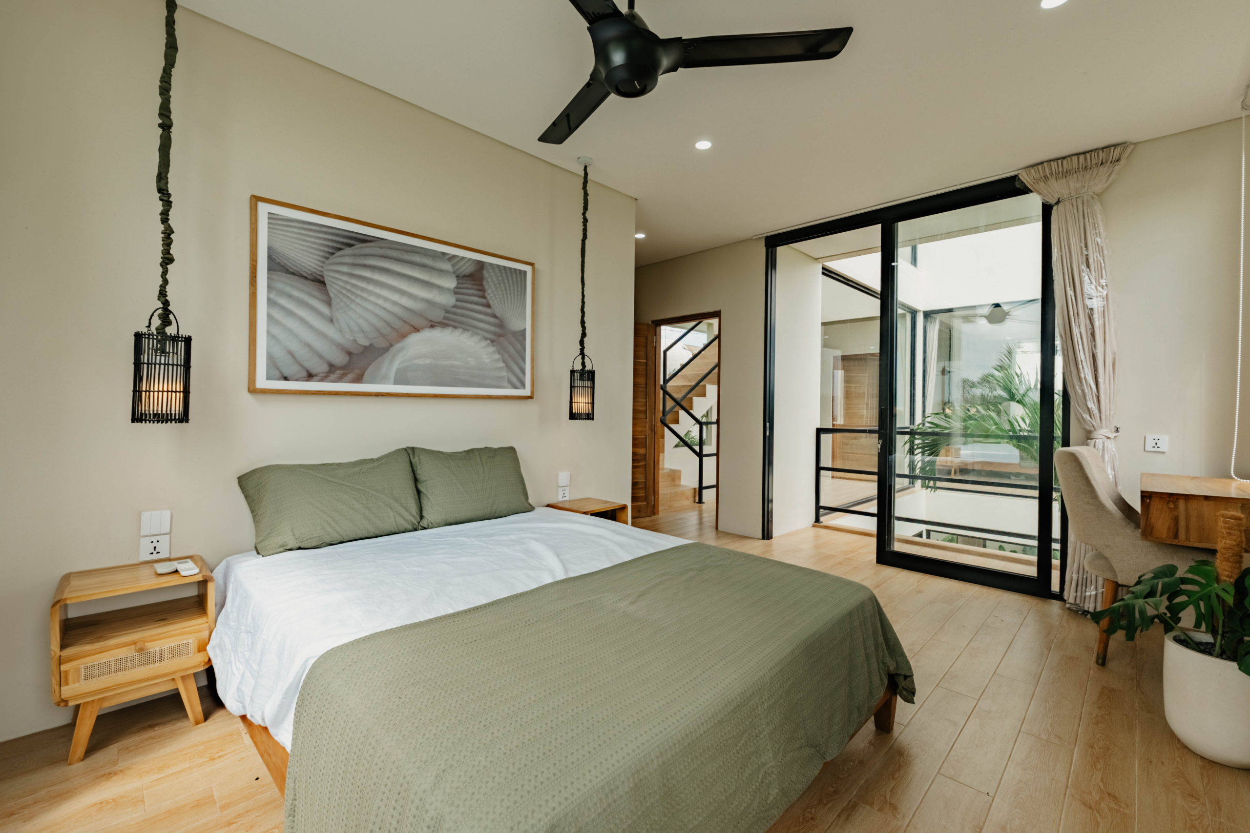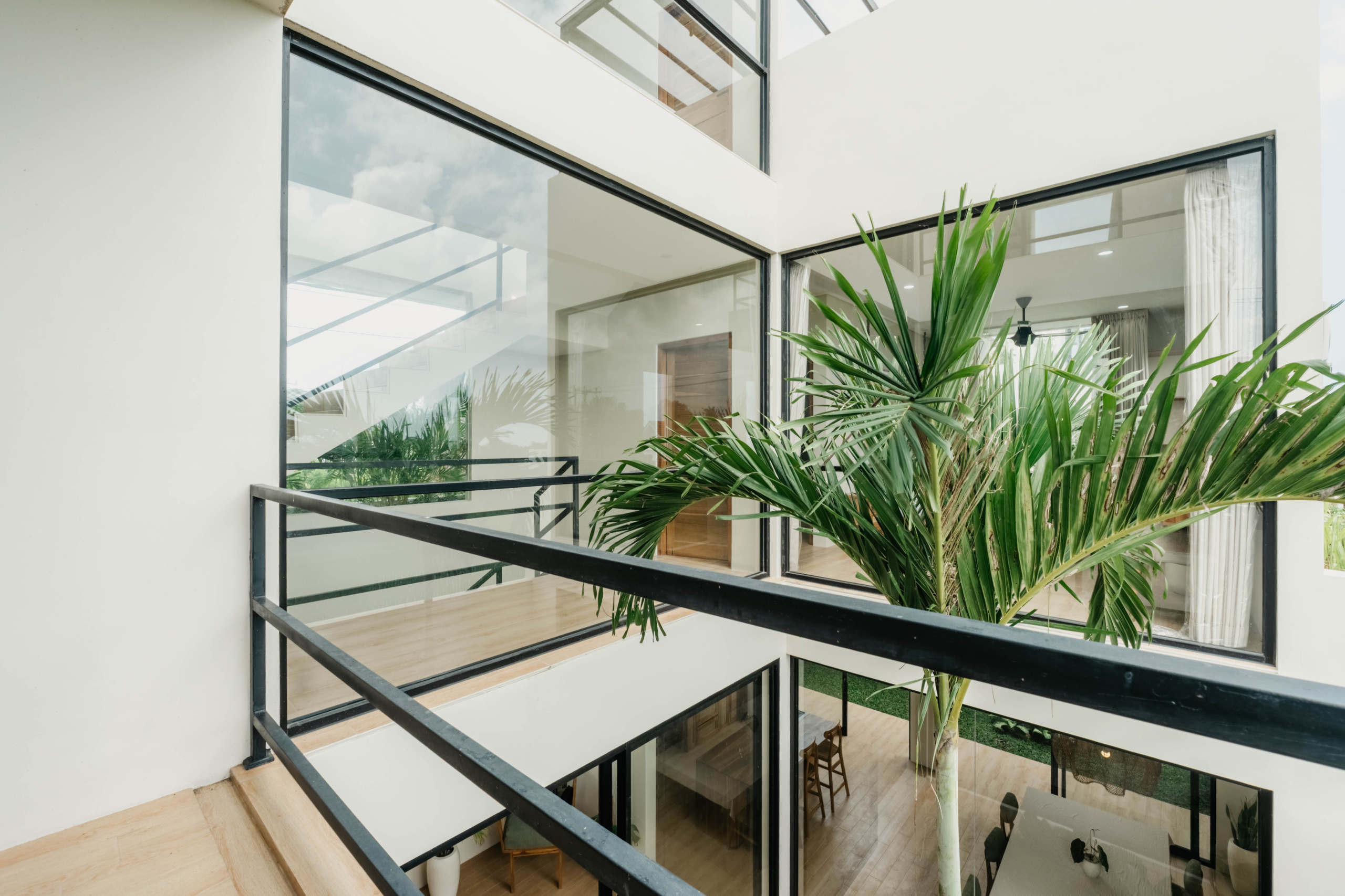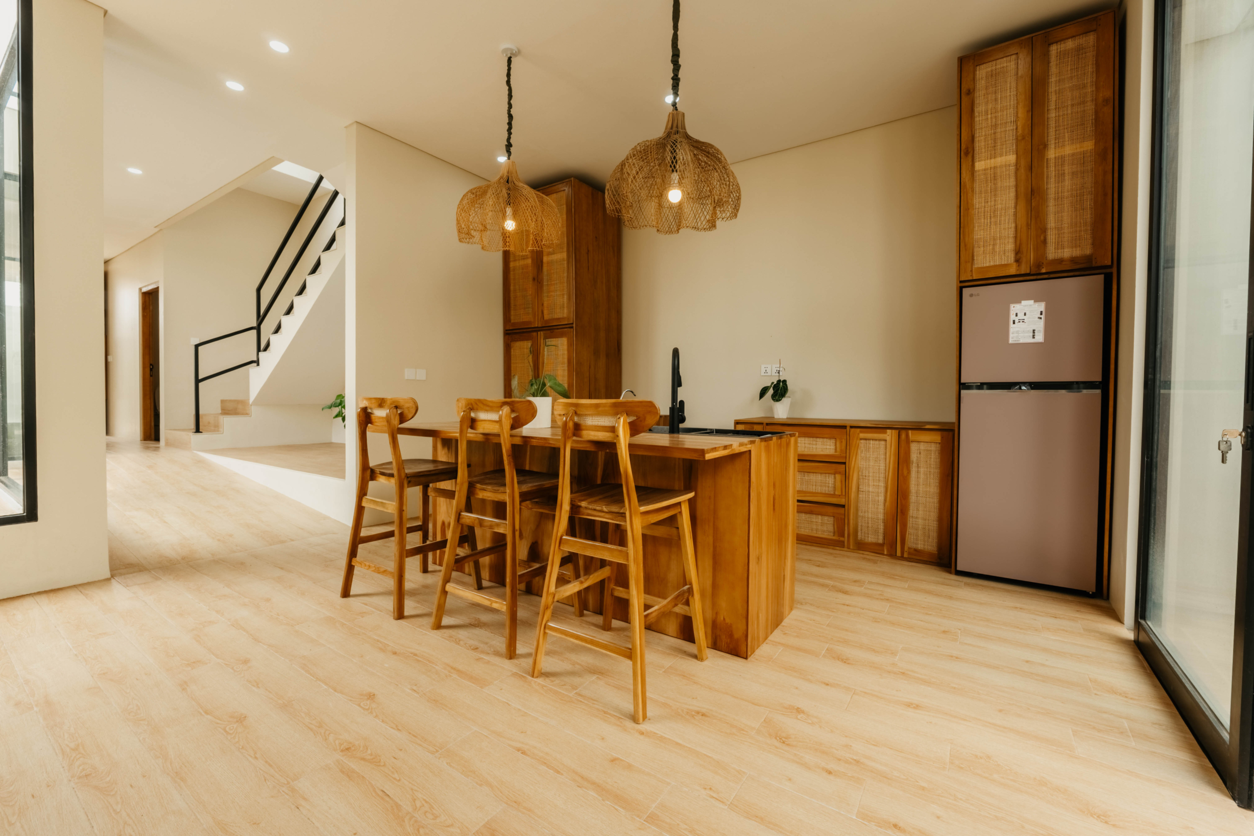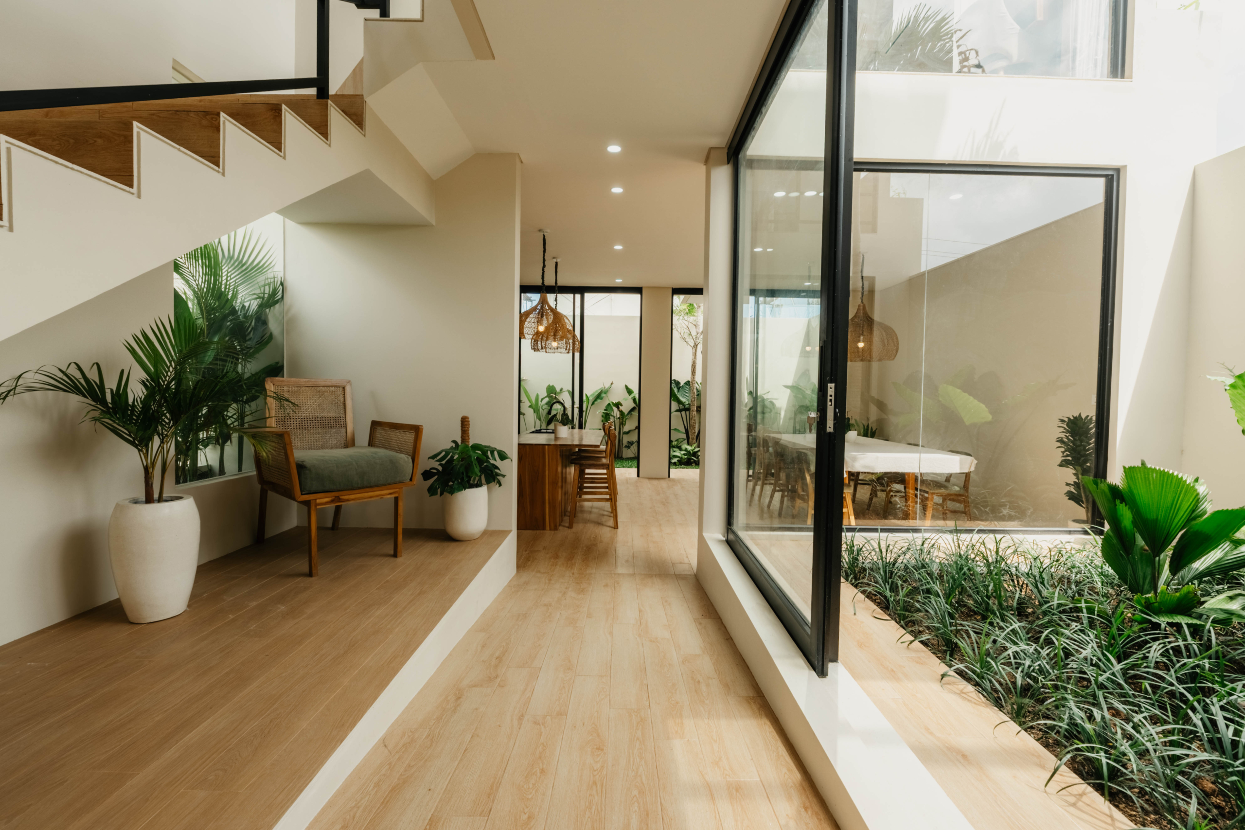 Tersebar di tiga lantai, vila ini memiliki tiga kamar tidur dalam, dapur terbuka dan ruang makan, ruang tamu cekung, dan teras atap tertutup dengan pemandangan laut dan gunung yang menakjubkan. Setiap level telah dirancang untuk memaksimalkan cahaya alami dan aliran udara, menciptakan suasana hidup yang kontemporer namun tropis.