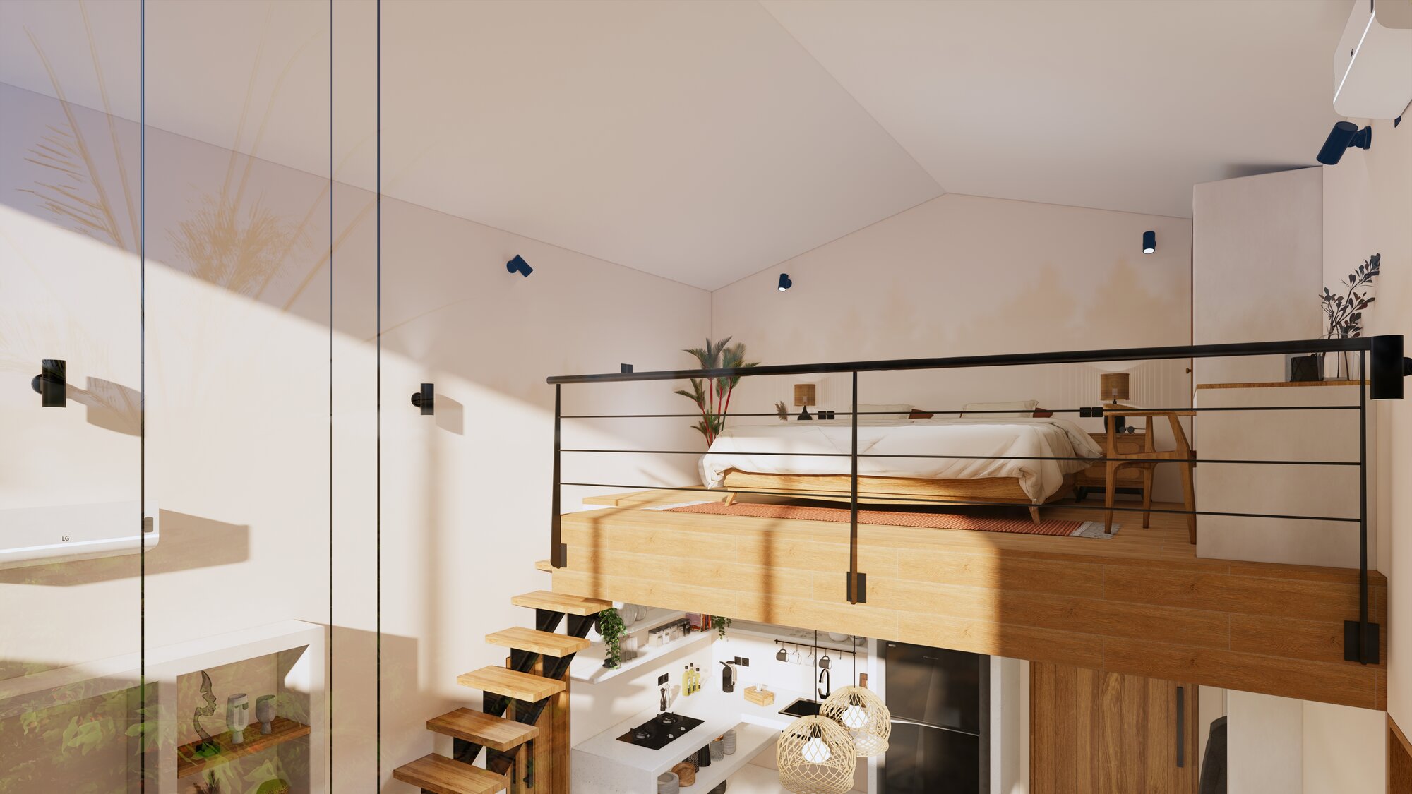 seluas 93 meter persegi- 1 Kamar tidur utama + mezzanine (2 tempat tidur)
