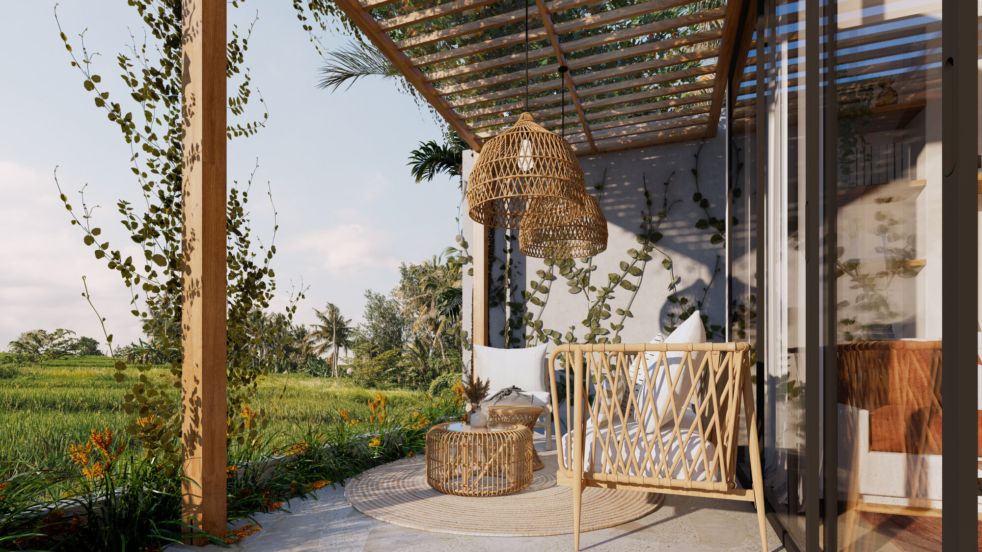 Pantai Seseh 400m dari pantai, Di sawah, dengan pemandangan