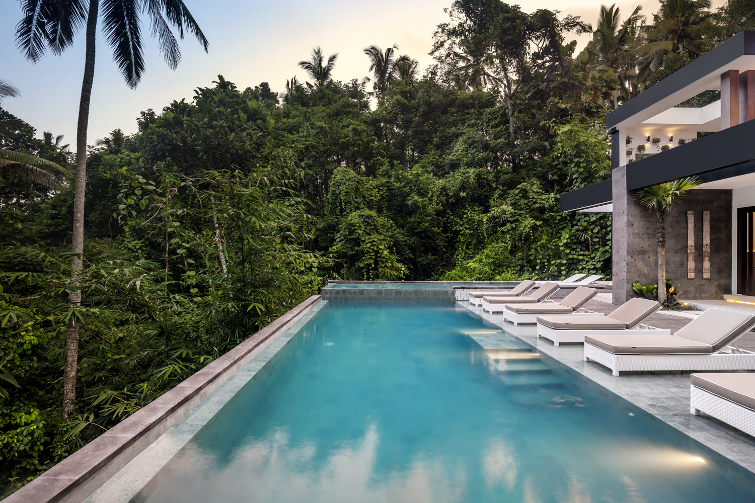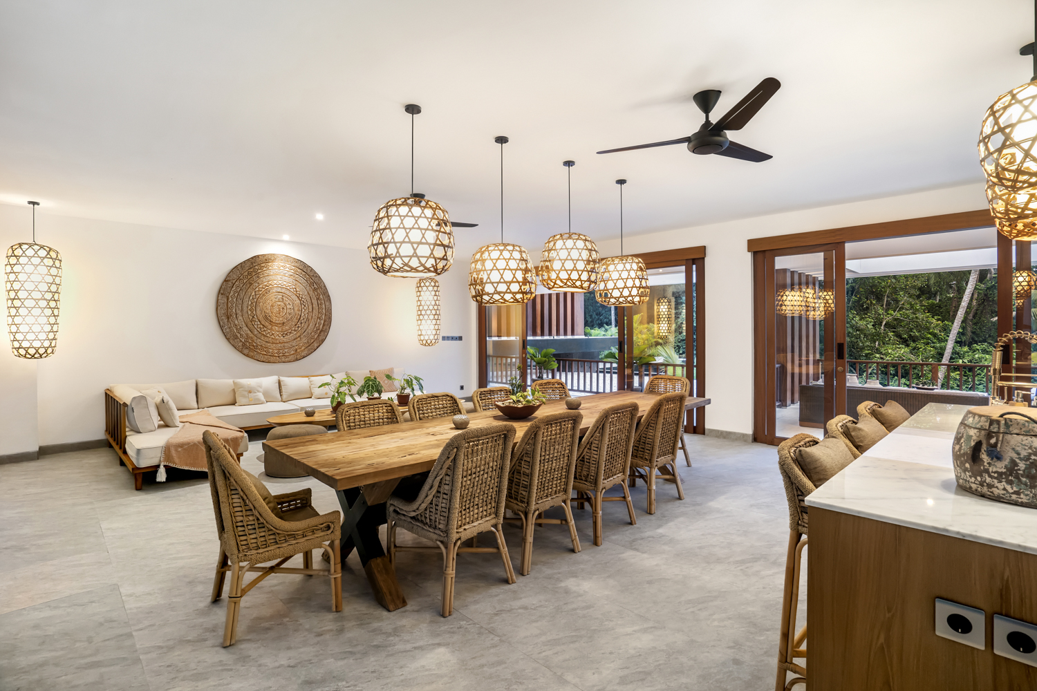Vila ini dirancang berdasarkan gaya hidup tropis, menawarkan ruang binaan seluas 213,5 m² dengan tata letak terbuka dan bahan alami. Kelima kamar tidur memiliki kamar mandi dalam, memungkinkan privasi dan kenyamanan baik untuk tamu atau penggunaan pribadi.