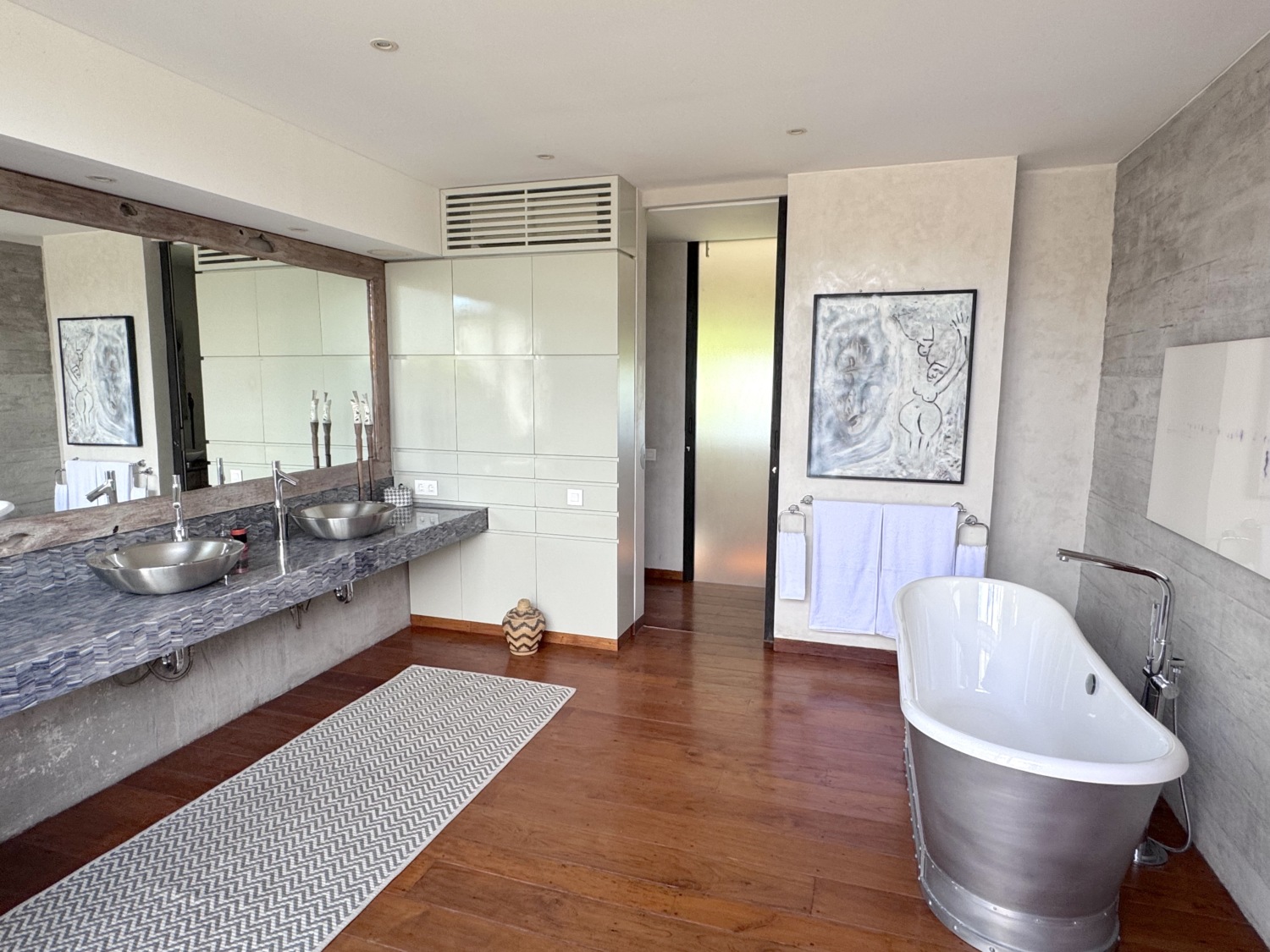 Terletak di atas sebidang tanah seluas 2800 meter persegi, properti langka ini mencakup dua vila unik, masing-masing dengan akses terpisah, namun dihubungkan oleh area parkir bersama yang luas. Perkebunan ini terletak di area pusat utama, terselip dengan damai di antara Seminyak, Berawa, dan Canggu, di jalan yang tenang.