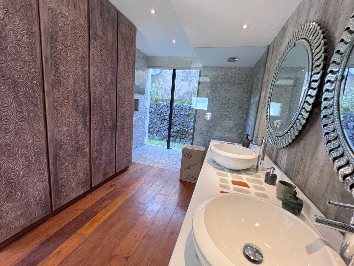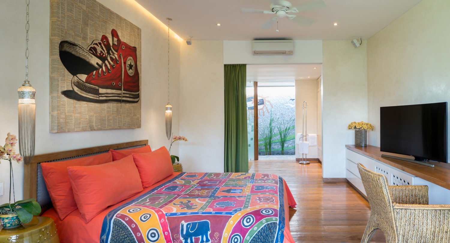 Desainnya adalah perpaduan hebat antara struktur dan seni tradisional, dengan komon kontemporer. Masing-masing dari enam kamar tidur unik, dan tersebar di ruang tamu seluas 1478 meter persegi, dilengkapi dengan taman yang luas dan dua kolam renang dengan batu alam.
