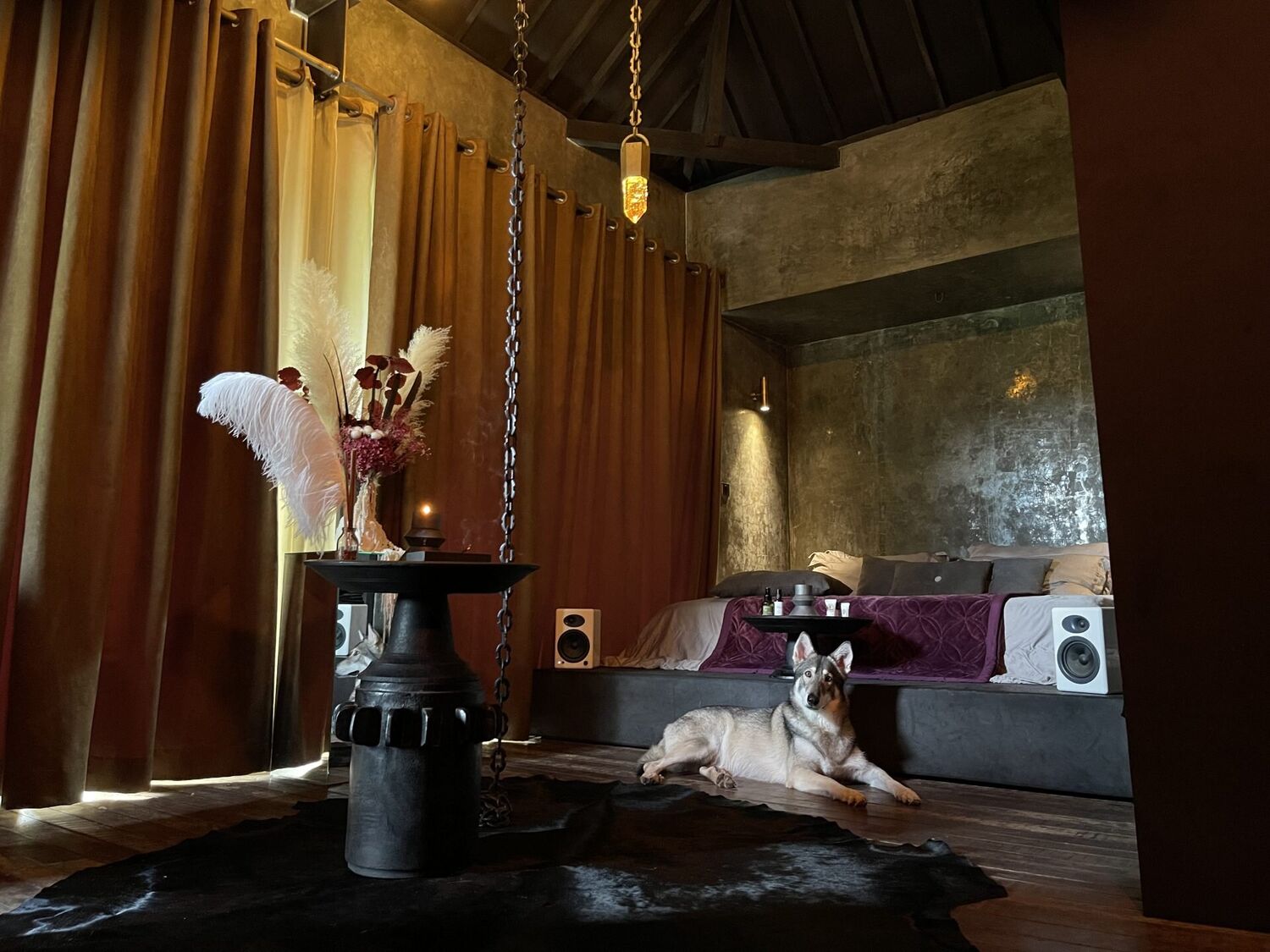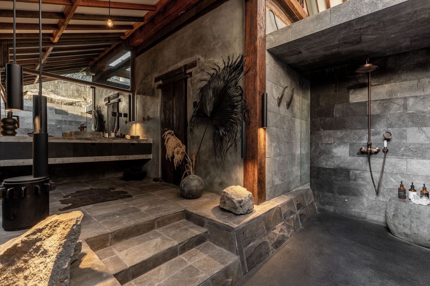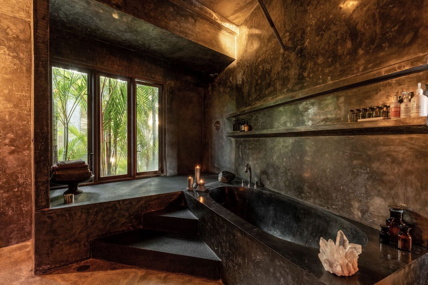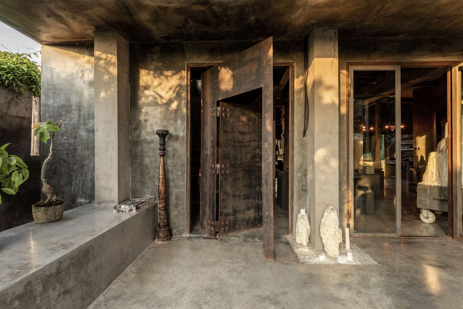 Beton bertemu kuningan, kayu keras tropis berpadu dengan kristal dari Brasil. Setiap elemen—furnitur, objek, pencahayaan—telah dirancang khusus. Tidak ada yang dibiarkan begitu saja. Suasana di siang hari adalah monastik dan membumi; Pada malam hari, cahaya lilin mengubah ruang menjadi sesuatu yang intim, hampir sakral.