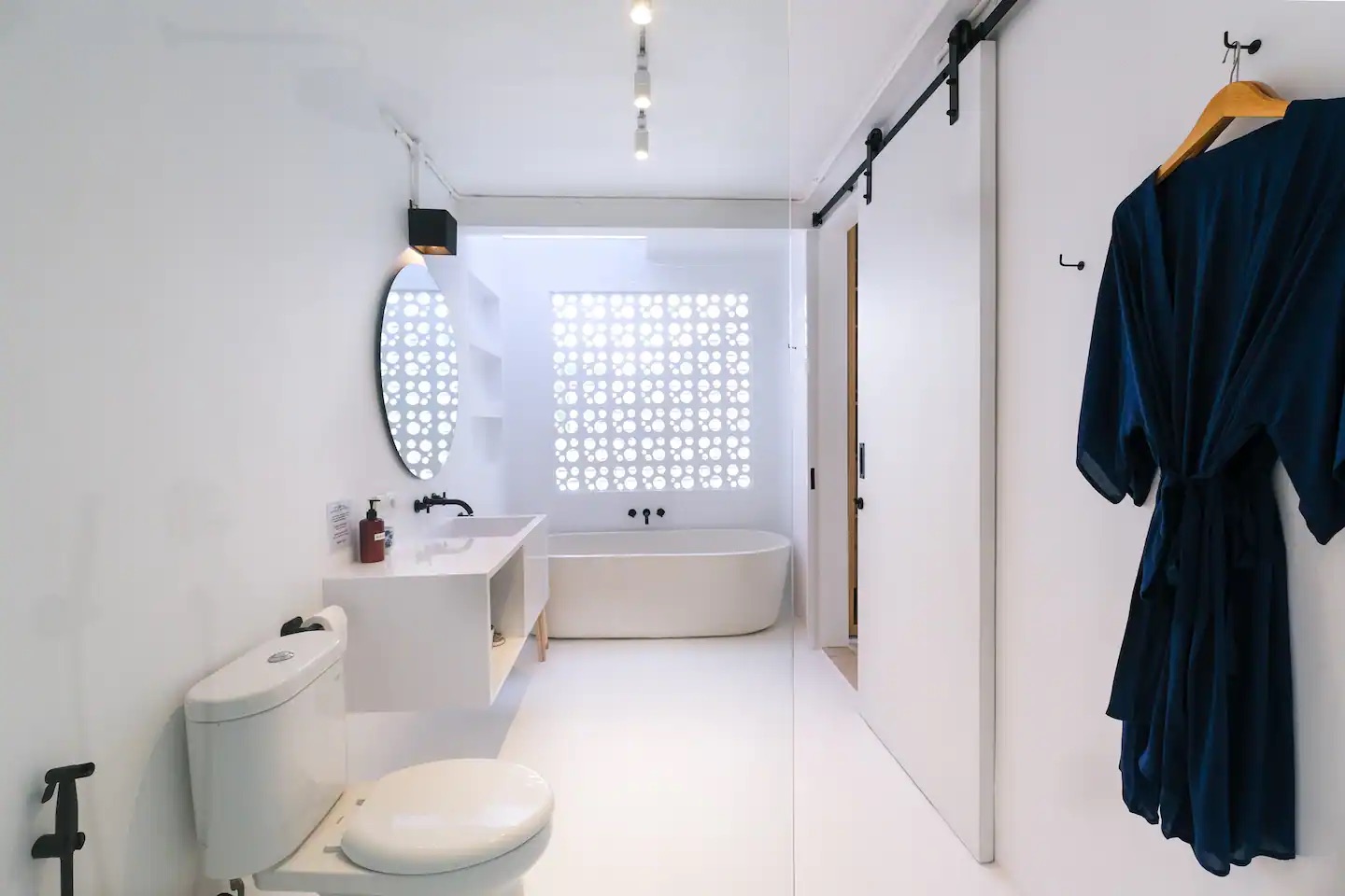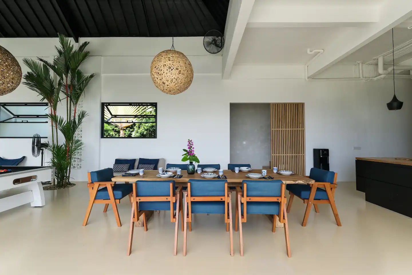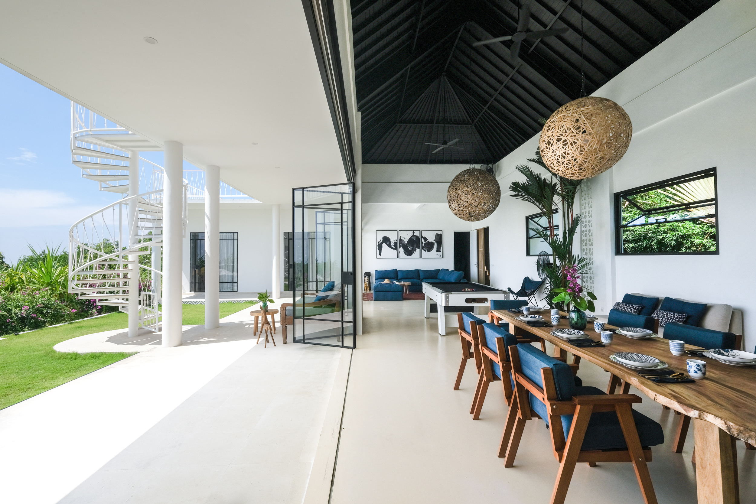 Interiornya memancarkan kemewahan modern, dengan sentuhan akhir kelas atas dan dekorasi elegan yang memadukan gaya kontemporer dengan sentuhan pesona Bali. Setiap detail, mulai dari furnitur bergaya hingga karya seni yang dipilih dengan cermat, telah dipilih untuk menciptakan suasana yang apik dan mengundang.