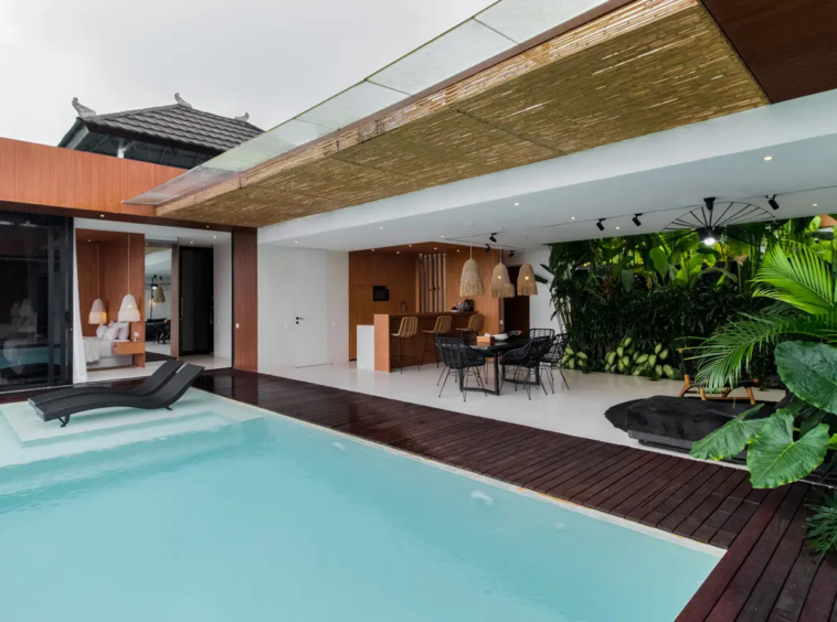 Dirancang untuk kenyamanan tertinggi, vila ini memiliki ruang tamu tertutup yang luas yang terbuka ke teras luar ruangan yang indah, sempurna untuk menikmati pemandangan Bali yang rimbun. Kolam renang pribadi menambah daya tarik vila, menawarkan ruang yang damai untuk relaksasi.