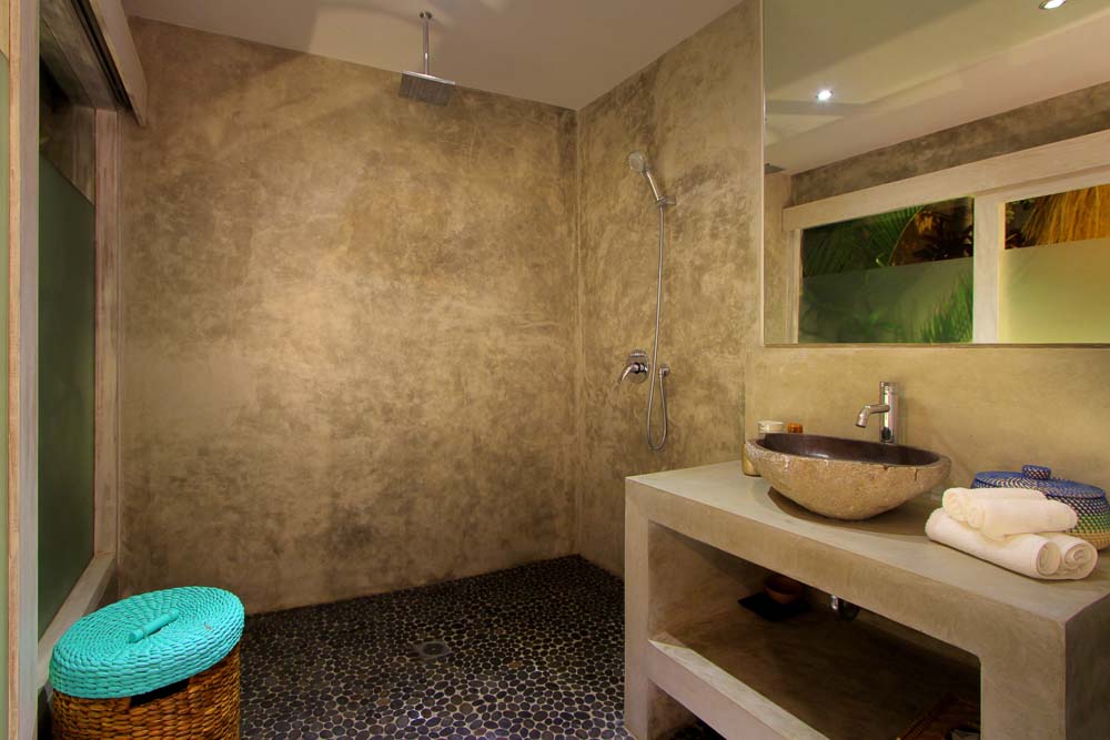 Memadukan pesona tropis dengan arsitektur Joglo yang tak lekang oleh waktu, vila ini memiliki ruang tamu dan ruang makan terbuka yang dibangun dari kayu jati reklamasi yang indah, menampilkan kehangatan dan keaslian keahlian Indonesia. Ruang ini mengalir dengan mudah ke area luar ruangan, di mana kolam renang pribadi dikelilingi oleh tanaman hijau subur dan atap alang-alang, menciptakan suasana bergaya resor yang tenang.