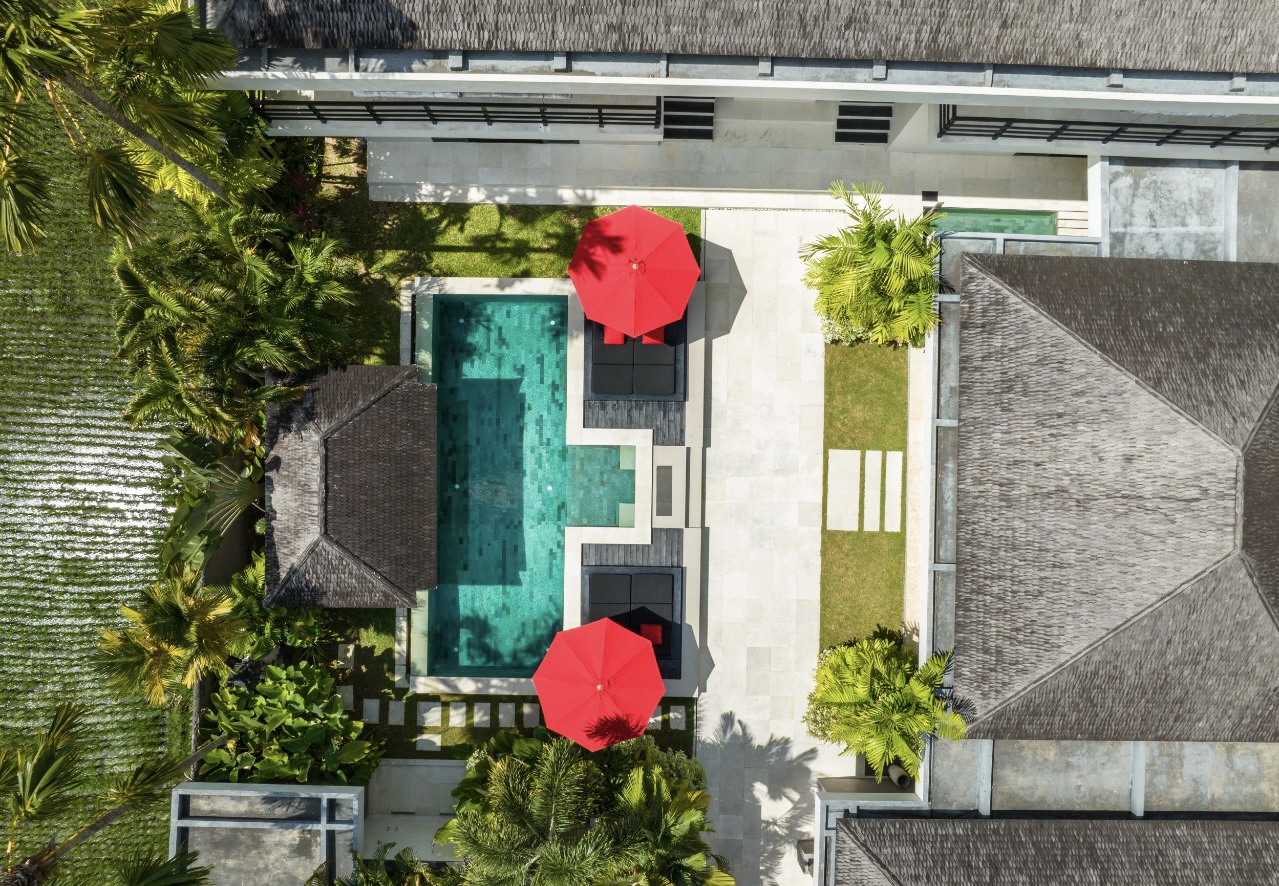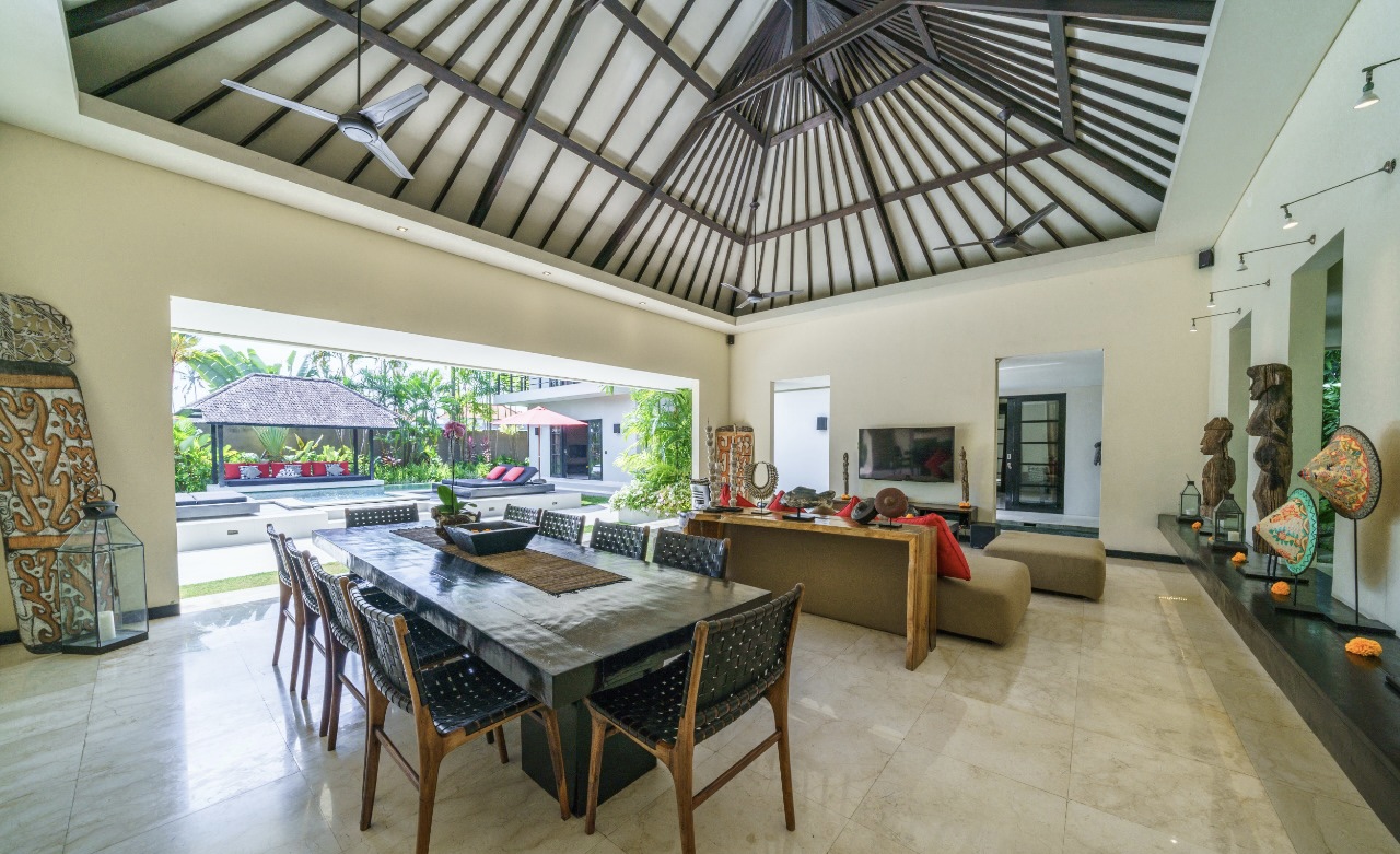 Bayangkan diri Anda bersantai di tepi kolam renang, berjemur di bawah sinar matahari tropis, atau mengadakan pertemuan yang tak terlupakan di ruang tamu yang luas. Empat kamar tidur vila yang elegan menyediakan ruang yang luas untuk relaksasi, memastikan setiap anggota keluarga Anda merasa seperti di rumah sendiri.