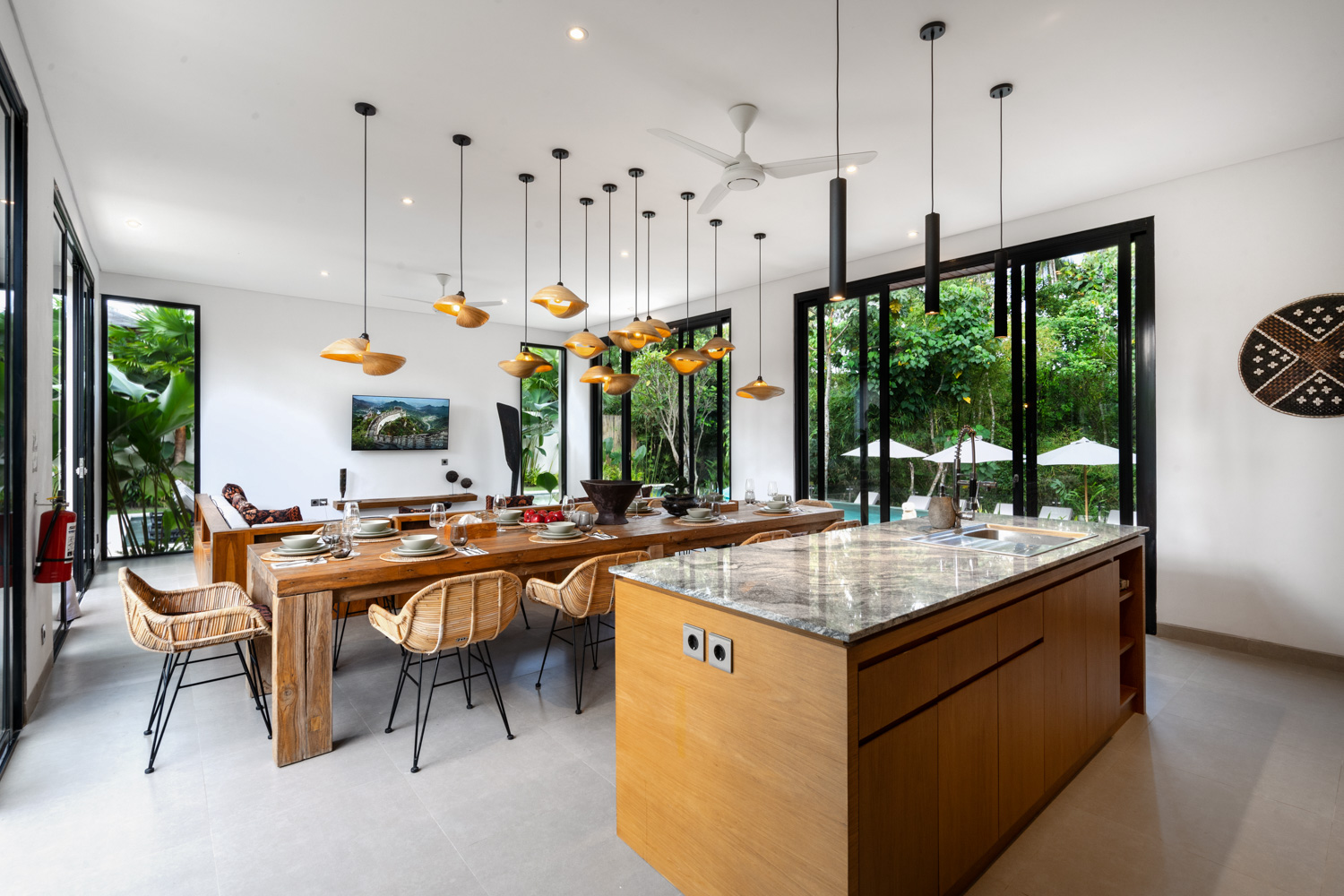 Vila ini mencakup lima kamar tidur — empat dengan kamar mandi en-suite ditambah satu kamar susun — di samping total 4,5 kamar mandi. Dengan ruang bangunan seluas 203 meter persegi, hotel ini menawarkan ruang tamu dan ruang makan terbuka yang cerah, dilengkapi dengan dek tepi kolam renang yang besar untuk bersantai atau menghibur tamu.