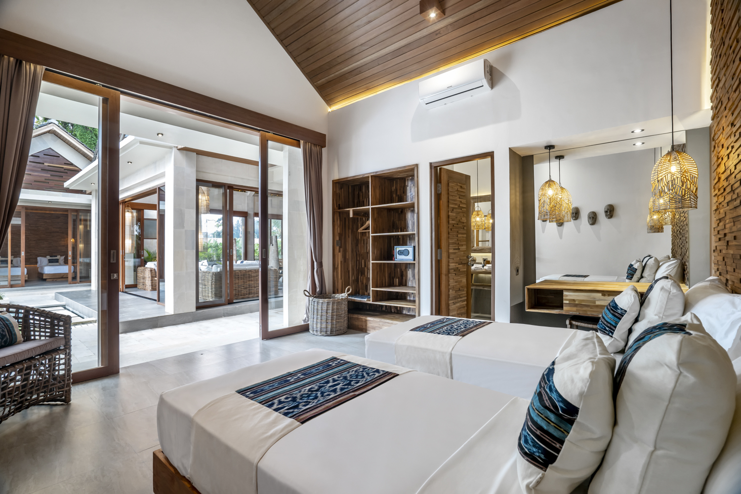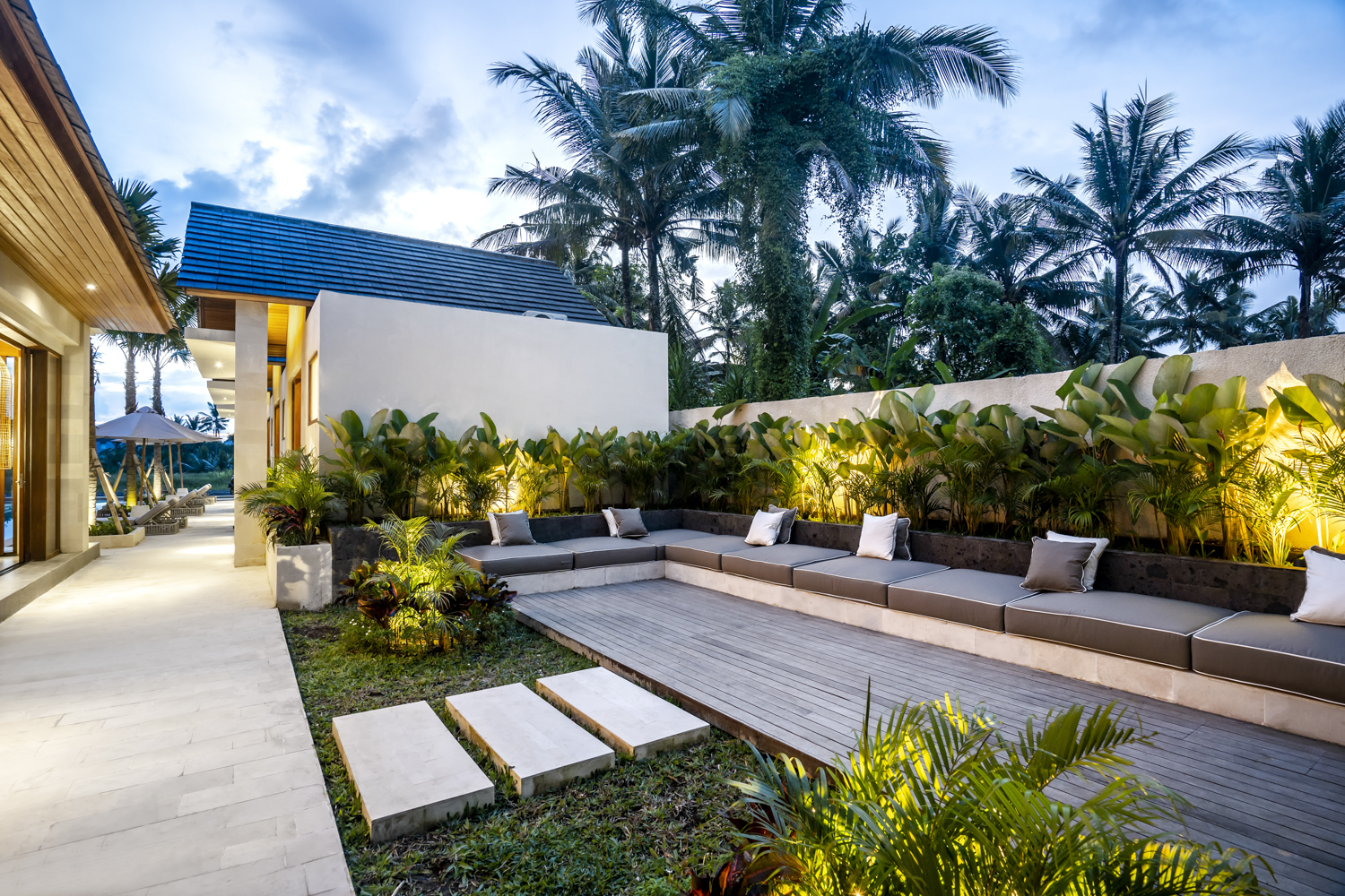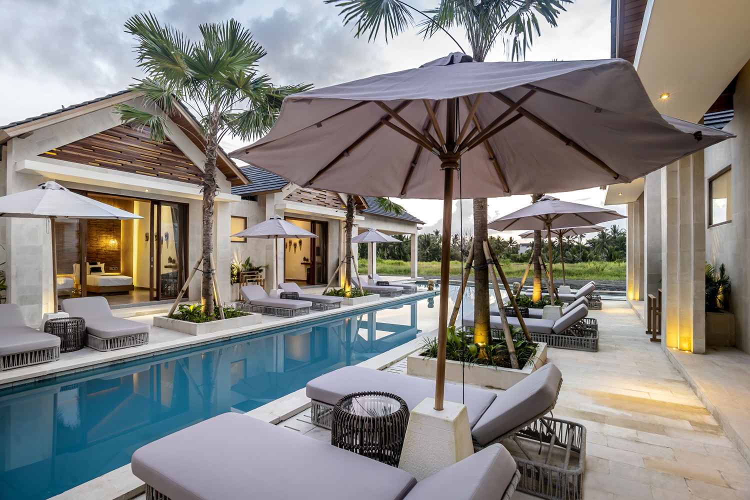 Terletak di atas lahan seluas 750 meter persegi, vila ini memiliki kolam renang seluas 102 meter persegi, taman lanskap, dan beberapa ruang tamu terbuka dan tertutup untuk relaksasi dan hiburan. Interiornya membentang 243,5 meter persegi, menawarkan enam kamar tidur en-suite ditambah kamar mandi tamu, memastikan kenyamanan dan privasi bagi keluarga dan tamu.