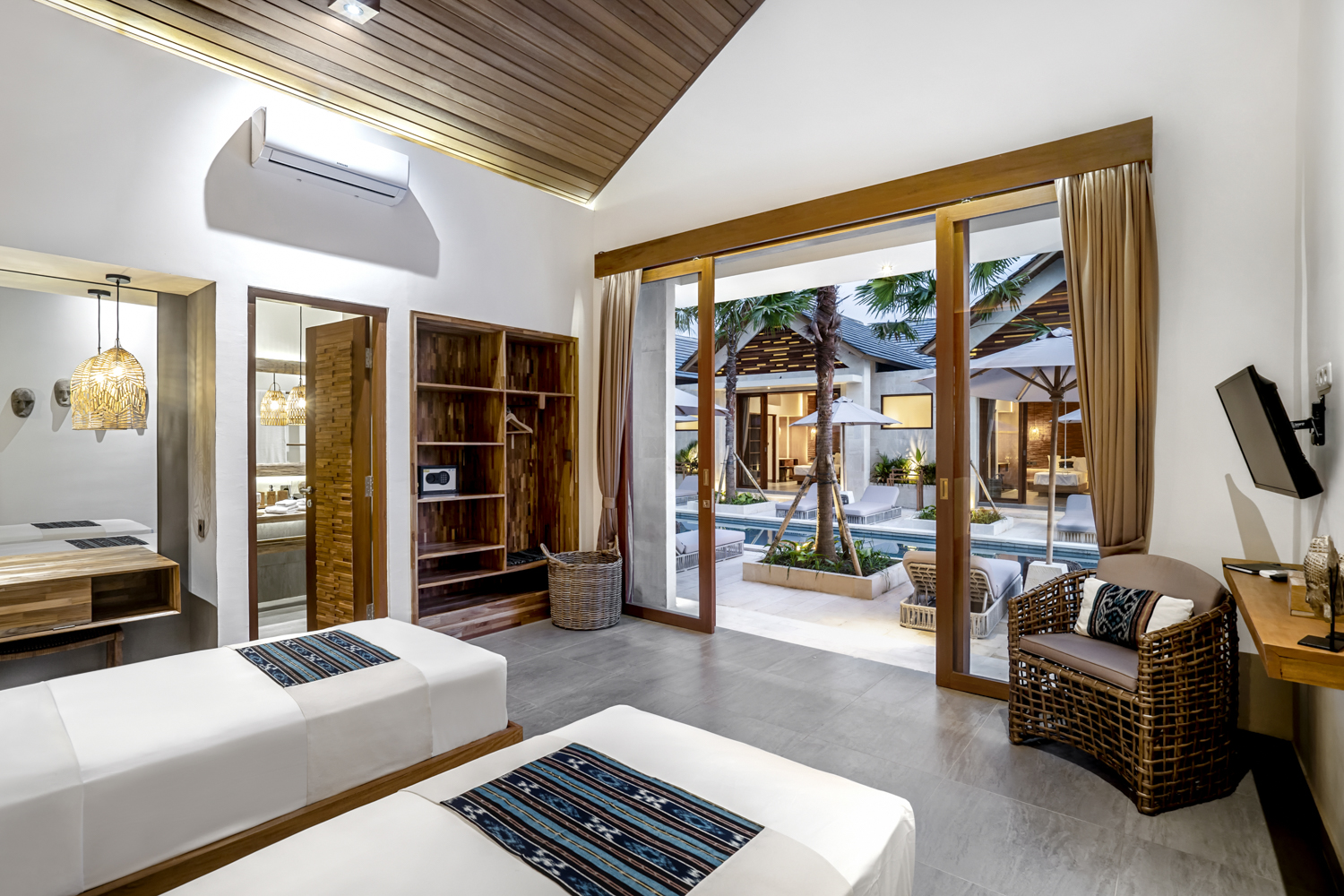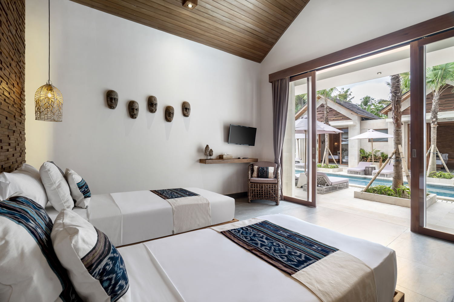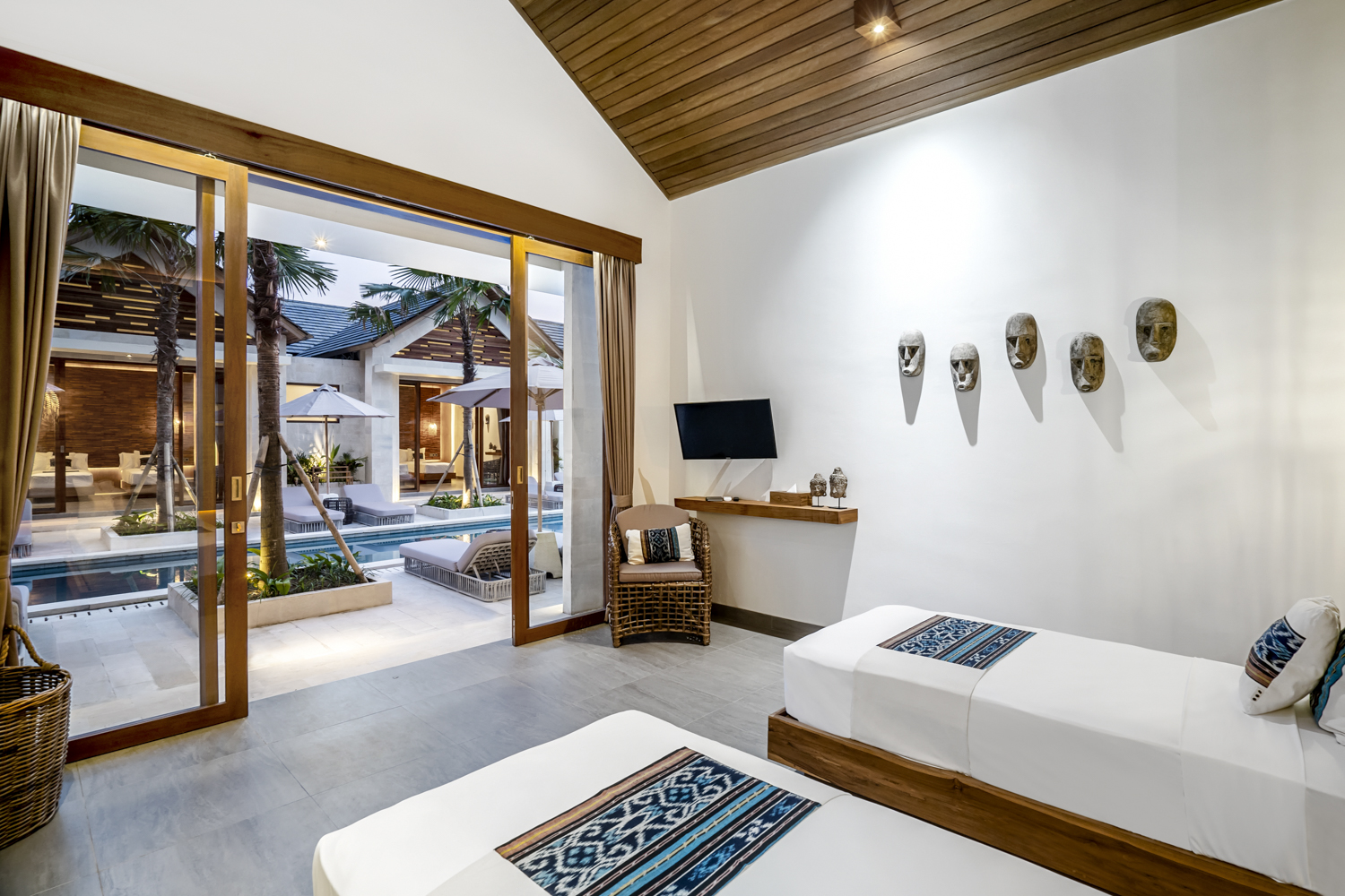 Terletak di atas lahan seluas 750 meter persegi, vila ini memiliki kolam renang seluas 102 meter persegi, taman lanskap, dan beberapa ruang tamu terbuka dan tertutup untuk relaksasi dan hiburan. Interiornya membentang 243,5 meter persegi, menawarkan enam kamar tidur en-suite ditambah kamar mandi tamu, memastikan kenyamanan dan privasi bagi keluarga dan tamu.
