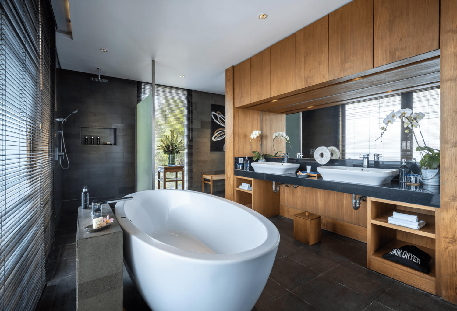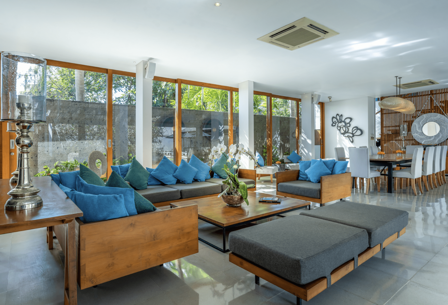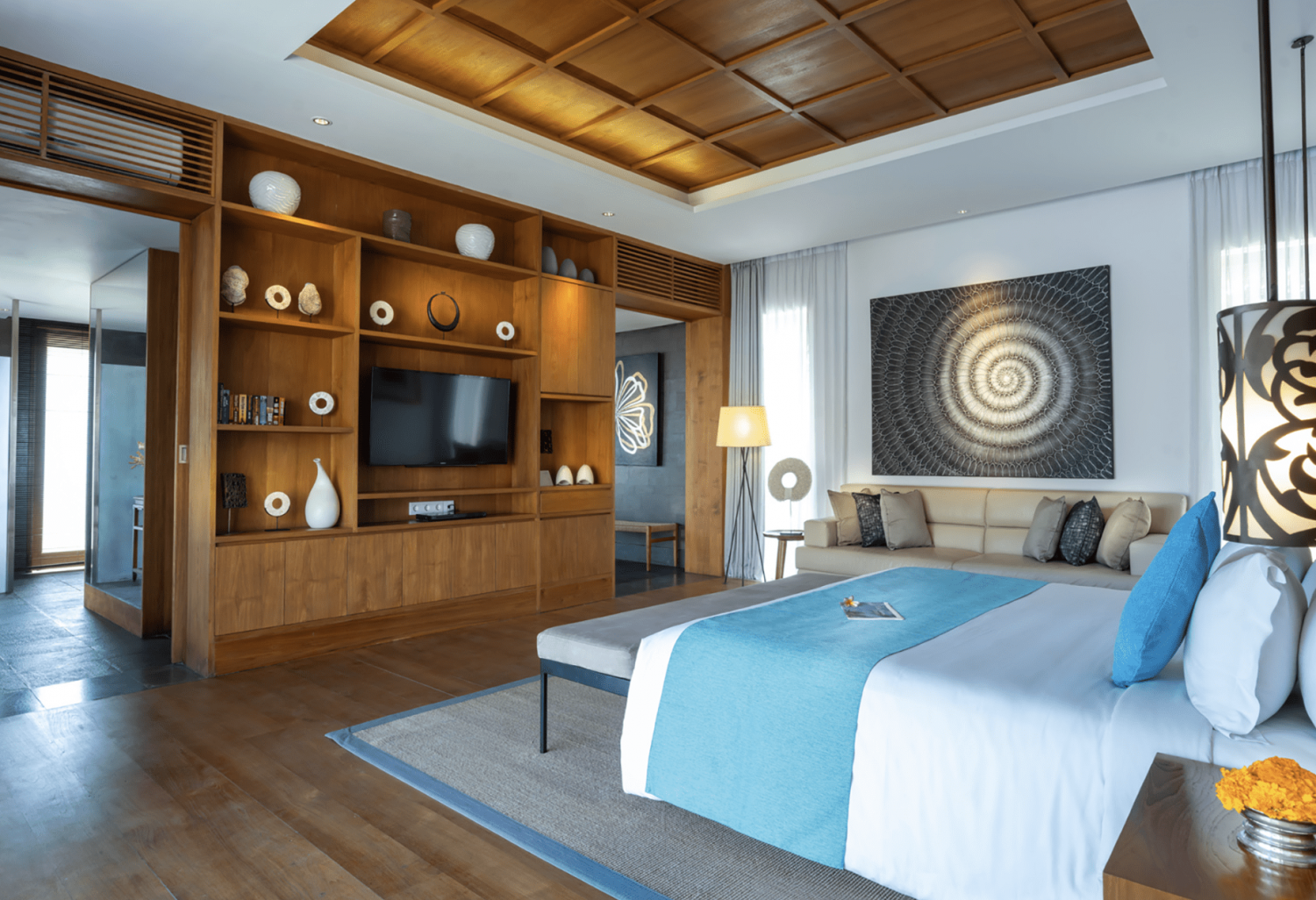 Vila ini menawarkan interior segar dan segar yang menampilkan dinding putih, lantai batu Palimanan krem, aksen kayu hangat, seni impresionis modern, dan sentuhan etnis Indonesia. Hotel ini menawarkan berbagai pilihan rekreasi, mulai dari kolam renang sepanjang 18 meter dan gym canggih untuk penggemar kebugaran hingga perawatan spa mewah dan TV layar datar HD 55 inci untuk relaksasi.