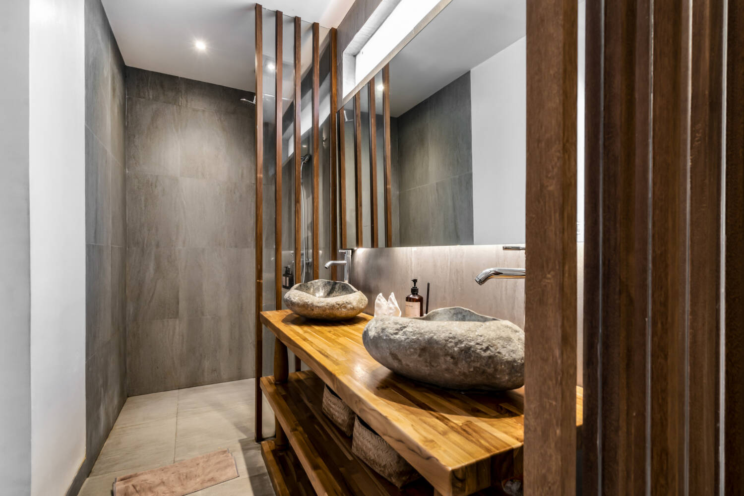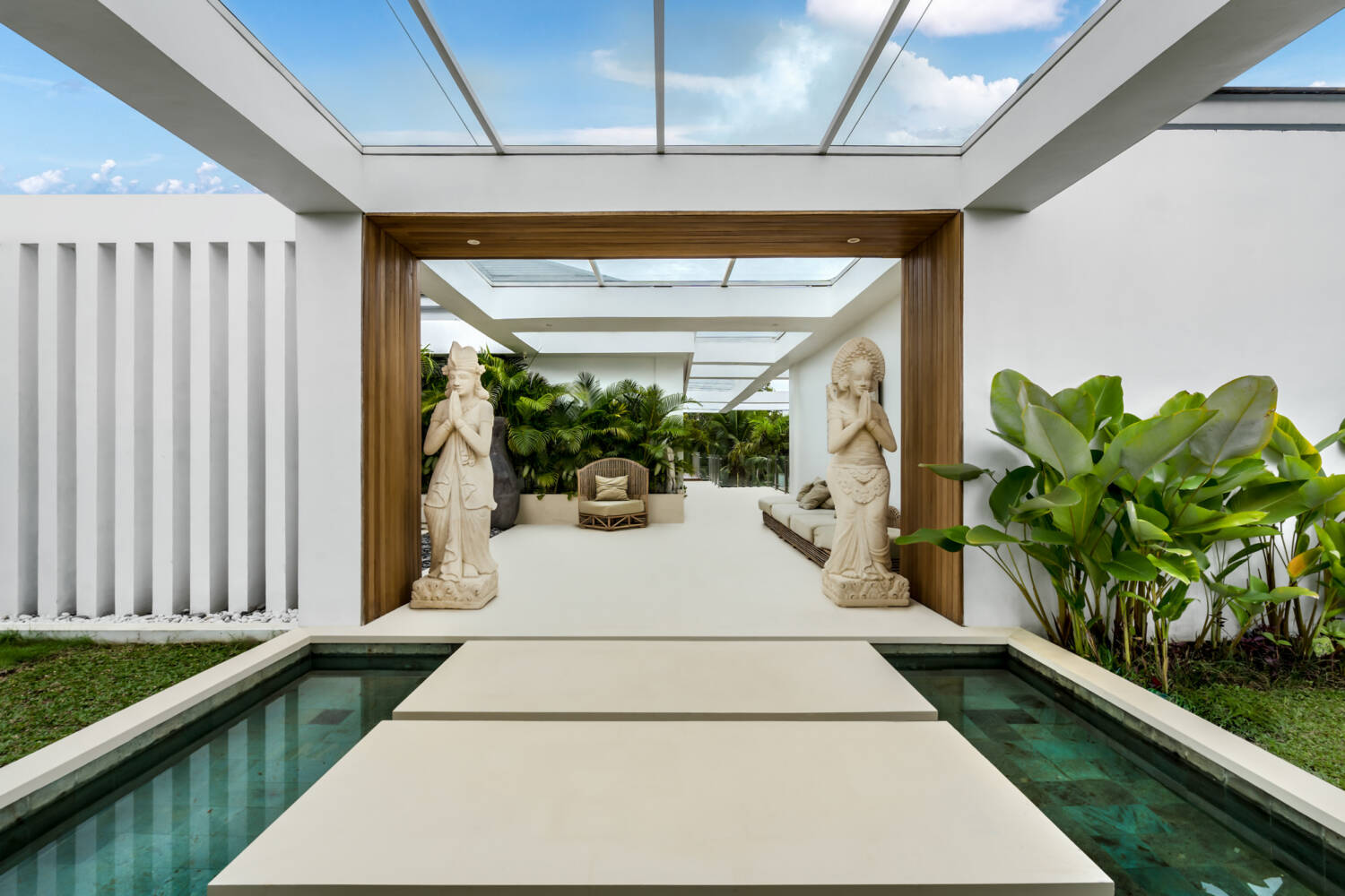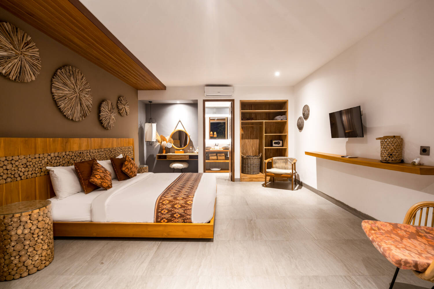 Di luar ruangan, kolam renang tanpa batas yang luas, pemandian busa luar ruangan, dan pancuran terbuka mengundang Anda untuk bersantai di bawah langit tropis Bali. Ruang tamu dan ruang makan semi-tertutup dirancang untuk menyambut angin sepoi-sepoi alami, sementara dapur lengkap dan hasil akhir berkualitas tinggi memastikan kenyamanan. Ramah lingkungan dengan desain, vila ini menyeimbangkan fasilitas modern—seperti AC di kamar tidur, HDTV dengan Netflix, dan WiFi berkecepatan tinggi—dengan kehidupan tropis terbuka.