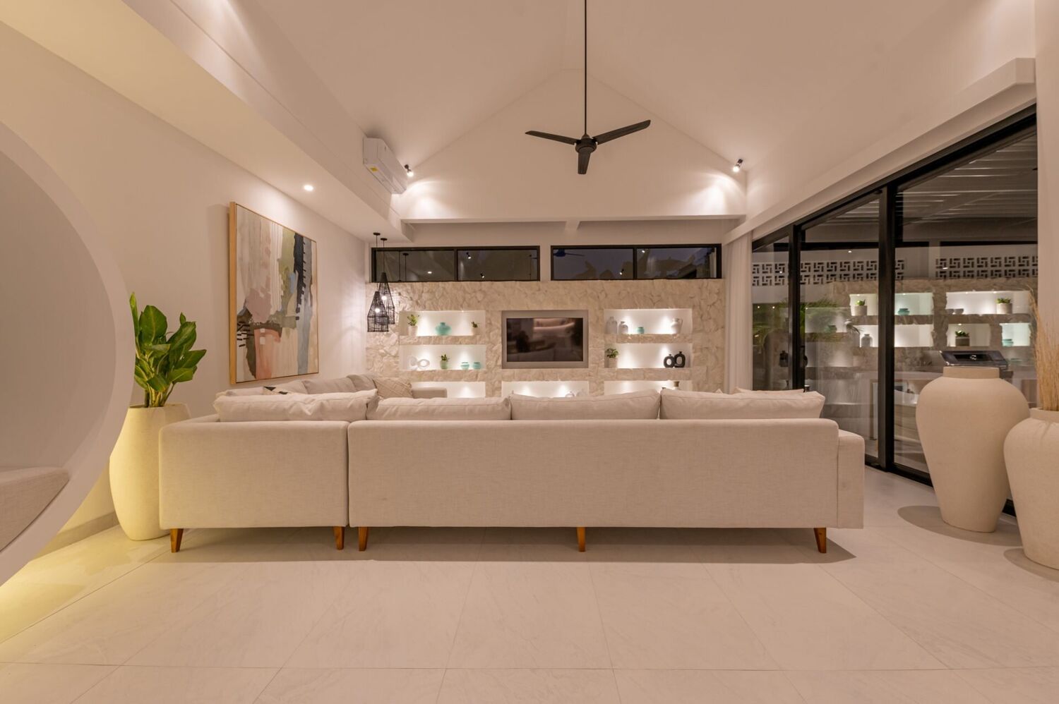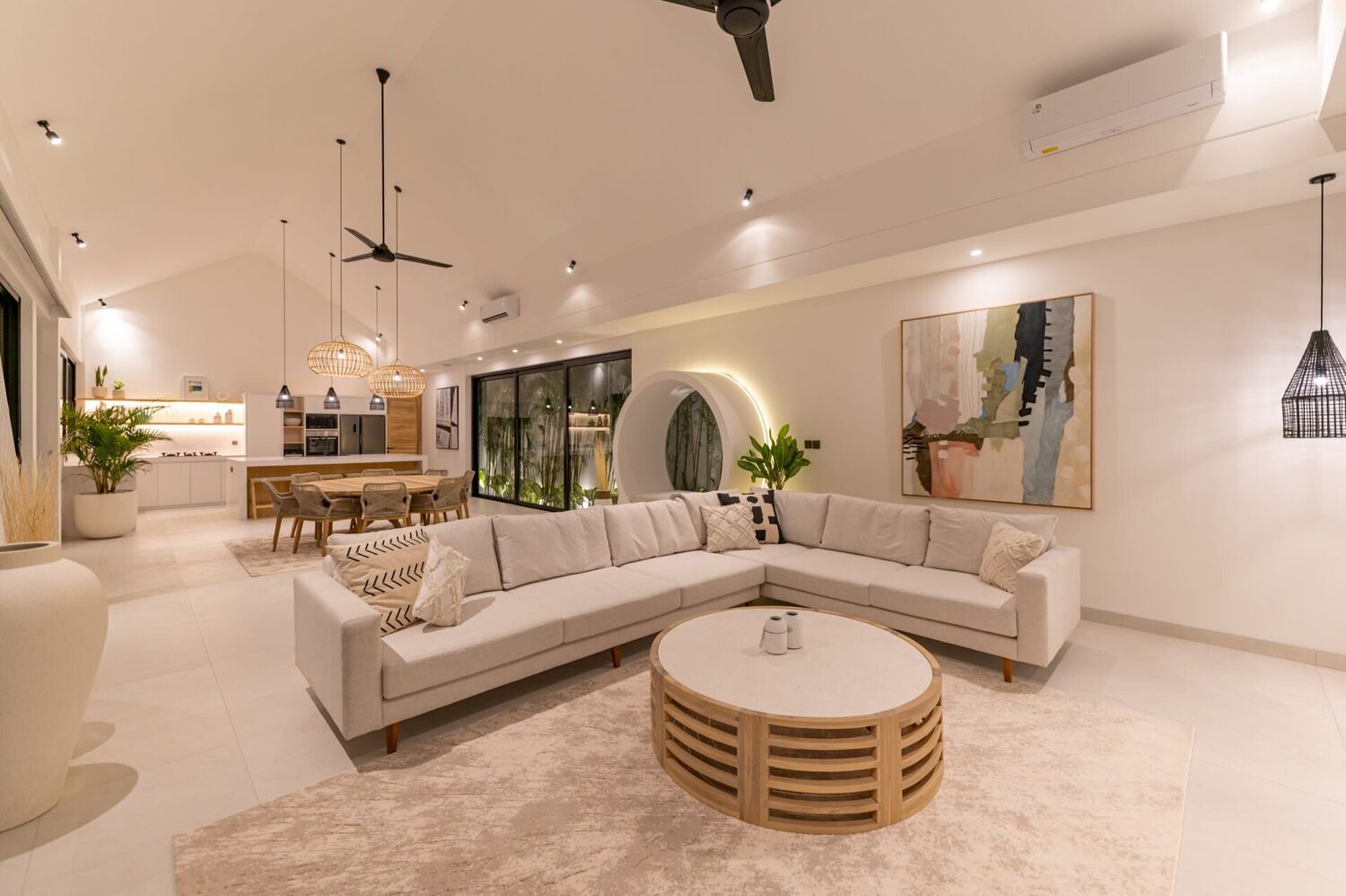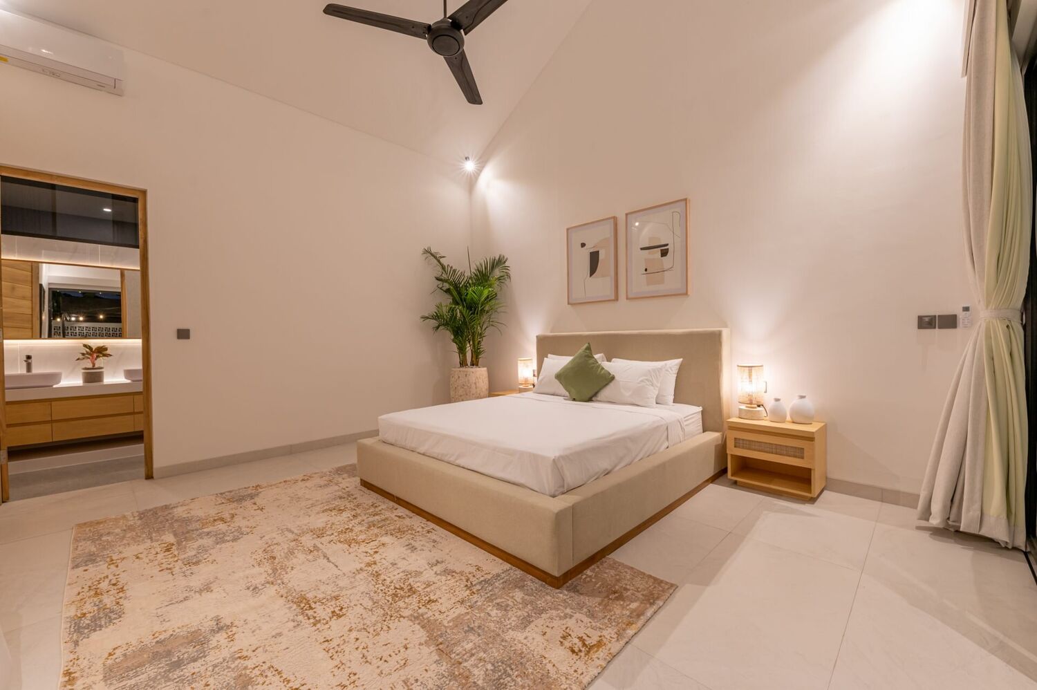 Terletak di atas tanah seluas 580 meter persegi dengan ruang tamu seluas 345 meter persegi yang dirancang dengan cermat, vila ini menawarkan 4 kamar tidur en-suite yang luas, dengan fleksibilitas untuk mengubah lounge kedua menjadi kamar tidur kelima atau kantor pribadi. Langit-langit tinggi, pintu kaca dari lantai ke langit-langit, dan cahaya alami yang melimpah menciptakan hubungan yang mulus antara keanggunan dalam ruangan dan ketenangan luar ruangan.