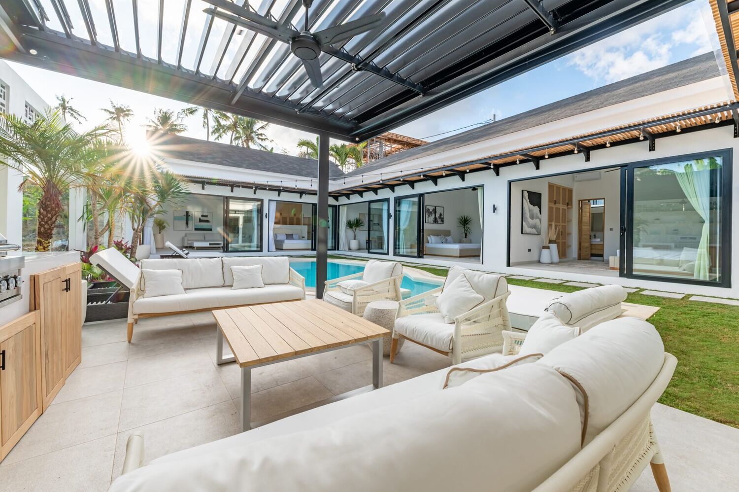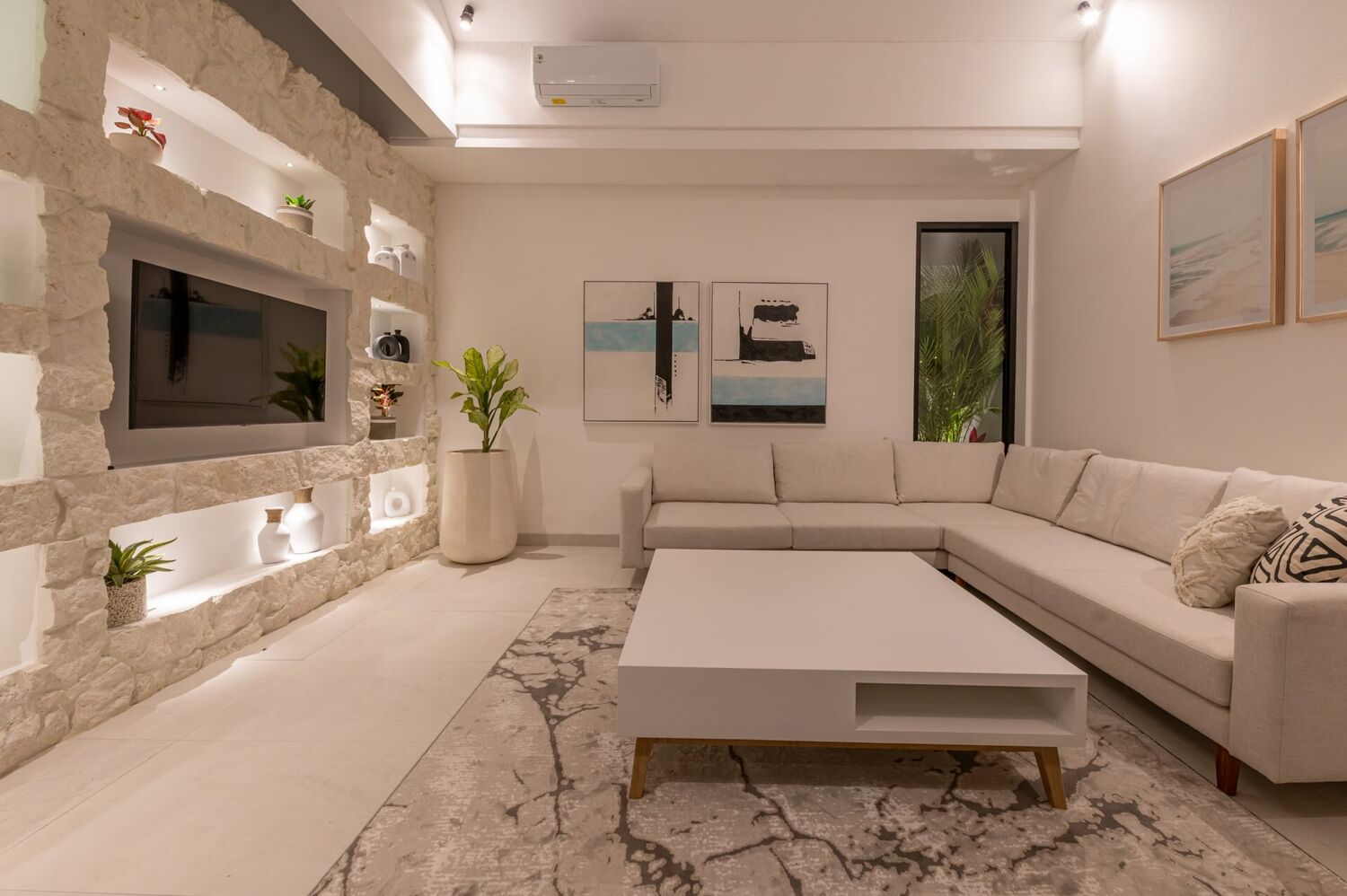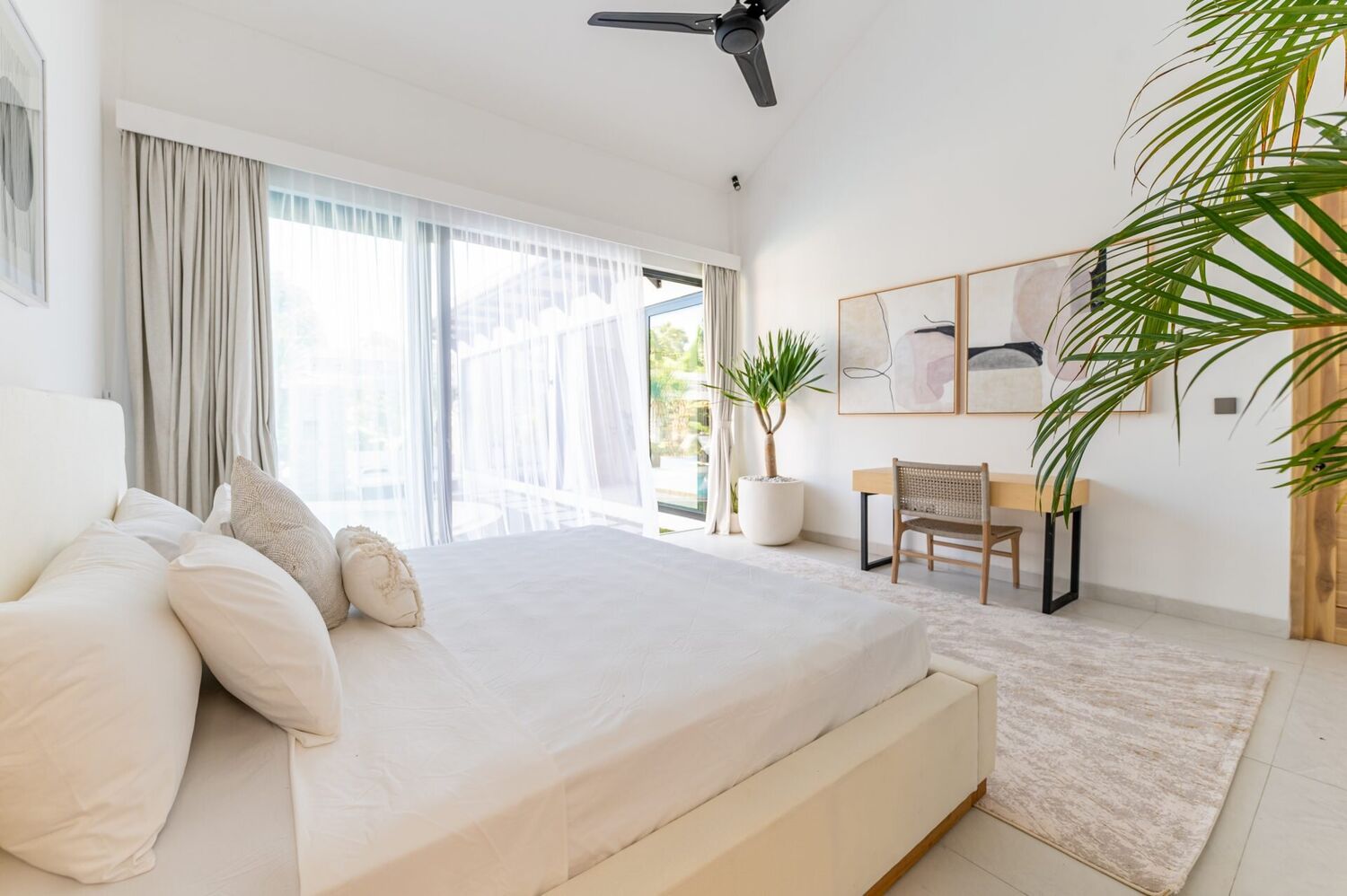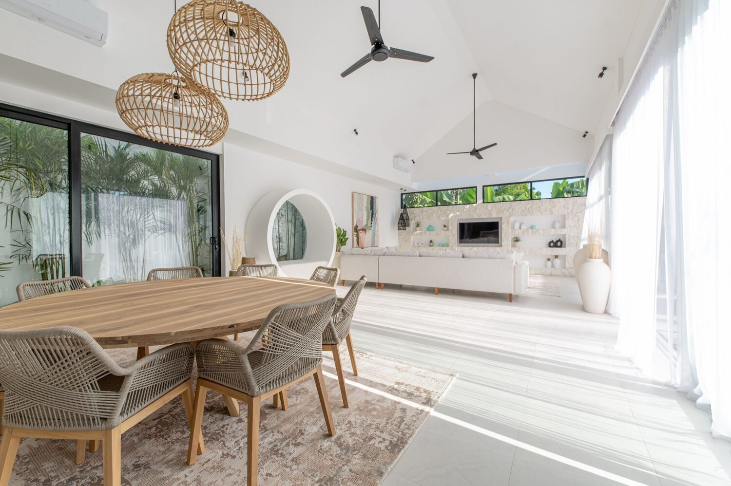 Terletak di atas tanah seluas 580 meter persegi dengan ruang tamu seluas 345 meter persegi yang dirancang dengan cermat, vila ini menawarkan 4 kamar tidur en-suite yang luas, dengan fleksibilitas untuk mengubah lounge kedua menjadi kamar tidur kelima atau kantor pribadi. Langit-langit tinggi, pintu kaca dari lantai ke langit-langit, dan cahaya alami yang melimpah menciptakan hubungan yang mulus antara keanggunan dalam ruangan dan ketenangan luar ruangan.