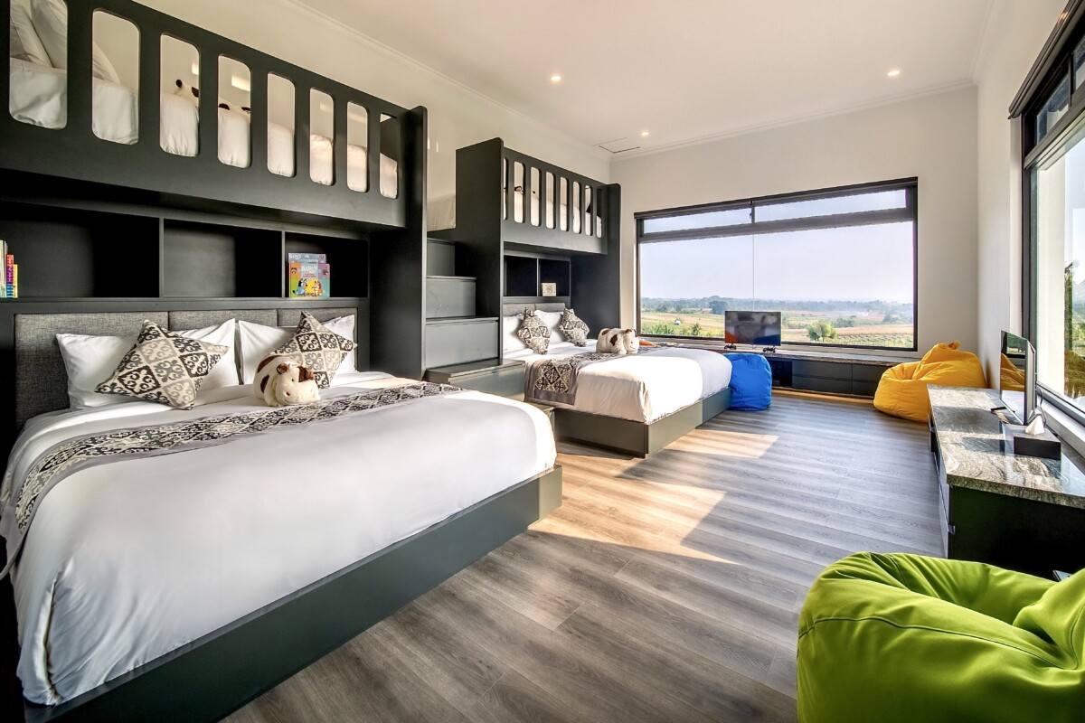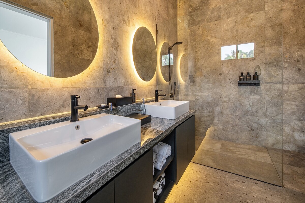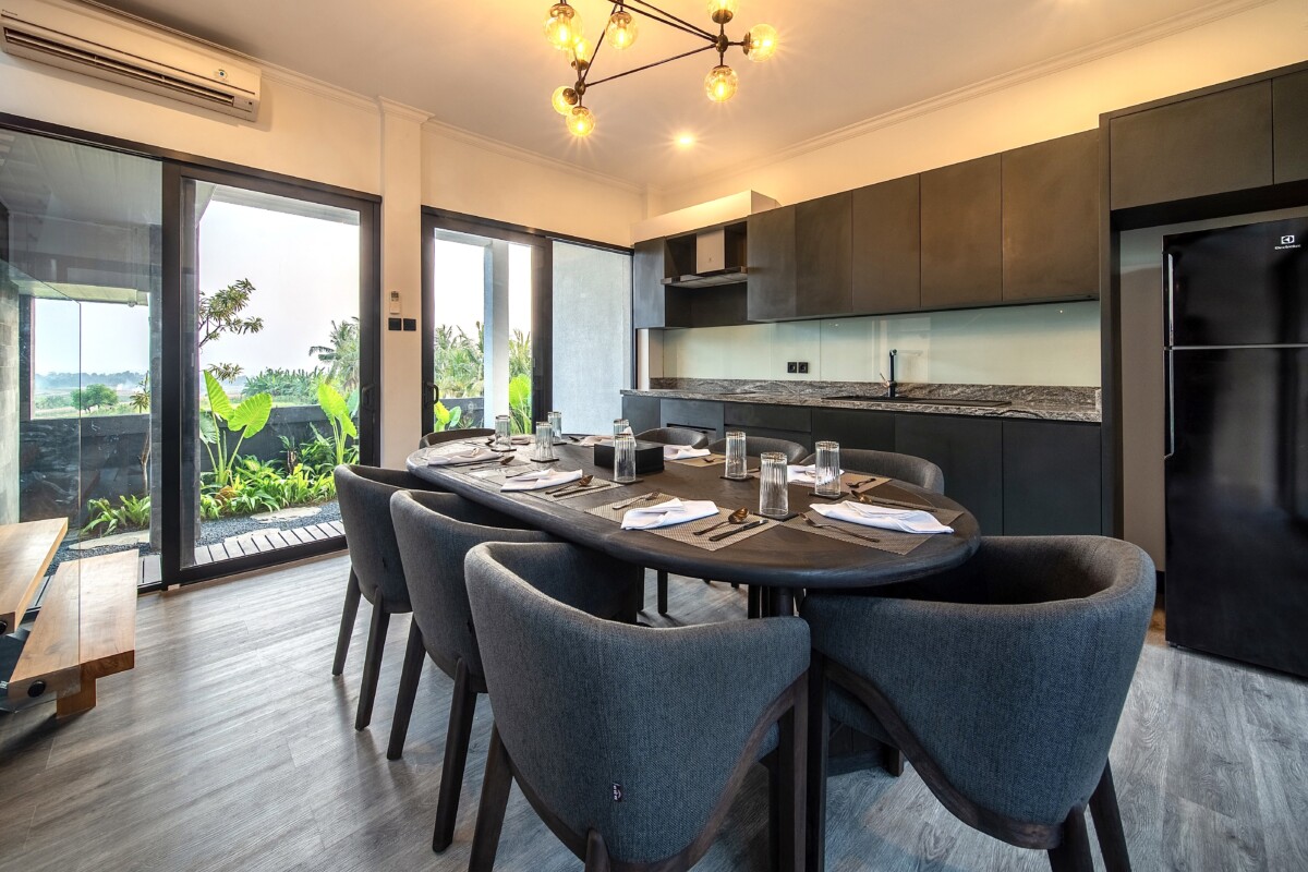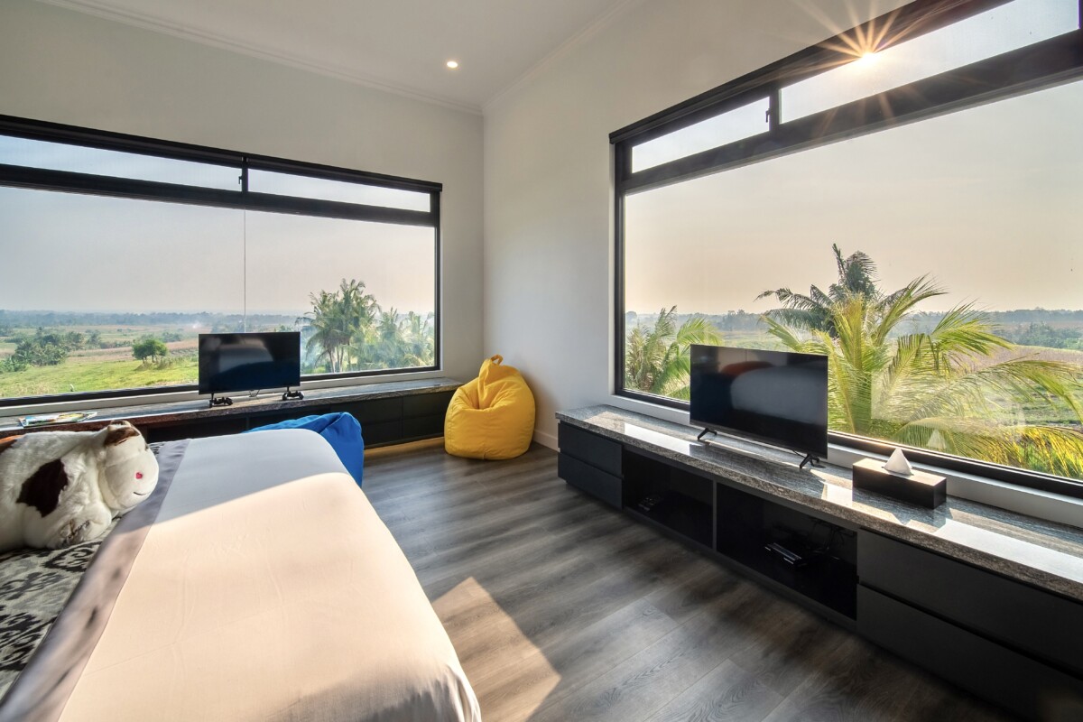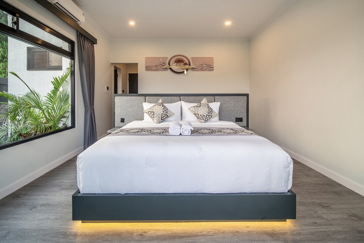 Vila ini memiliki dua suite utama besar dengan jendela dari lantai ke langit-langit dan akses langsung ke kolam renang atau taman, dan kamar tidur anak-anak yang luas yang dirancang untuk keluarga dengan tempat tidur susun dan area bermain khusus. Ruang tamu dan ruang makan terbuka terhubung dengan mulus ke luar ruangan, di mana kolam renang berbentuk T dengan bar renang, area BBQ, dan pemandangan matahari terbenam menciptakan suasana yang sempurna untuk menghibur atau bersantai. Setiap ruang dilengkapi dengan sentuhan akhir kelas atas, linen impor, granit yang dipoles, TV pintar, dan sentuhan yang bijaksana di seluruhnya.