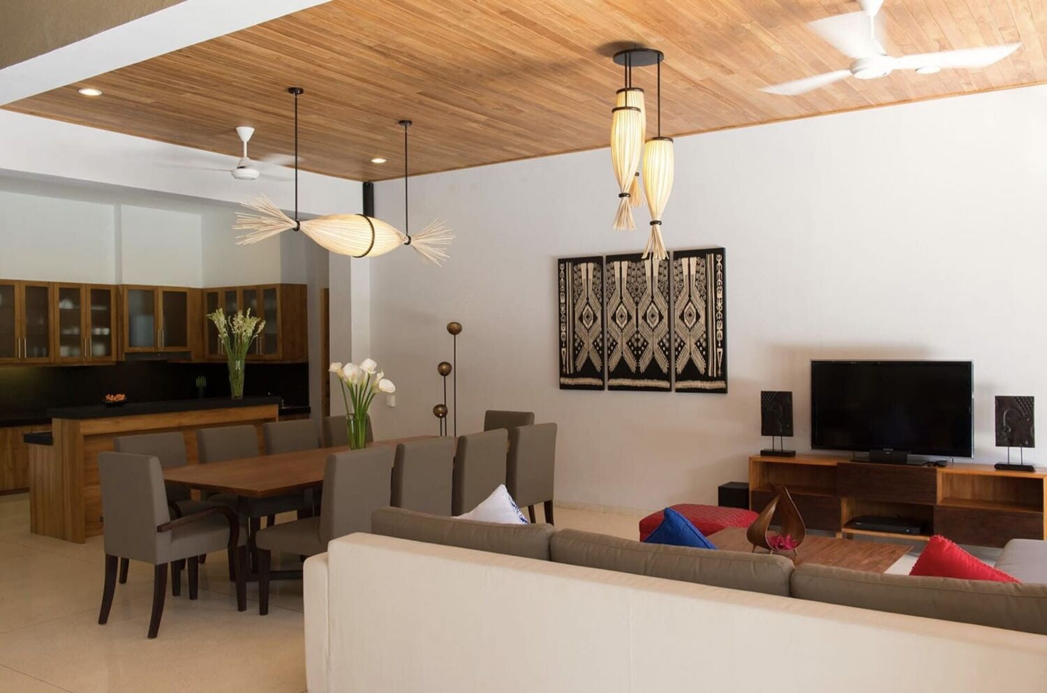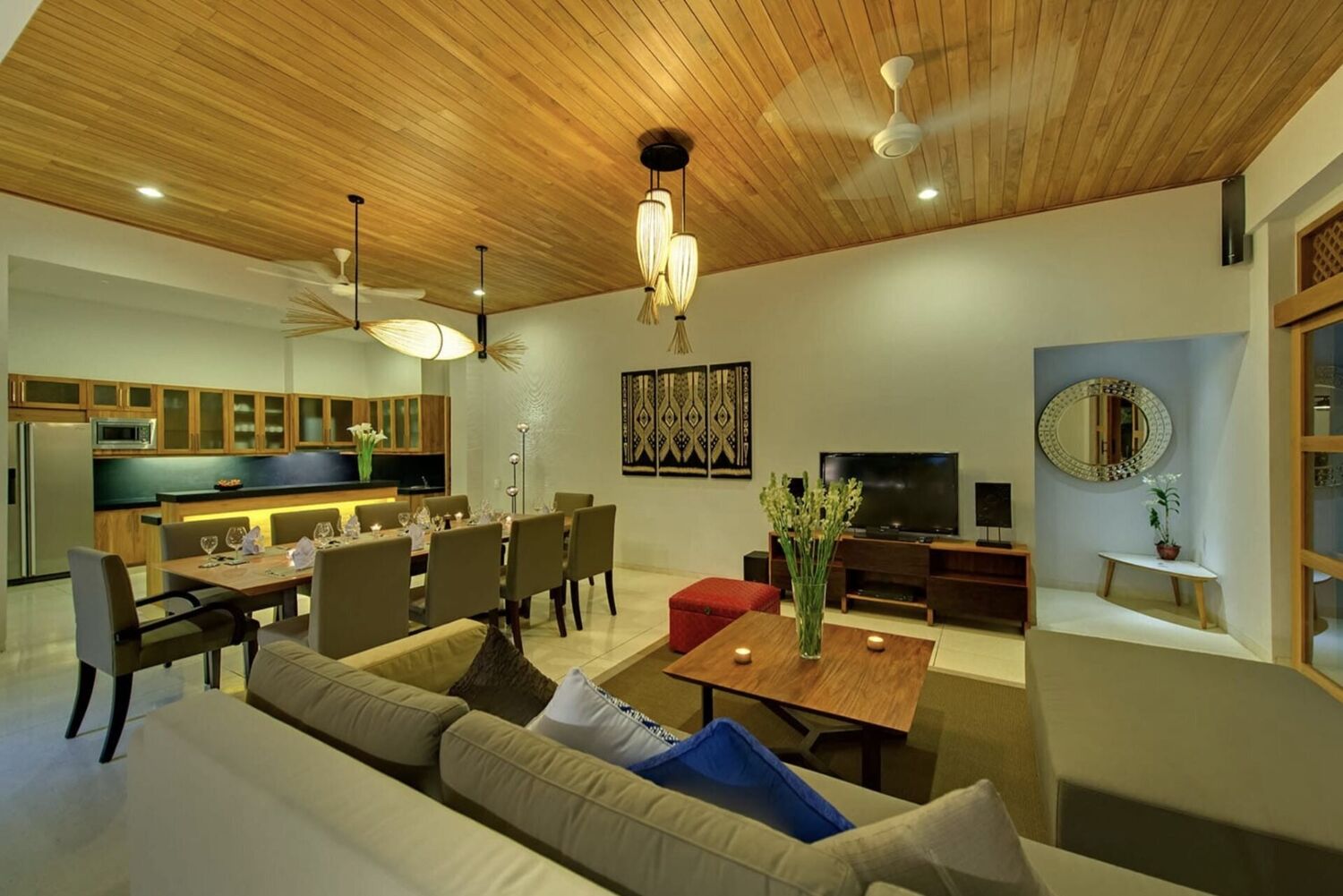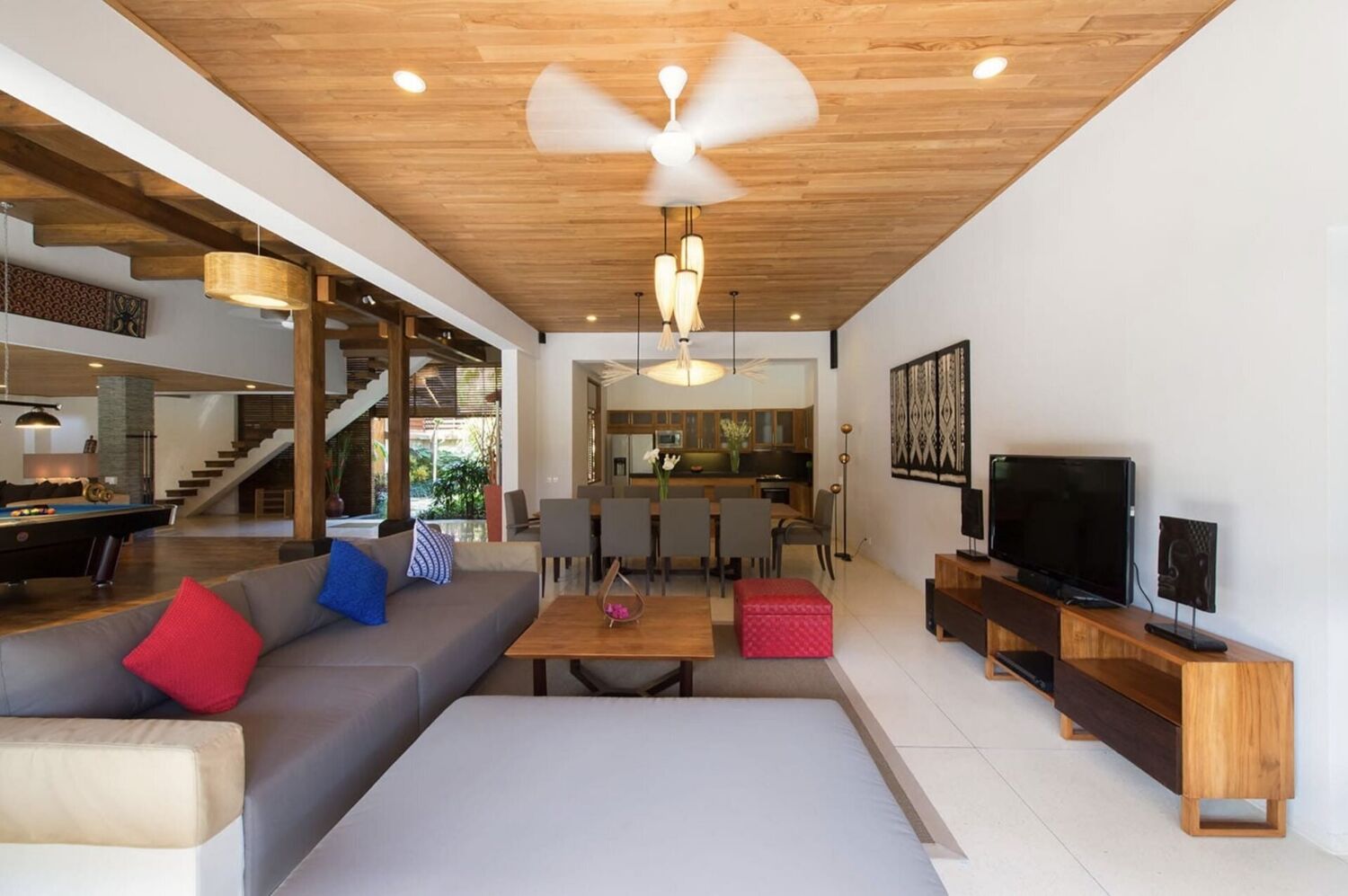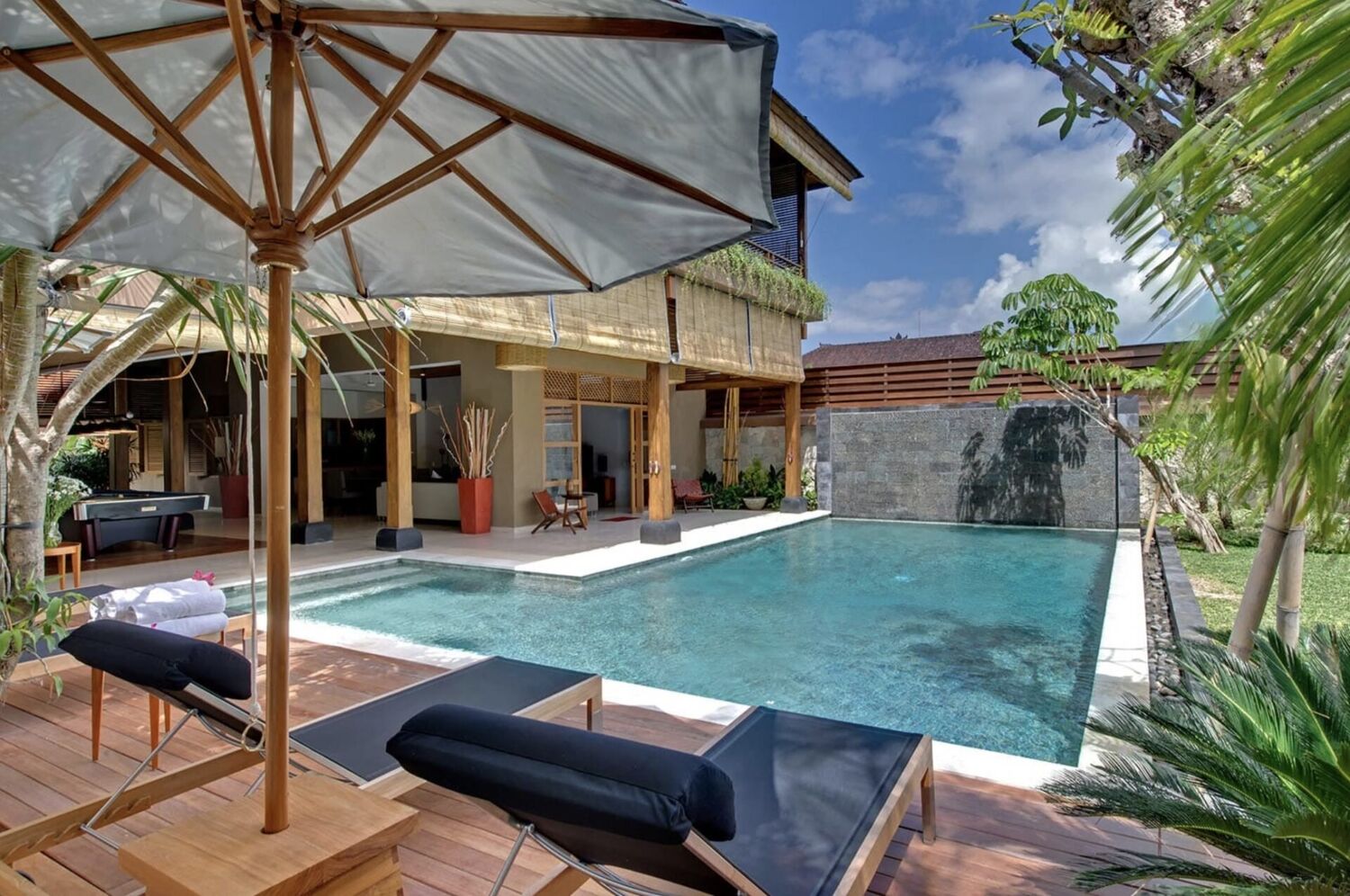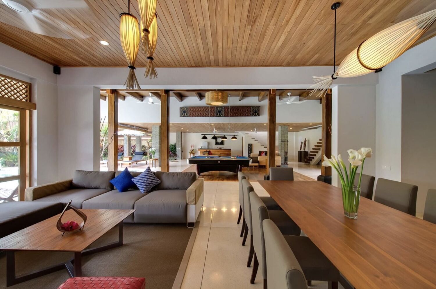 Kolam renang pribadi berbentuk L yang menakjubkan dibingkai oleh tempat berjemur besar dan oasis taman tropis, sementara ruang tamu dalam dan luar ruangan yang luas dirancang untuk rekreasi yang canggih. Kolom kayu jati yang tinggi, arsitektur terbuka, dan perabotan Bali yang dipilih dengan cermat menghadirkan rasa kemegahan dan ketenangan di seluruh rumah. Fitur-fiturnya termasuk sofa besar, ruang makan 12 tempat duduk, meja biliar, dan pengaturan bar lengkap — semuanya berperabotan lengkap dan siap pindah.