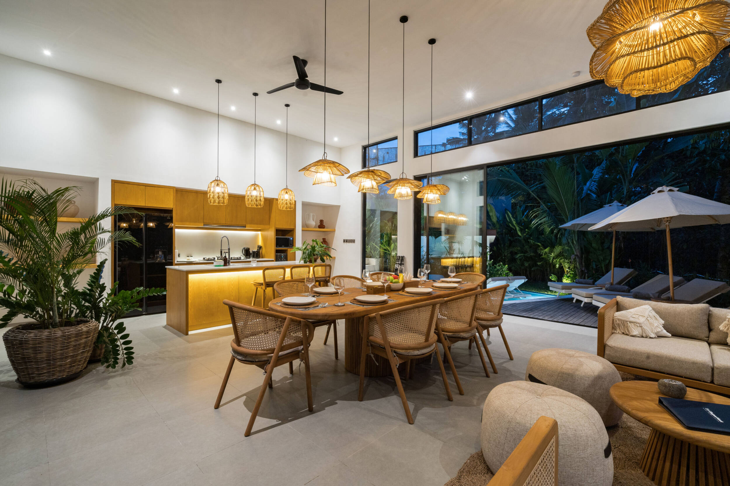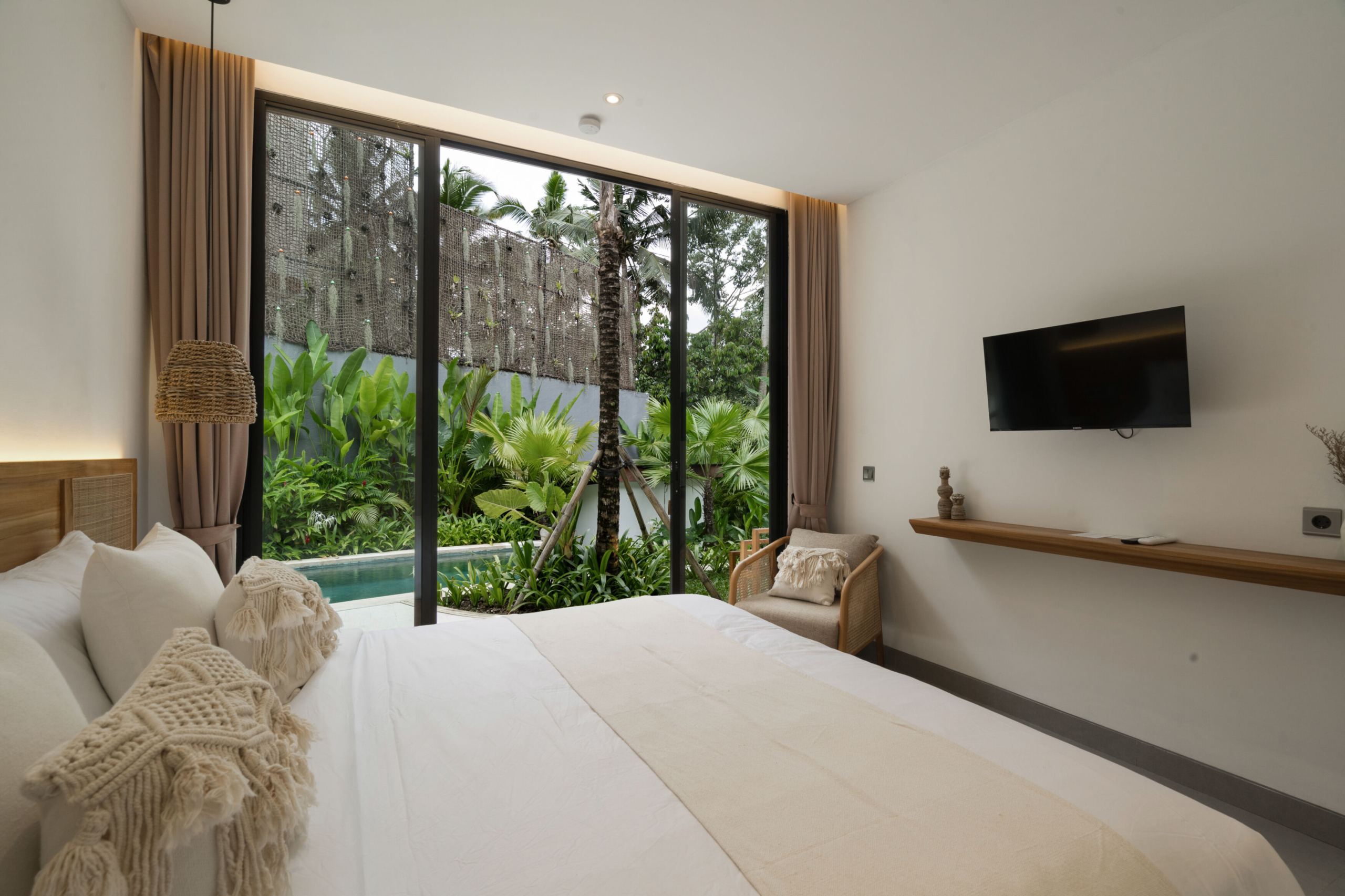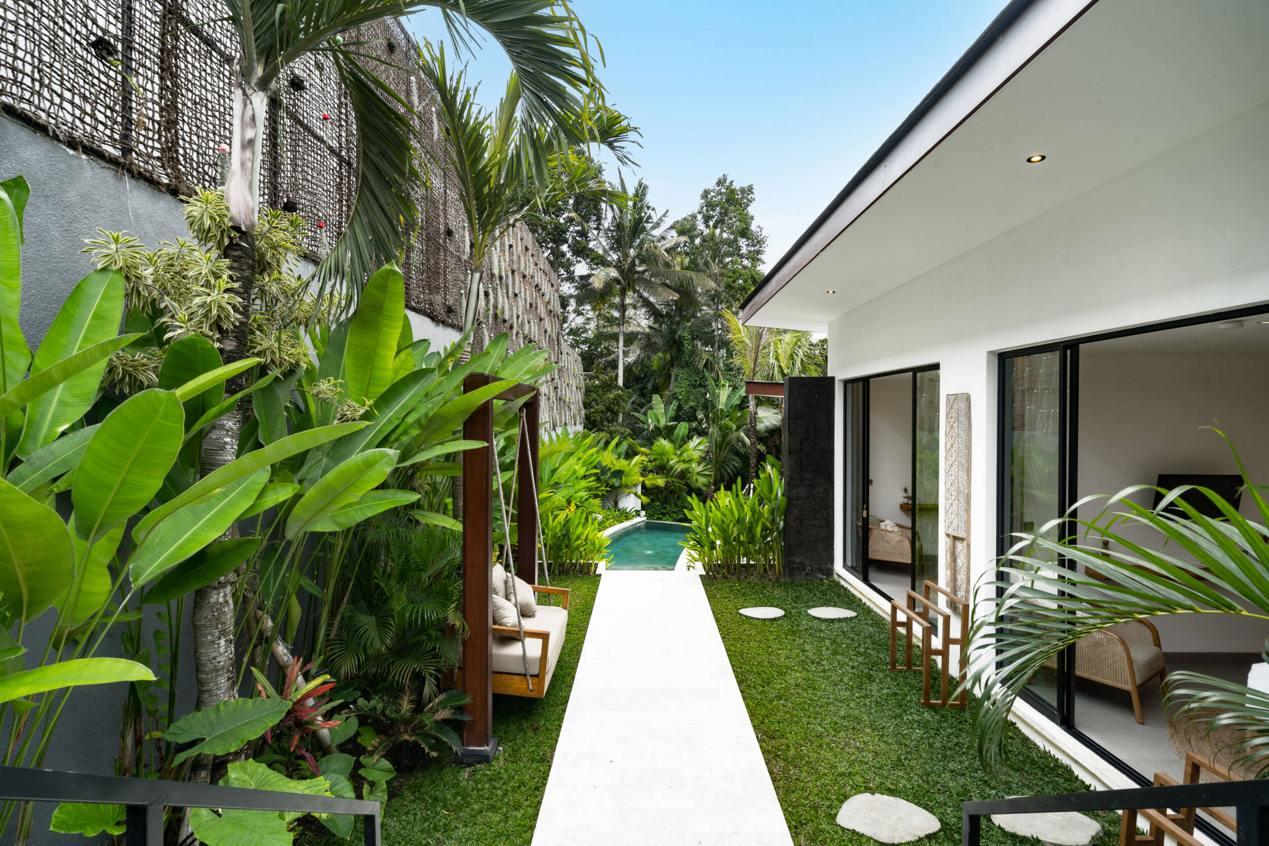 Vila ini dirancang untuk memadukan kehidupan modern dengan keindahan hutan yang mentah. Dengan langit-langit tinggi, cahaya alami yang melimpah, dan tanaman yang terintegrasi langsung ke dalam arsitektur, rumah ini menciptakan suasana hidup ramah lingkungan di seluruhnya. Infinity pool, area taman untuk grounding, dan konsep open living menjadikan properti ini ideal untuk relaksasi, kesehatan, dan potensi sewa yang kuat.