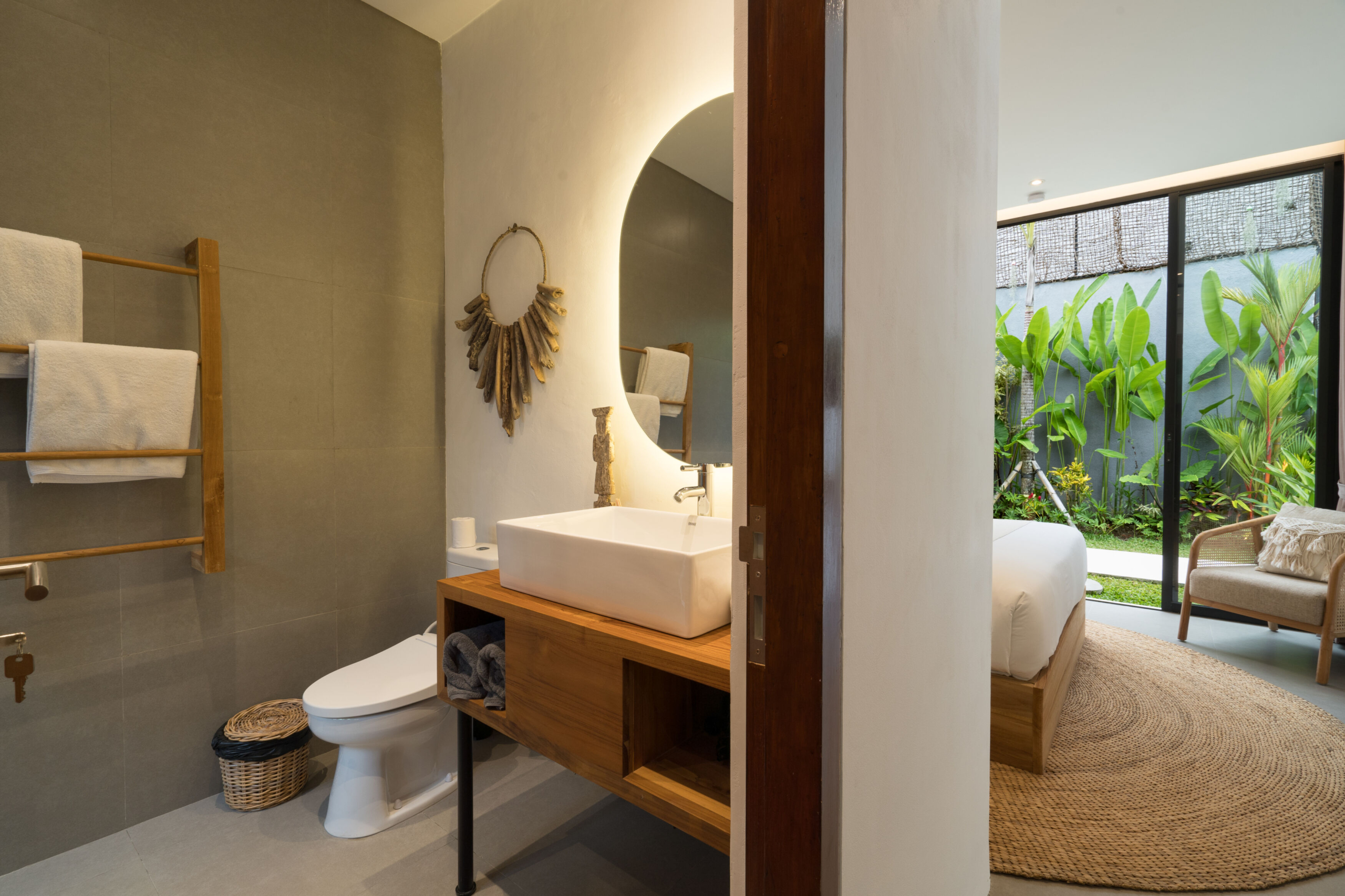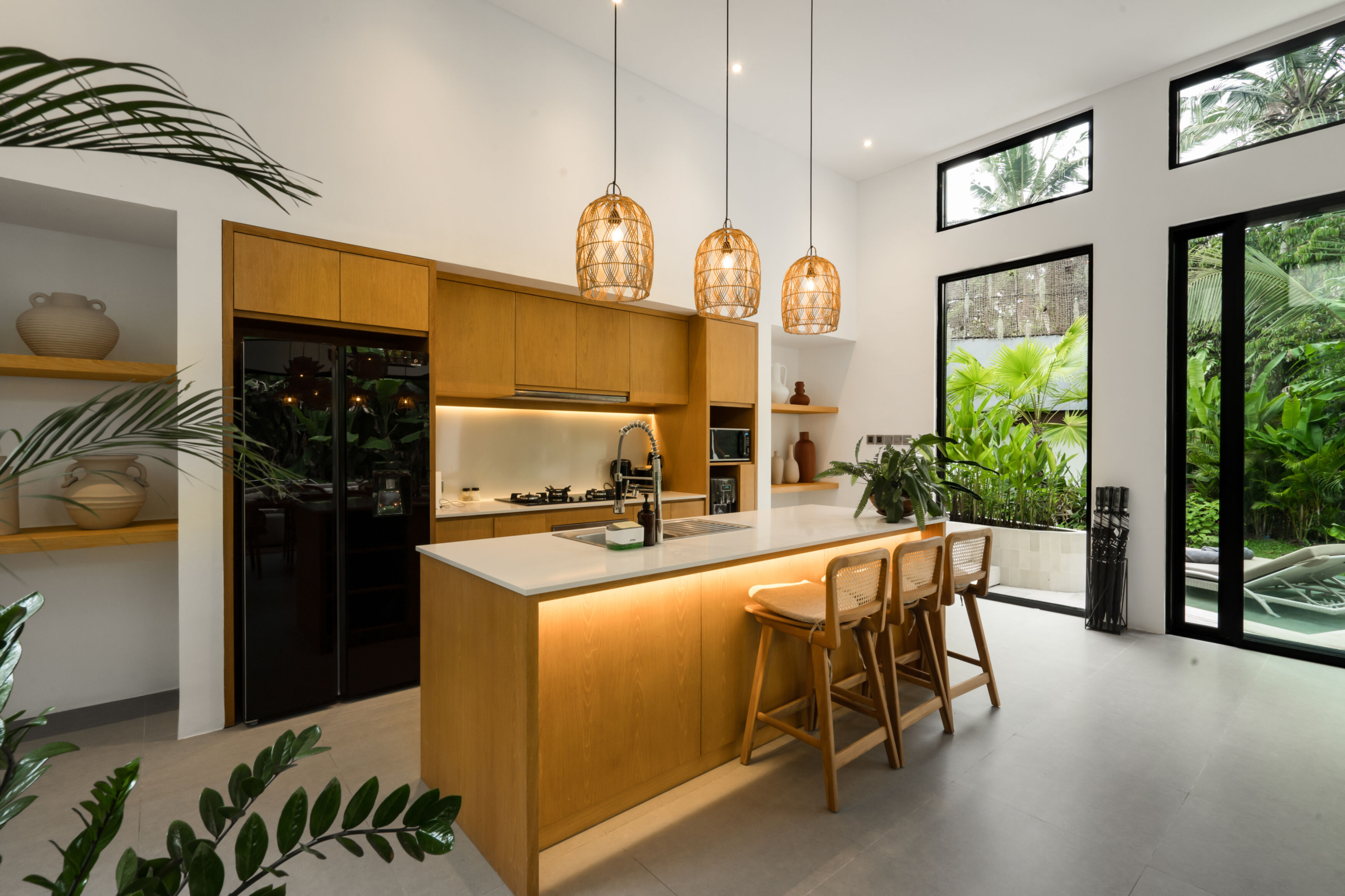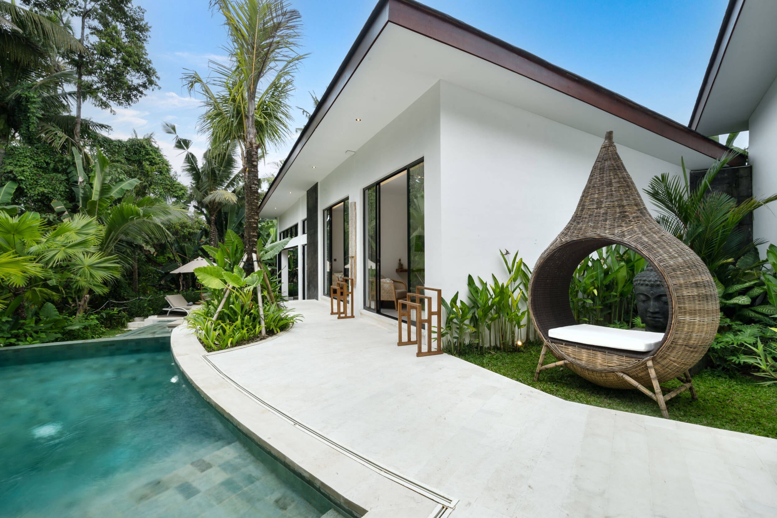 Vila ini dirancang untuk memadukan kehidupan modern dengan keindahan hutan yang mentah. Dengan langit-langit tinggi, cahaya alami yang melimpah, dan tanaman yang terintegrasi langsung ke dalam arsitektur, rumah ini menciptakan suasana hidup ramah lingkungan di seluruhnya. Infinity pool, area taman untuk grounding, dan konsep open living menjadikan properti ini ideal untuk relaksasi, kesehatan, dan potensi sewa yang kuat.