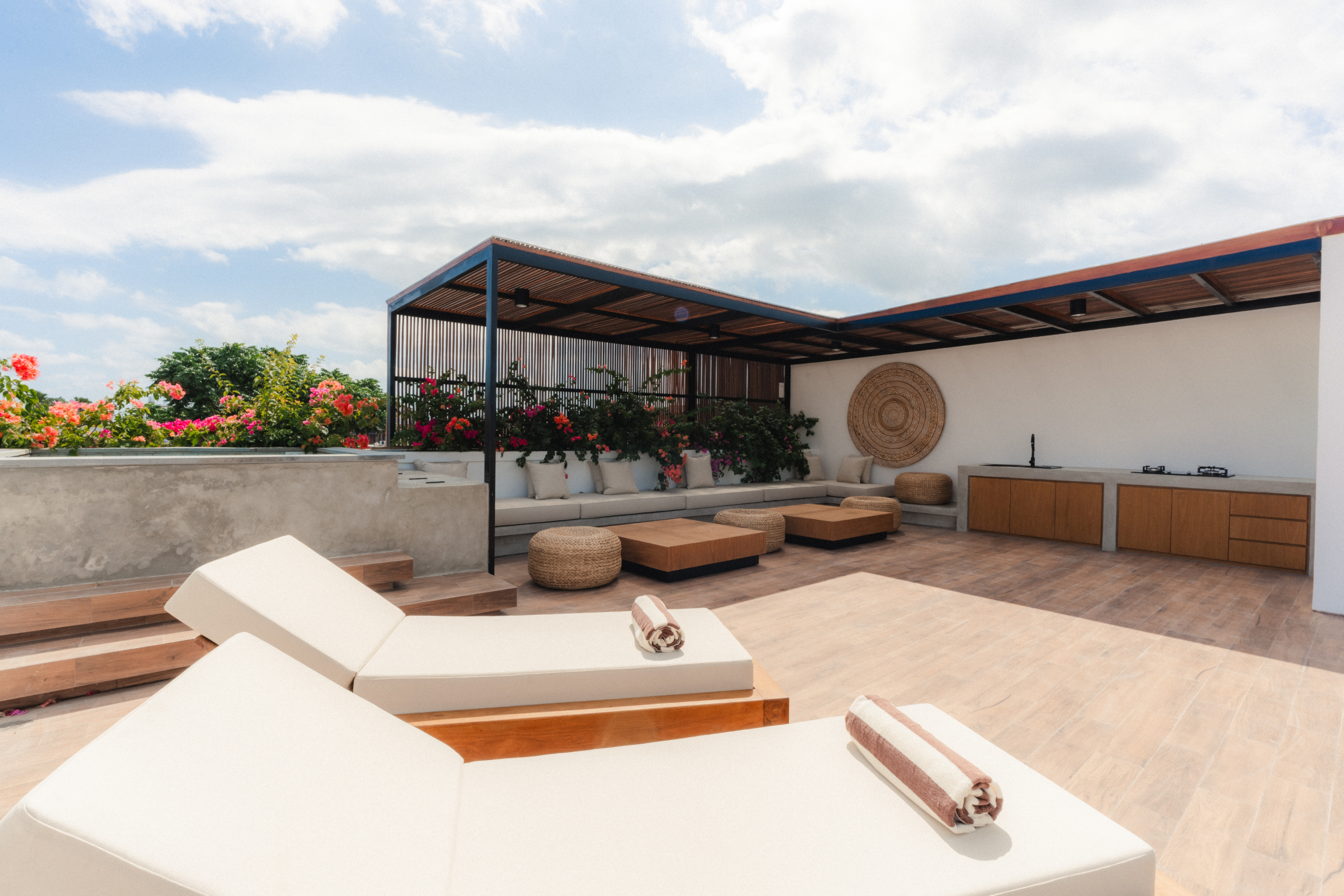 ● Hiburan Atap: Dilengkapi dengan dapur, berjemur, dan kolam renang terjun.