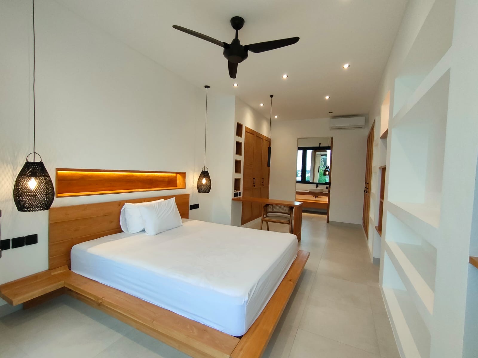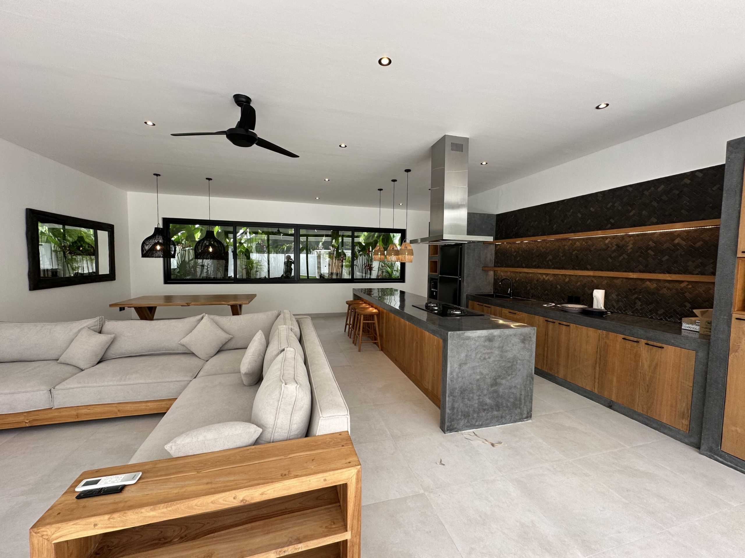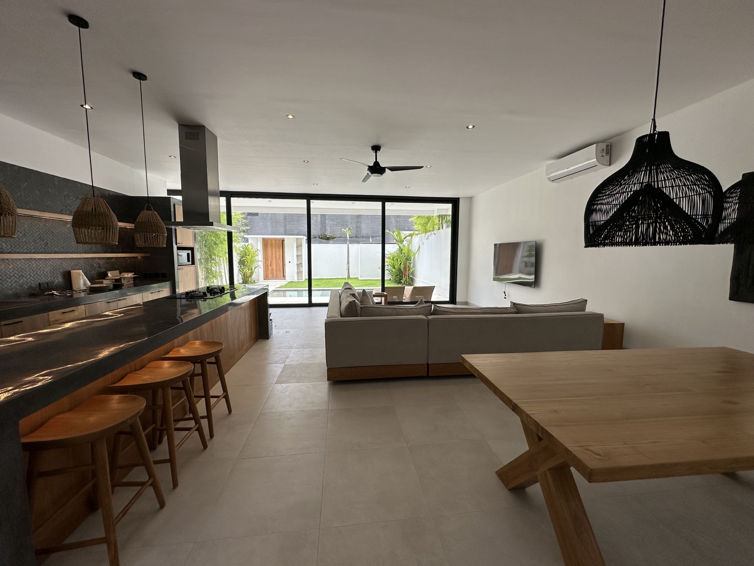 Vila ini mencakup dua kamar tidur dan dua setengah kamar mandi, bersama dengan ruang tamu tertutup yang cerah yang menghadap ke kolam renang. Interiornya dilengkapi dengan sentuhan akhir modern, dan tata letaknya memberikan aliran indoor-outdoor yang mulus dengan kolam renang 6 x 2,4 meter dan parkir sepeda motor. Dengan keamanan 24/7 dan desain yang efisien, properti ini mudah dirawat dan sangat cocok untuk penyewa yang mencari kenyamanan dan ketenangan.