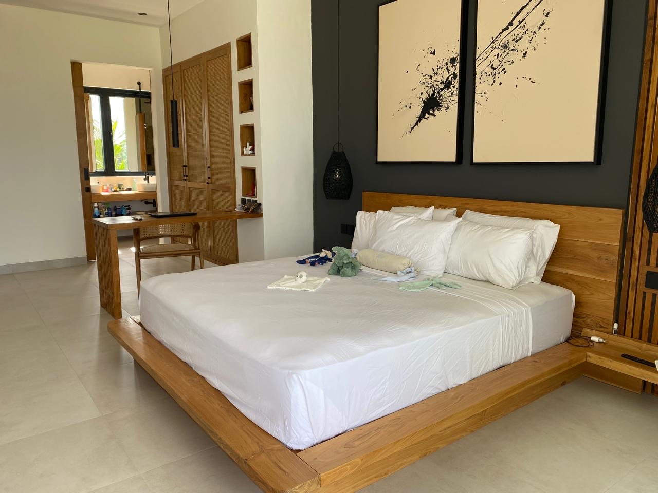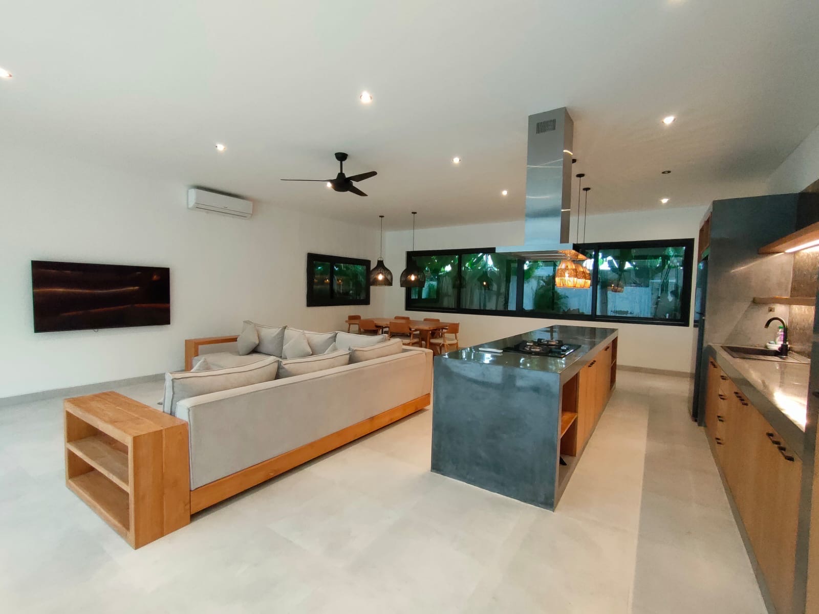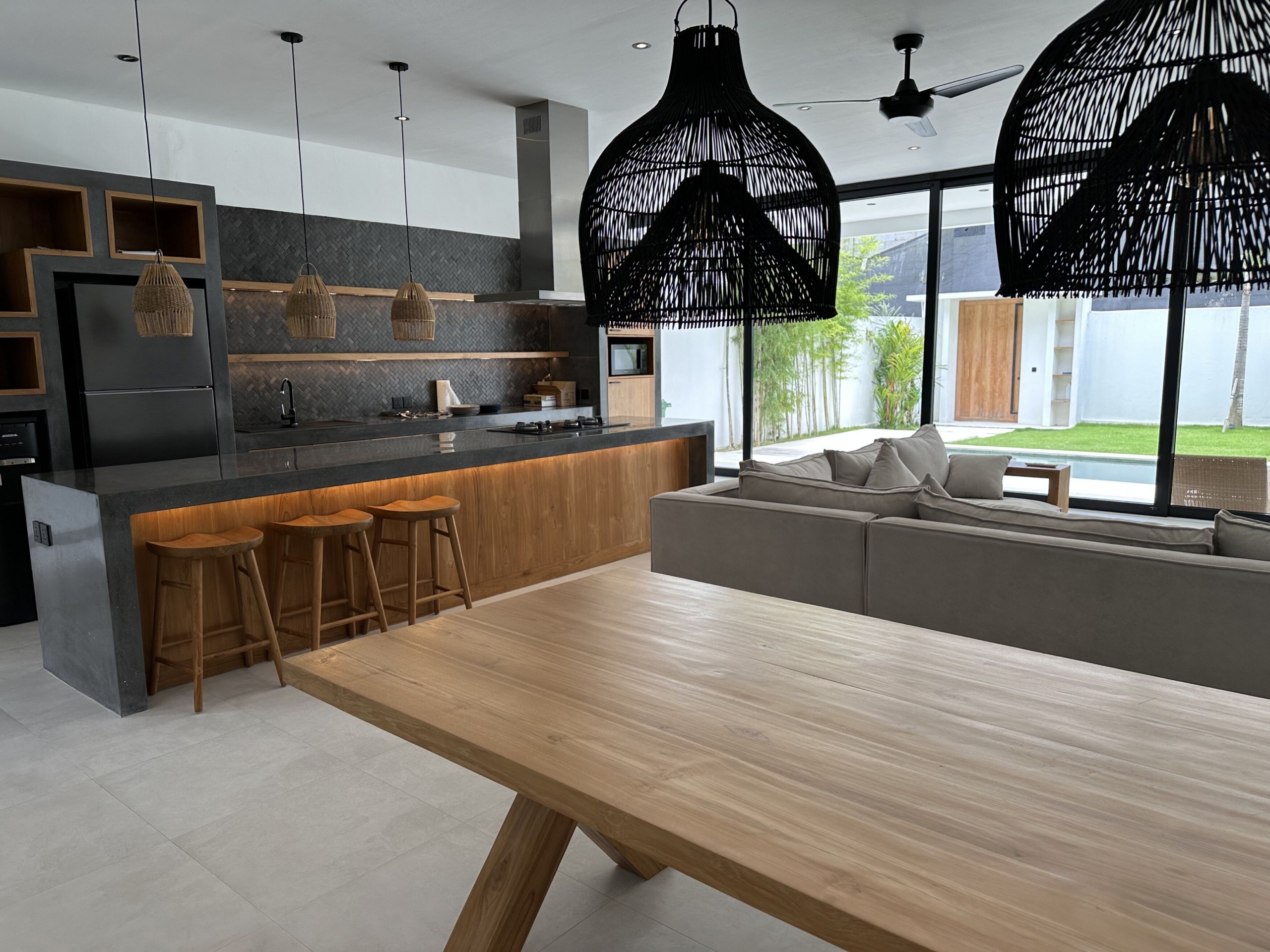 Vila ini mencakup dua kamar tidur dan dua setengah kamar mandi, bersama dengan ruang tamu tertutup yang cerah yang menghadap ke kolam renang. Interiornya dilengkapi dengan sentuhan akhir modern, dan tata letaknya memberikan aliran indoor-outdoor yang mulus dengan kolam renang 6 x 2,4 meter dan parkir sepeda motor. Dengan keamanan 24/7 dan desain yang efisien, properti ini mudah dirawat dan sangat cocok untuk penyewa yang mencari kenyamanan dan ketenangan.