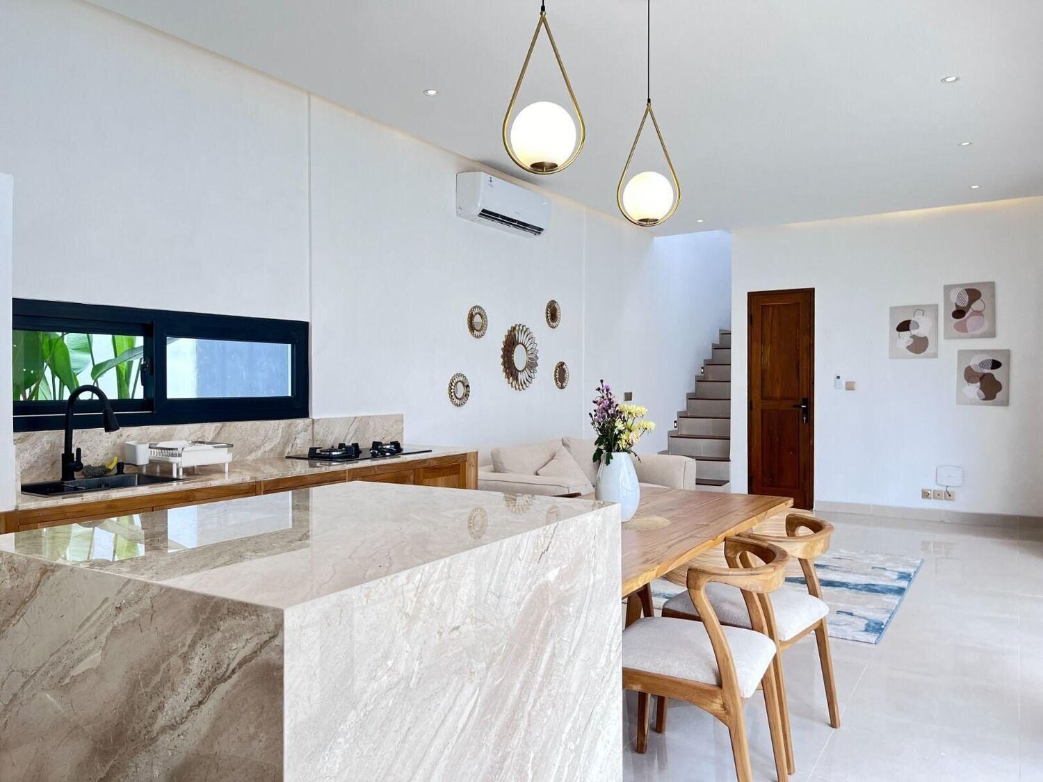 Dibangun di atas lahan seluas 145 meter persegi, vila ini memiliki ruang tamu tertutup, dapur terbuka lengkap, dan kamar tidur yang luas dengan kamar mandi pribadi. Si Kamar mandi utama memiliki bathtub teraso besar, menciptakan tempat perlindungan seperti spa. Sebuah teras atap menyediakan ruang relaksasi tambahan, ideal untuk menikmati matahari terbenam di Bali.