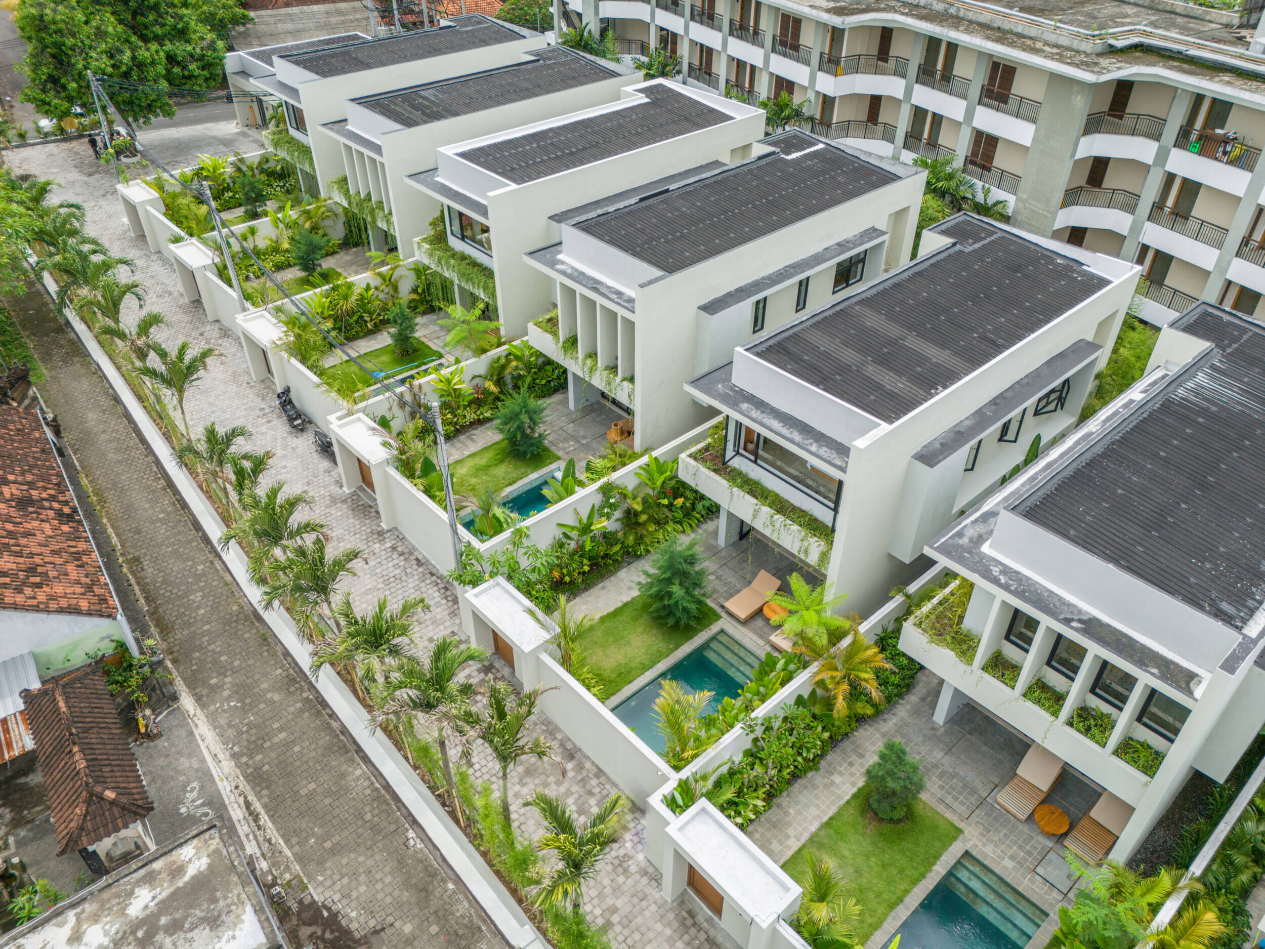 Terletak tepat di luar pusat Ubud yang semarak, vila dua kamar tidur modern siap pakai ini menawarkan kombinasi langka antara kenyamanan, fungsionalitas, dan daya tarik hidup jangka panjang. Setiap unit berada di atas lahan seluas 225 meter persegi dengan bangunan tertutup seluas 168,5 meter persegi, yang dirancang untuk memaksimalkan aliran udara alami dan tanaman hijau sambil menjaga privasi dan keamanan di dalam kompleks terjaga keamanannya.