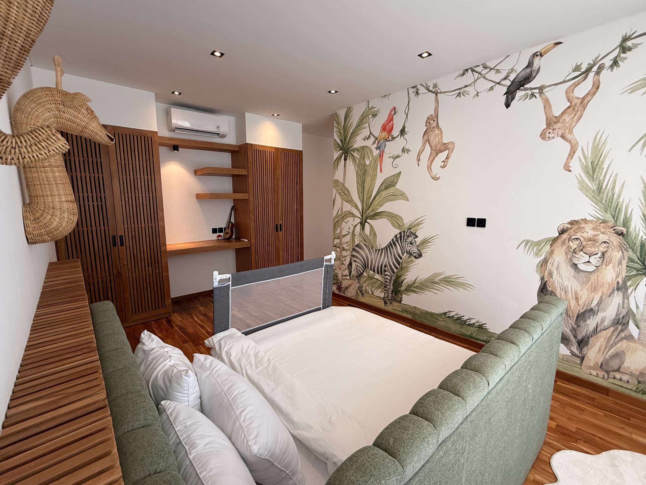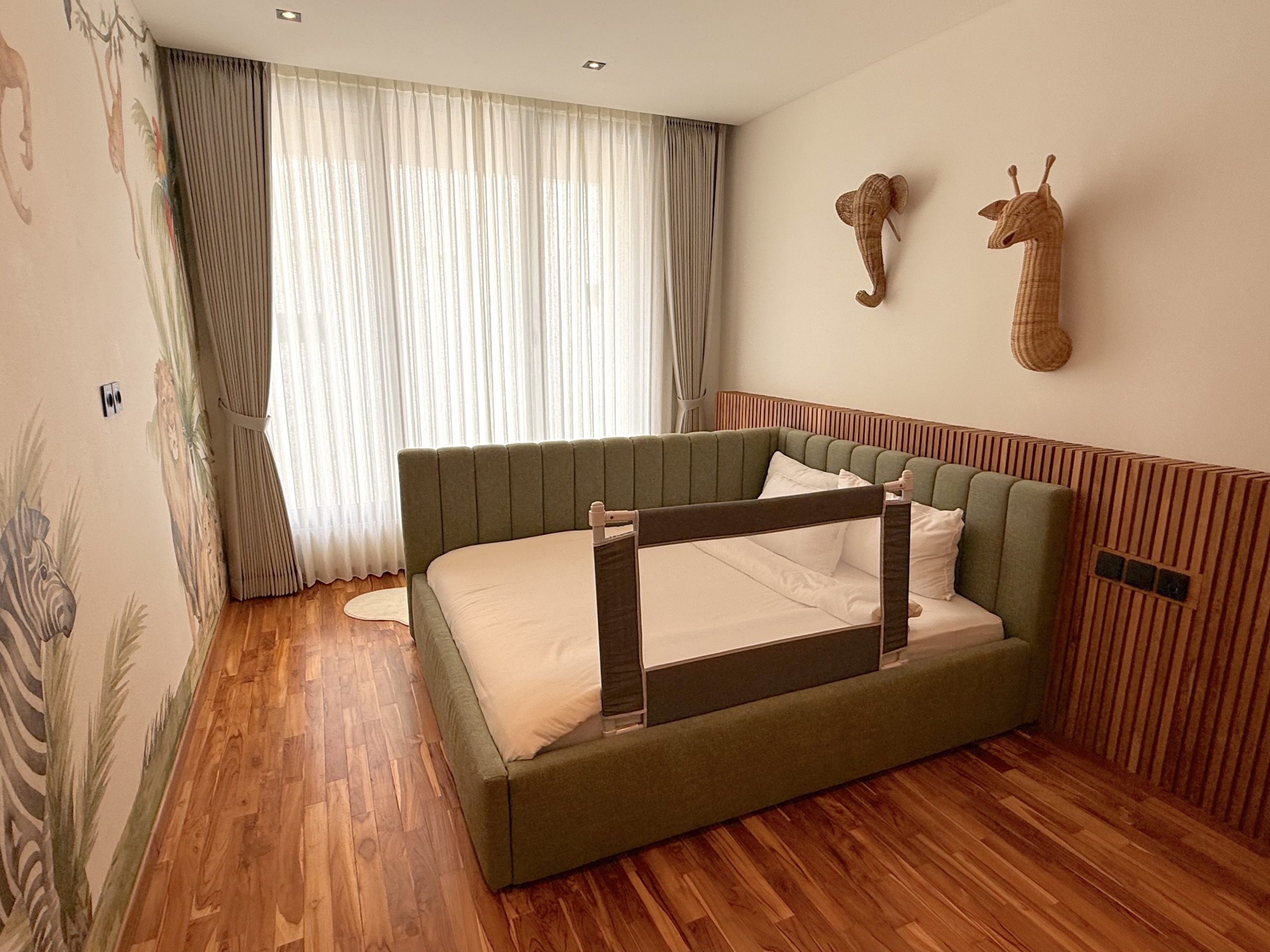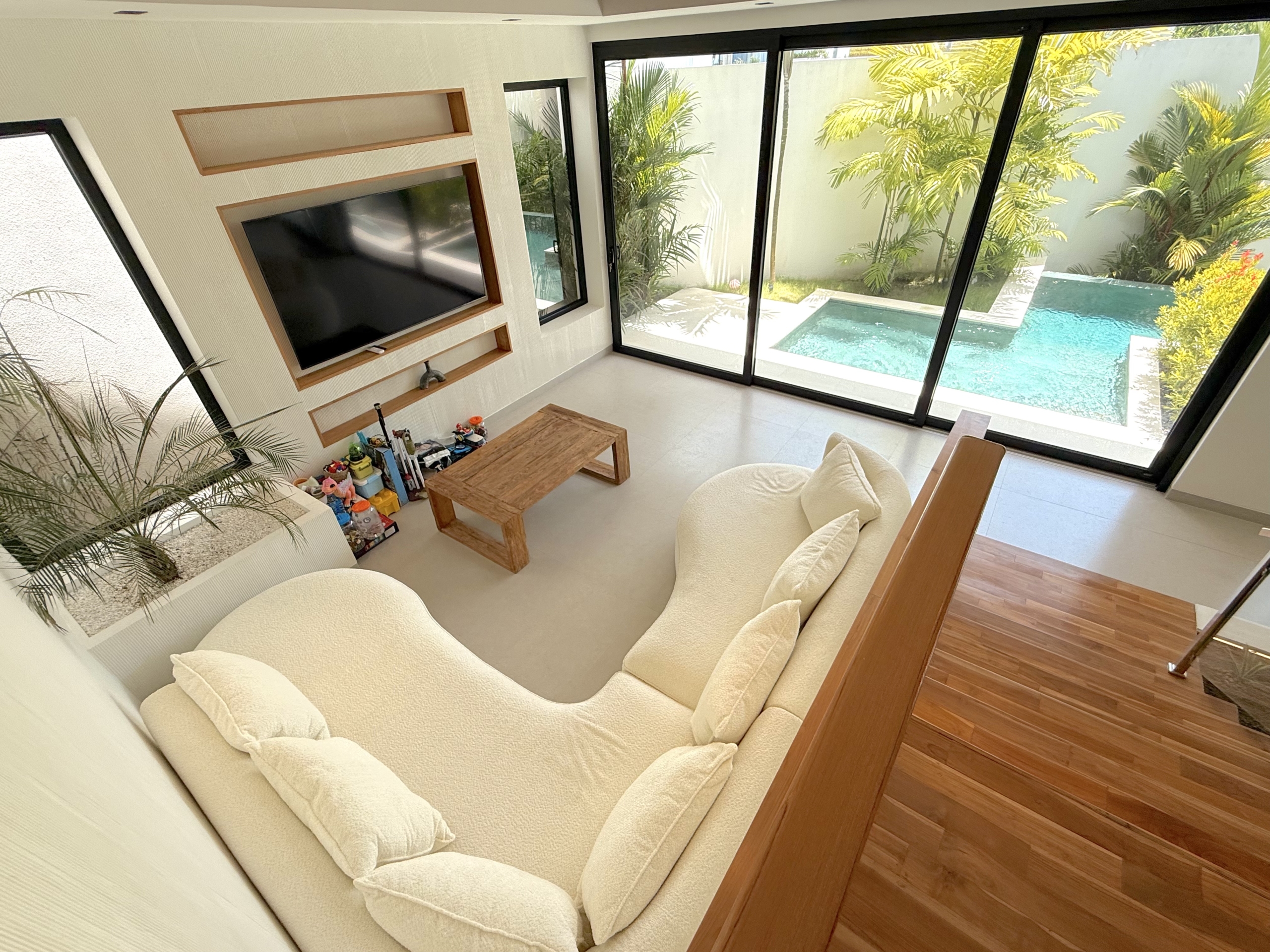 Vila dua lantai ini membentang 340 meter persegi ruang interior bergaya yang dibangun di atas lahan seluas 310 meter persegi, dirancang untuk kehidupan pribadi dan investasi sewa. Tata letaknya mencakup empat kamar tidur yang luas dengan kamar mandi dalam, toilet tamu, dan ruang tamu yang luas yang sepenuhnya tertutup untuk kenyamanan sepanjang tahun.
