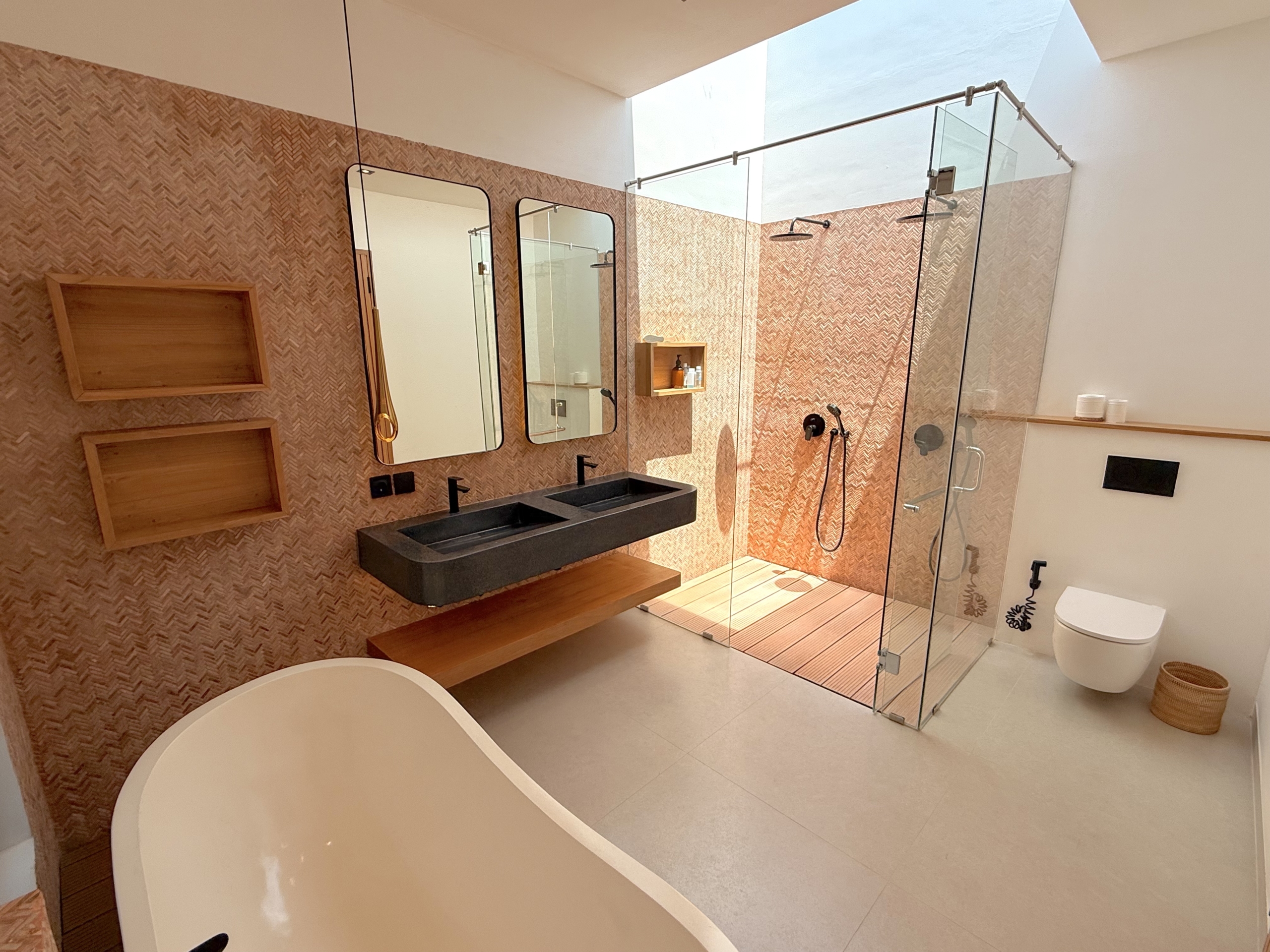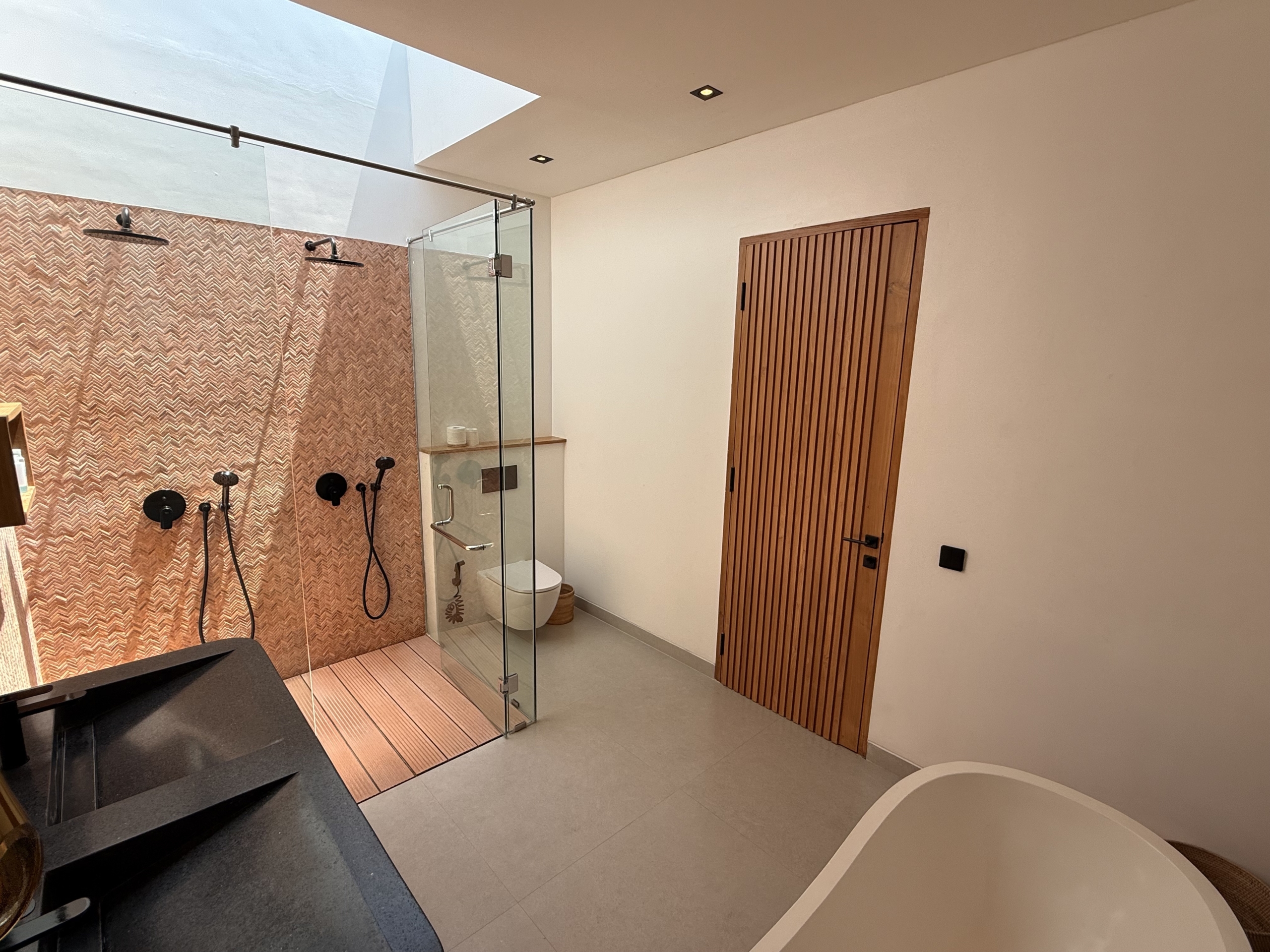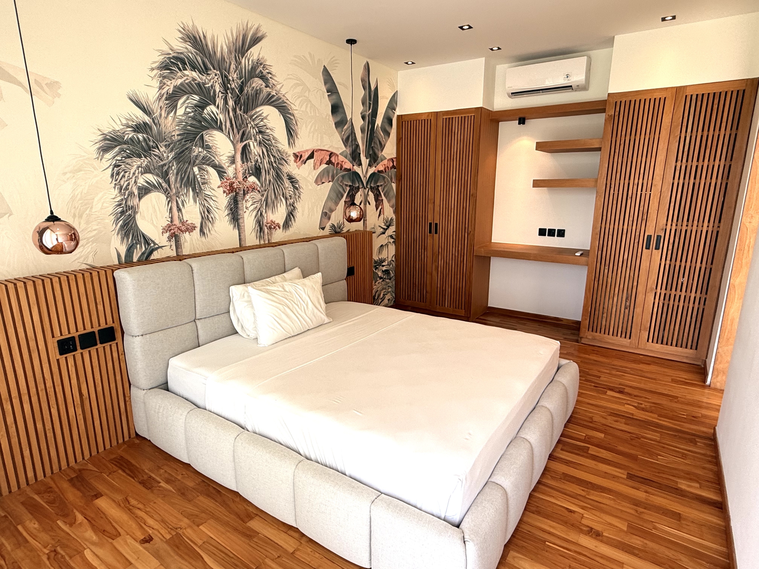 Vila dua lantai ini membentang 340 meter persegi ruang interior bergaya yang dibangun di atas lahan seluas 310 meter persegi, dirancang untuk kehidupan pribadi dan investasi sewa. Tata letaknya mencakup empat kamar tidur yang luas dengan kamar mandi dalam, toilet tamu, dan ruang tamu yang luas yang sepenuhnya tertutup untuk kenyamanan sepanjang tahun.