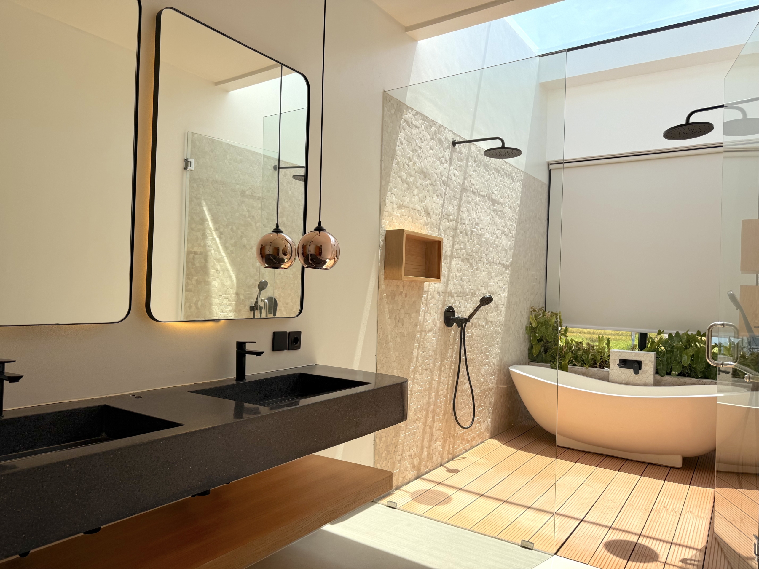 Dilengkapi dengan barang-barang berkualitas dan dapur lengkap, vila ini juga dilengkapi dengan AC, mesin cuci, dan kenyamanan modern di seluruhnya. Air disuplai melalui sumur bor, dan properti ini terletak di dalam area Zonasi Kuning, sehingga memenuhi syarat untuk lisensi sewa.