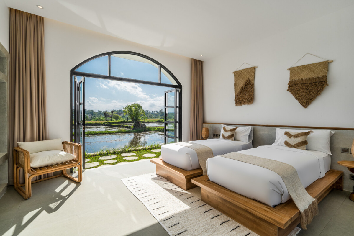 Menampilkan tiga kamar tidur yang dirancang secara unik, masing-masing menawarkan pengalaman yang berbeda. Kamar tidur pertama dilengkapi dengan tempat tidur queen yang dapat diubah menjadi tempat tidur twin. Kamar tidur kedua menawarkan tempat tidur queen yang nyaman. Kamar tidur ketiga menonjol dengan bak mandi luar ruangan.