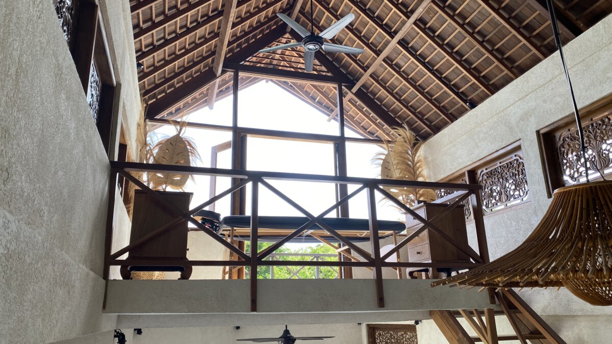 Vila utama memiliki kamar tidur utama yang luas dengan AC, ruang tamu dan ruang makan terbuka, dapur bergaya bar, dan ruang mezzanine di lantai atas yang santai yang ideal untuk membaca atau memijat. Bungalow yang berdekatan memiliki dua kamar tidur dan kamar mandi tambahan, menawarkan privasi dan kenyamanan bagi tamu atau keluarga. Desainnya memadukan keterbukaan tropis dengan sentuhan cerdas seperti isolasi atap, kamar mandi semi-terbuka, dan sentuhan akhir berkualitas tinggi.