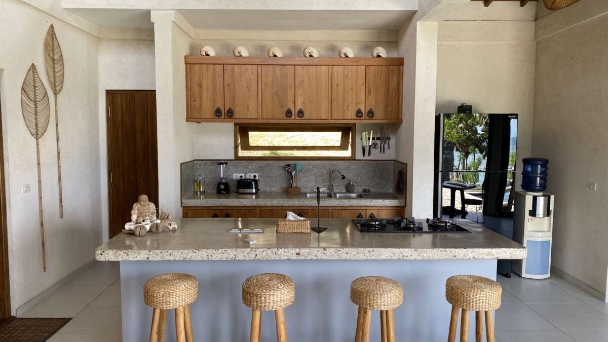 Dilengkapi dengan peralatan lengkap dan siap pindah, perlengkapan ini mencakup semua perabotan, peralatan, dan bahkan kendaraan—skuter Toyota Hilux G Turbo 4×4, Honda ADV dan Vario, ditambah alat, generator cadangan, dan banyak lagi. Kolam renang besar, taman lanskap, teras pemandangan laut, dan staf di tempat melengkapi penawaran luar biasa ini.