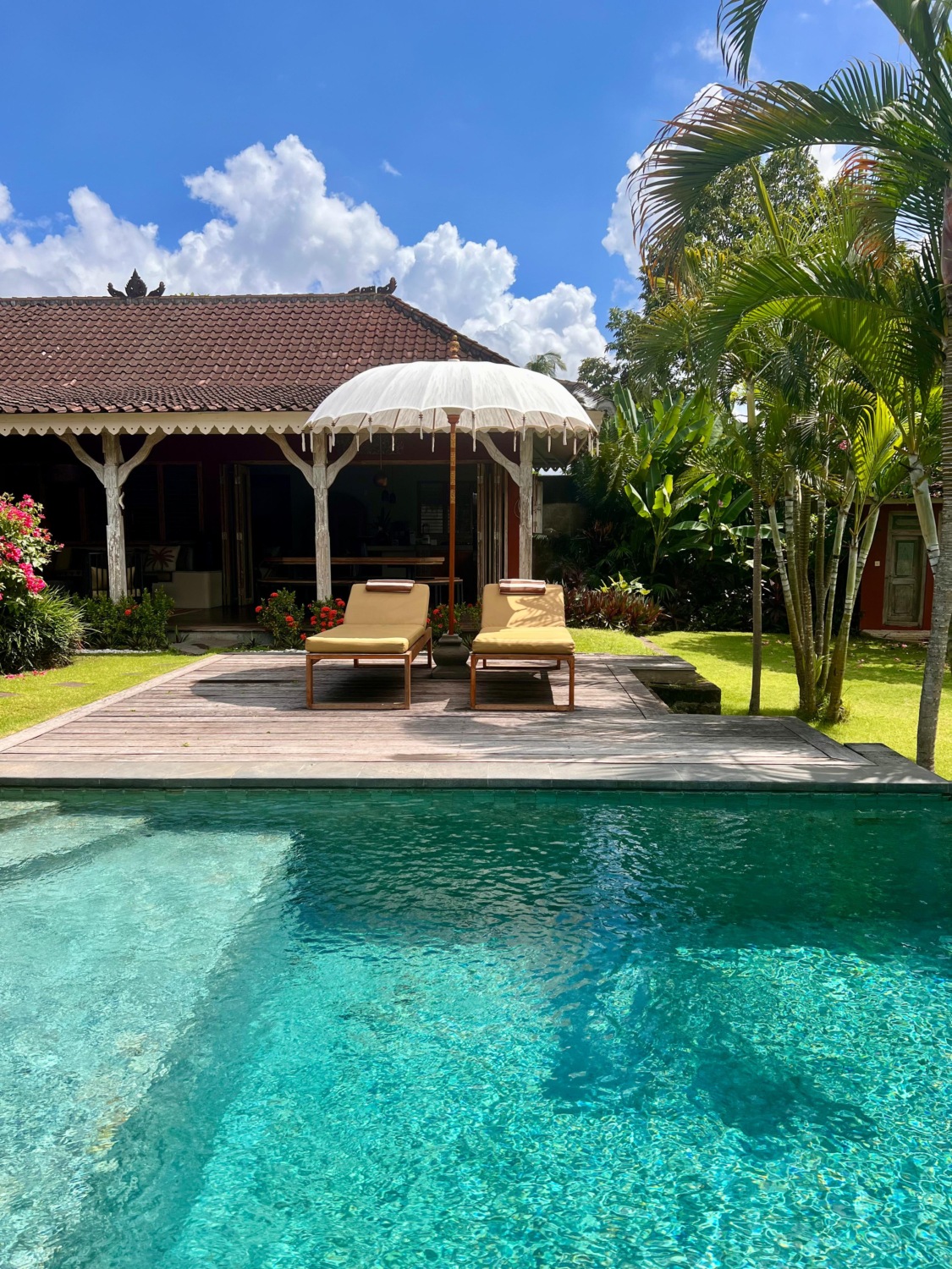 Vila ini memiliki perpaduan ruang tamu terbuka dan tertutup, dapur lengkap, dan empat kamar tidur yang luas dengan kamar mandi dalam. Di luar ruangan, kolam renang pribadi dikelilingi oleh ruang taman yang rimbun, dapur BBQ/luar ruangan, dan lansekap tropis — sempurna untuk bersantai atau menghibur.