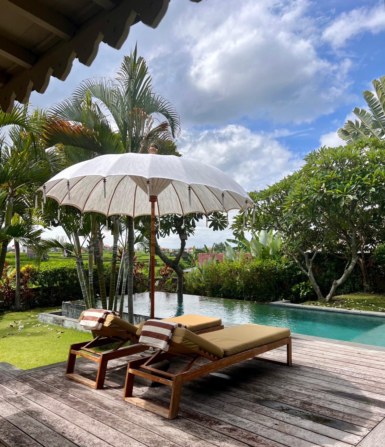 Sawah di depan properti berada di lahan zona hijau, yang berarti tidak ada konstruksi yang diizinkan dan dapat menghalangi pemandangan saat ini.