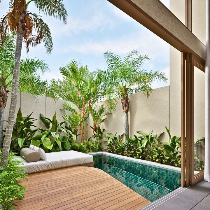 - Ukuran Tanah: Setiap unit memiliki taman pribadi dan area kolam renang (sekitar 30 m²)