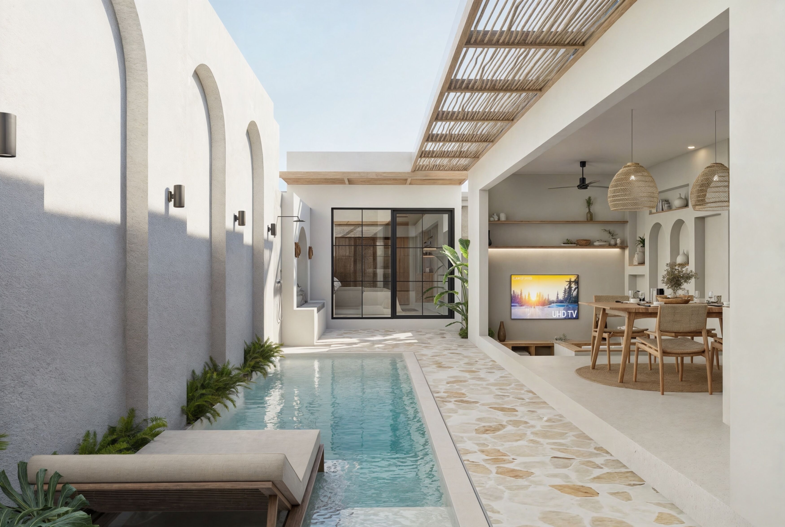 Temukan lambang keanggunan tropis Mediterania dengan empat vila eksklusif ini, yang terletak di jantung Seminyak. Menyeimbangkan kemewahan dan kepraktisan dengan sempurna, proyek ini 60% selesai dan menawarkan peluang tak tertandingi untuk berinvestasi di pasar properti Bali yang berkembang pesat. Saat ini, dua vila masih tersedia.