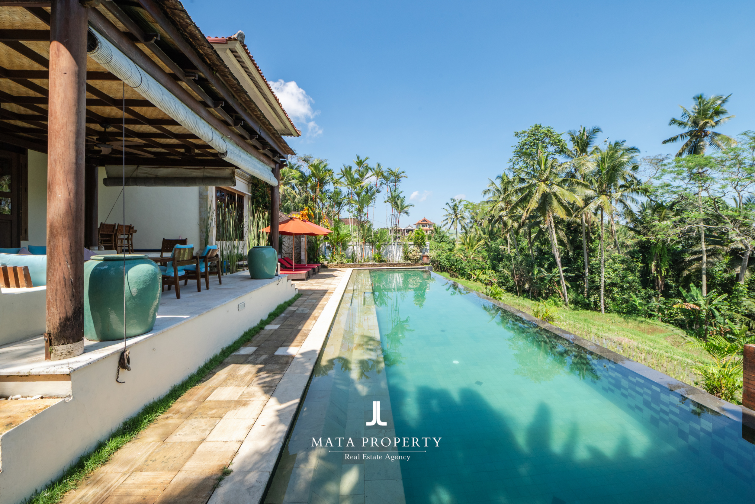 Terletak di daerah yang diinginkan di Ubud, properti hak milik ini adalah investasi ideal bagi mereka yang mencari tempat tinggal kelas atas atau peluang sewa yang menguntungkan di Bali.