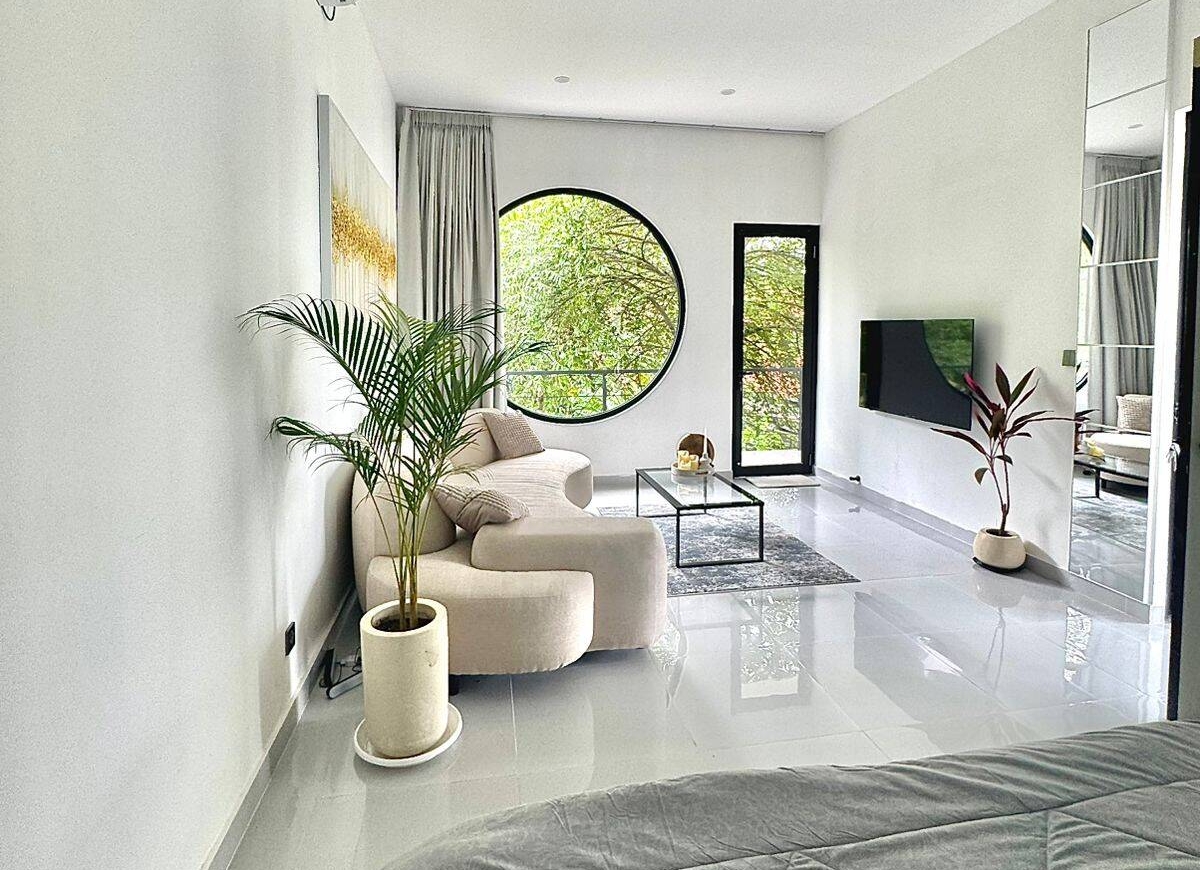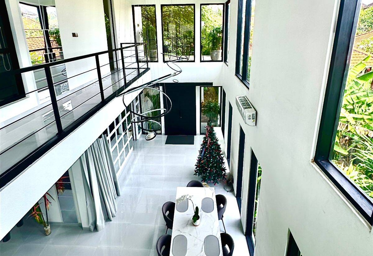 The villa features a spacious 70 sqm kitchen and living area with dramatic 9-meter-high ceilings and skylights, filling the space with natural light. Two bedrooms, a dedicated study, and four bathrooms ensure comfort and flexibility, while two terraces and a private swimming pool complete the indoor–outdoor living experience. Fully furnished and fully equipped, the home is ready for immediate occupancy.