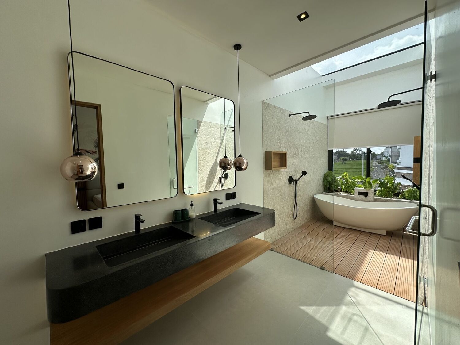 Located in the sought-after neighborhood of Tumbak Bayuh, this brand-new modern villa offers a refined balance of indoor comfort and tropical outdoor living. Just minutes from Pererenan and central Canggu, the property sits in a quiet residential street, perfect for those seeking peace while staying close to Bali’s vibrant west coast lifestyle.