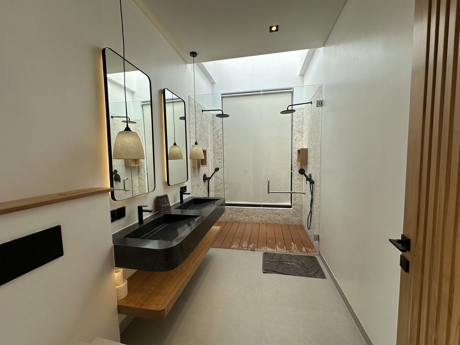 A standout feature of this home is the two private swimming pools and a beautifully integrated outdoor shower area surrounded by a lush garden — ideal for relaxing or entertaining.
