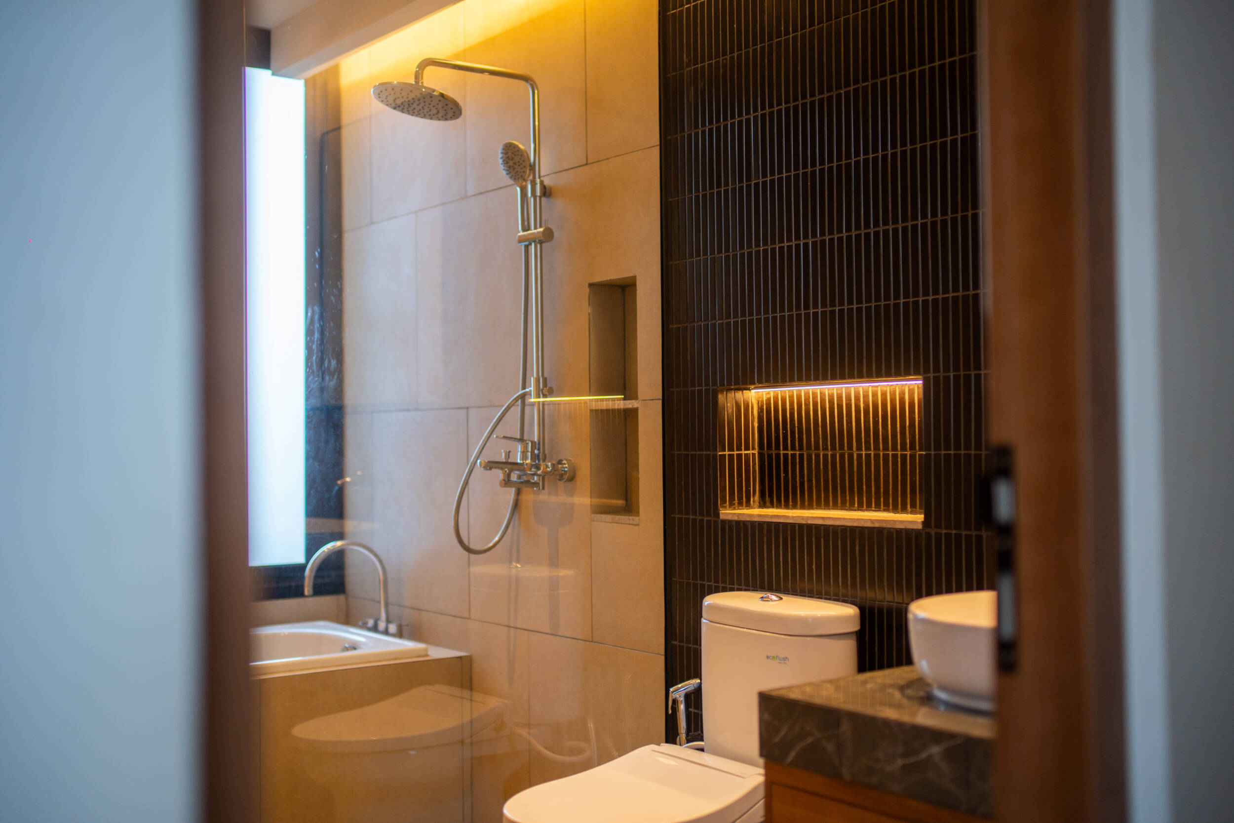 Set on 330 m² land with over 400 m² of building space, the villa features 4 spacious master bedrooms, each with an ensuite bathroom, plus an additional guest bathroom. The sunken living room is equipped with a 55” Smart TV 4K UHD with Dolby Atmos, creating a premium entertainment experience.