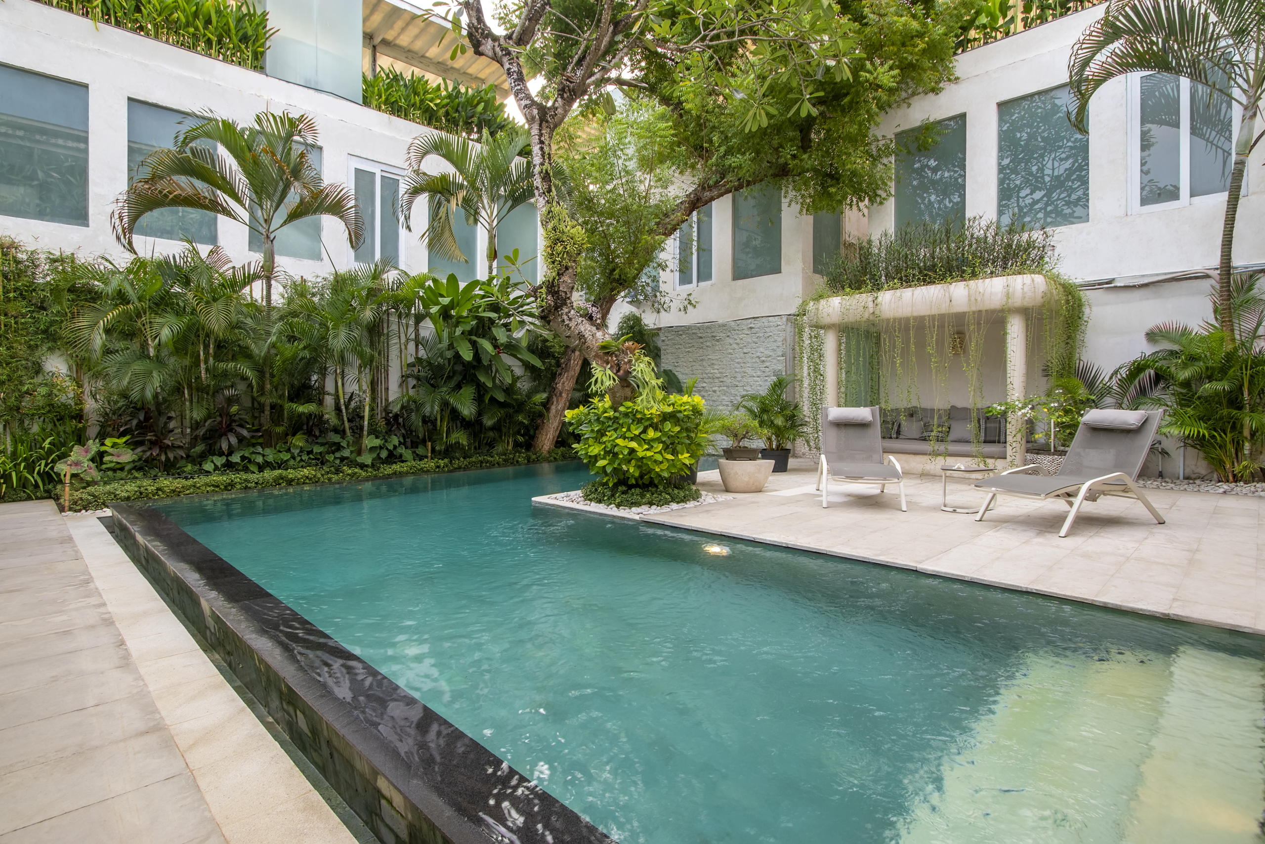 - Infinity Pool: First-floor pool surrounded by lush greenery.